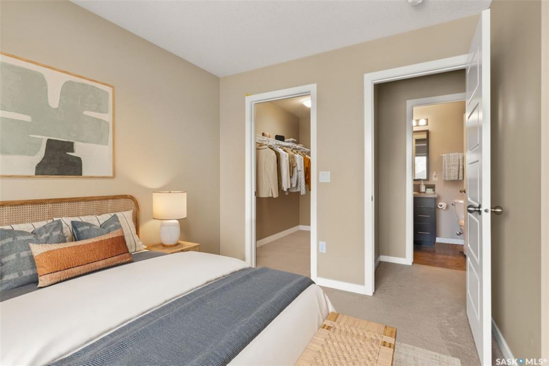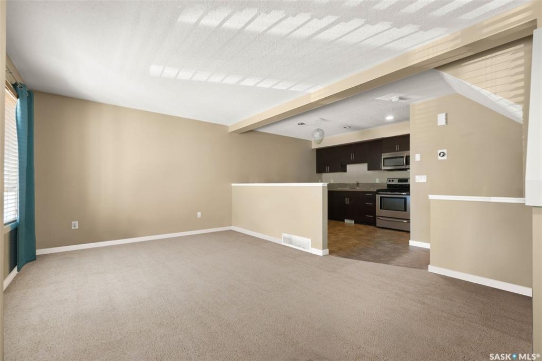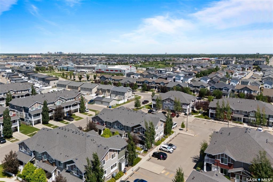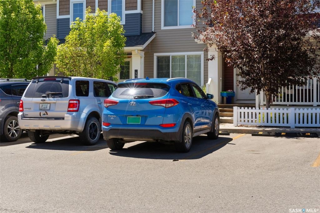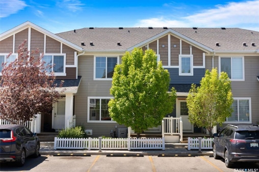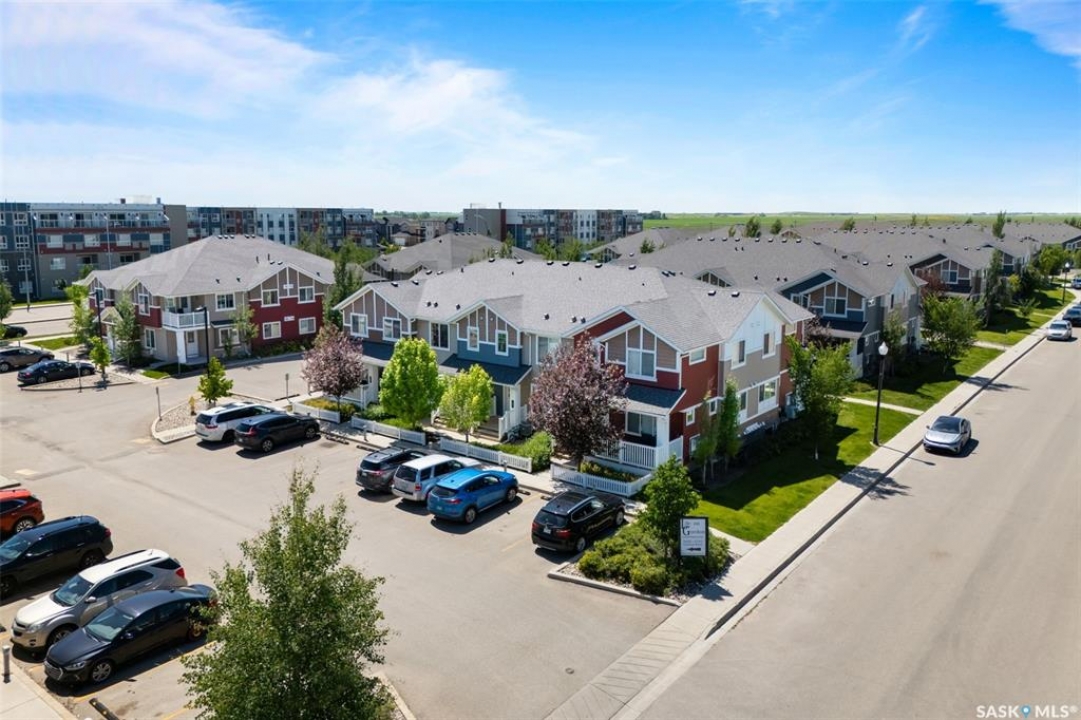 Step into a home that effortlessly blends warmth, functionality, and location. Tucked inside the thoughtfully designed Life on Gordon complex, this 2-storey townhouse condo offers not just a place to live—but a lifestyle to love. You will appreciate the well kept landscaping and the upgraded central air conditioning. Inside, you're greeted by a bright and open main floor layout. The generous living room flows naturally into a stylish kitchen and dining area, perfect for everything from quiet mornings to casual entertaining. Rich dark cabinetry and stainless steel appliances—including a built-in microwave hood fan, dishwasher, fridge, and stove. A convenient two-piece bathroom and access to the lower level add to the practicality of the main floor, while large windows allow natural light to pour in, creating an inviting ambiance. The second floor features two well-appointed bedrooms, including a spacious primary suite with a walk-in closet and direct access to the full bathroom. You'll love the upper-level laundry room with a smart, stacked washer/dryer combo, offering efficiency without sacrificing storage space. Downstairs, the unfinished basement presents endless possibilities—home gym, cozy media room, or future third bedroom. With roughed-in plumbing for a bathroom and ample storage, the potential is yours to unlock. Step outside to your own private patio—an ideal spot for summer barbecues, morning coffee, or quiet evenings under the prairie sky. Located just steps from walking paths, green spaces, parks, and the dual Catholic/Public elementary school, this home is perfect for young professionals, first-time buyers, or downsizers who still crave an active lifestyle. All of Harbour Landing's shopping, dining, and amenities are just minutes away. Unit #83 parking space is included, and quick possession means your new beginning could be just around the corner. (Note: Some Virtually Staged photos).