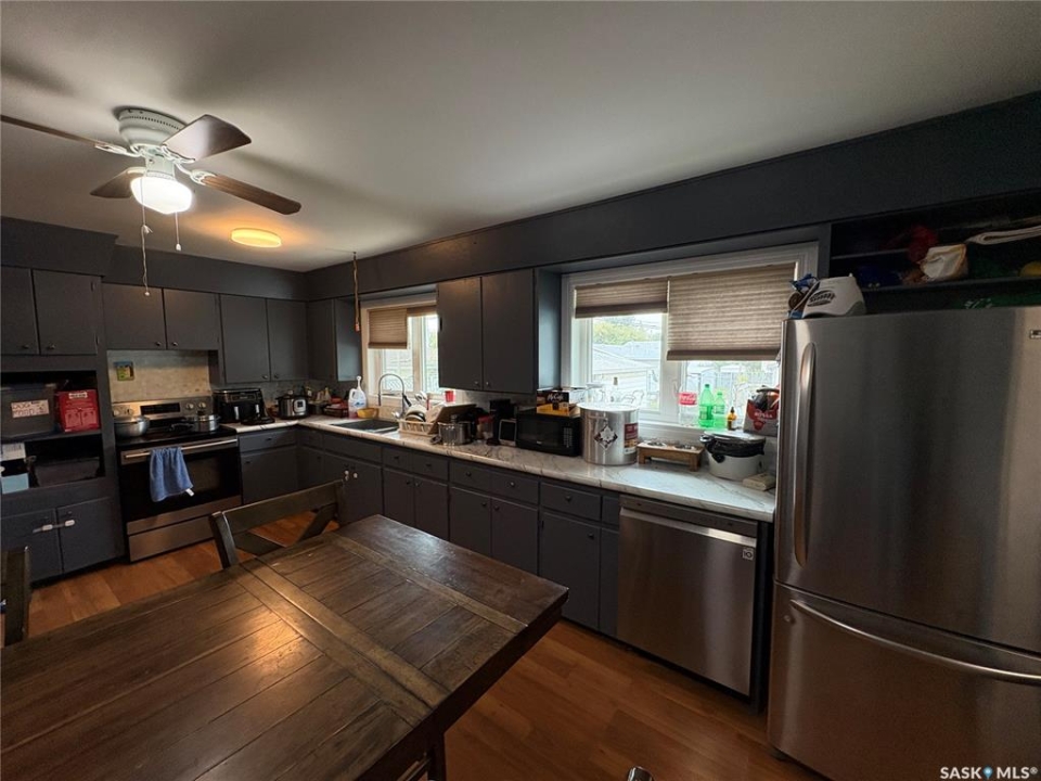 Welcome to this inviting 3+1 bedroom bungalow, perfectly situated on a quiet street right across from the school. Step inside to a bright, east-facing living room that fills with morning light, and a spacious eat-in kitchen offering loads of counter space — ideal for family meals and entertaining. The main floor also features three comfortable bedrooms and a beautifully renovated 4-piece bathroom. Downstairs, enjoy a cozy rec room, an additional bedroom, a convenient 3-piece bath, and a kitchenette — the perfect setup for guests or a growing family. Don't miss the chance to make this warm and welcoming home yours — call your agent today to book a private showing!