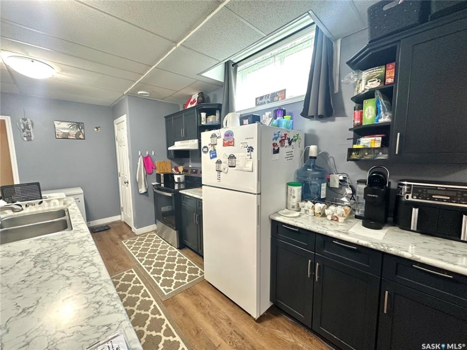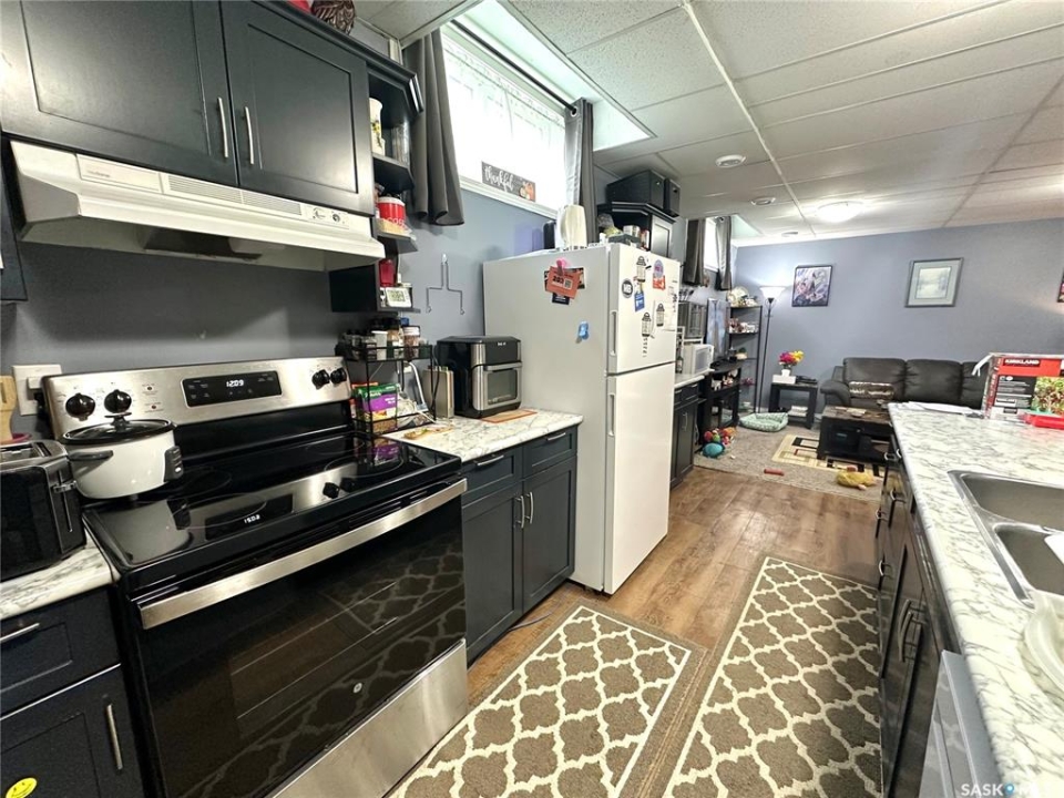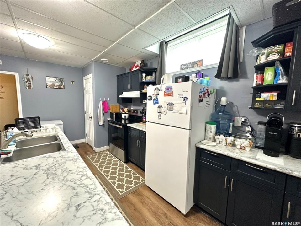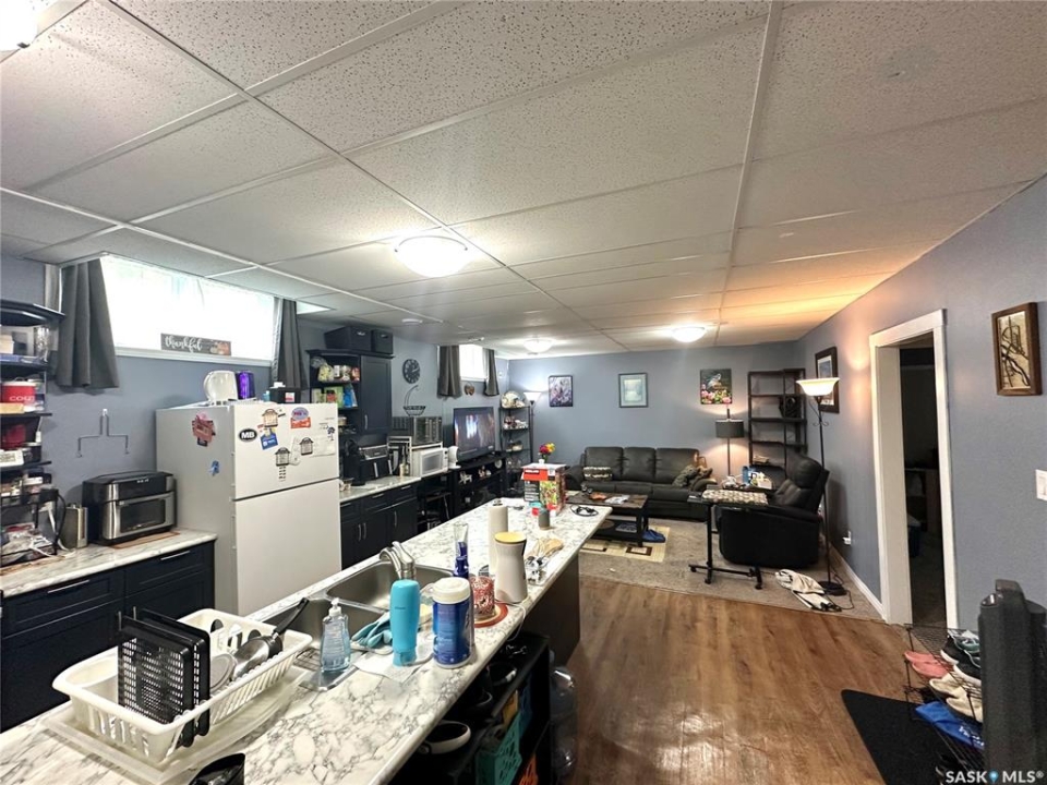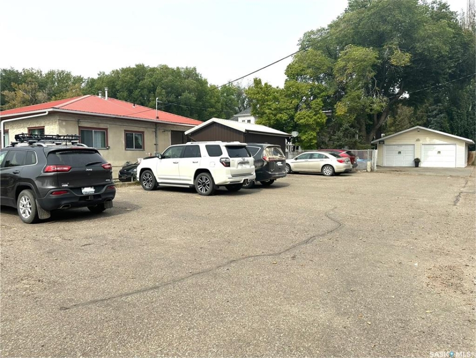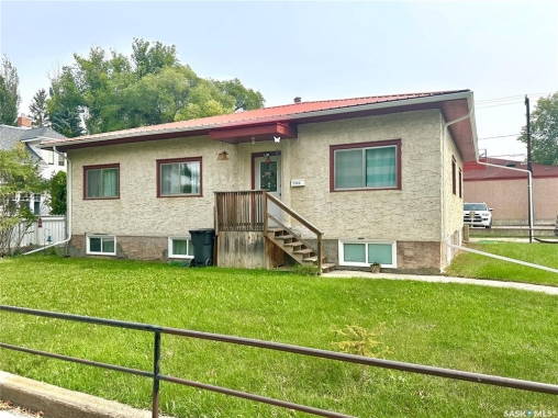 This home located on the west side of North Battleford in an excellent location has two beautifully renovated suites both with own entry and laundry and shared utilities. This truly unique home has 6 bedrooms and a 14x20 shed with 11 parking stalls. 9 stalls are currently allocated to the commercial building adjacent and an easement will be in place for the use of these stalls. On the main the kitchen has been recently replaced and offers 3 spacious bedrooms and an updated bathroom. The basement suite is accessed off the back with its own entry and has 10 foot ceilings. This suite is also extensively renovated with an updated kitchen and flooring. The backyard has a shed added in 2019 that is 14x20 and a driveway that accommodated 2 cars.