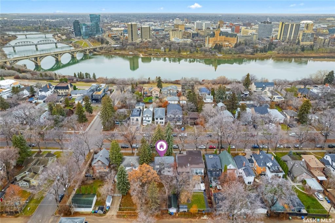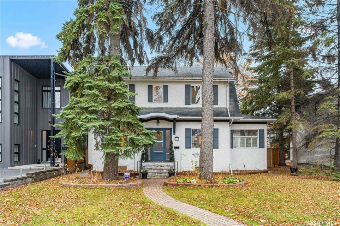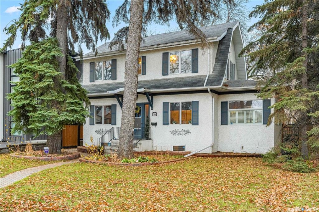 Welcome to 710 University Drive! Presenting a rare opportunity to secure your place on one of Saskatoon's most prestigious and historic streets. Whether you're envisioning your dream home on this coveted lot, seeking an investment to build two custom residences with R2 zoning, or drawn to the timeless character of a Dutch Colonial, this property offers endless potential. Set on an expansive 52 x 140 ft lot, this home is just steps from the river, minutes to Broadway's vibrant boutiques and cafes, and a short stroll to the University of Saskatchewan. University Drive is renowned for its mature tree-lined streets, heritage charm, and unbeatable walkability to river trails and downtown amenities. Built in 1926, the two-story residence blends historic character with thoughtful updates. Original hardwood floors and a gas fireplace anchor the inviting living room, while a sunroom with shuttered windows provides a bright, relaxing retreat. The formal dining room, complete with built-ins, connects to a kitchen that pairs vintage appeal with modern function, featuring a Miele gas cooktop and oven, smart fridge-freezer, farmhouse sink, and views of the private yard. Upstairs, you'll find a spacious primary suite with an updated en-suite, two generous secondary bedrooms, and a 4-piece bathroom. The fully developed lower level offers a rec room, guest bedroom, updated bath, and laundry with a smart washer and dryer. The backyard is an expansive private space with mature trees and a patio, ideal for entertaining, gardening, or future redevelopment. Recent updates include: high-efficiency furnace, on demand hot water heater, bathroom updates and kitchen appliances. This property presents a rare opportunity. Whether you restore its character charm, build your dream residence, or capitalize on R2 zoning for redevelopment, 710 University Drive is a great chance to create something remarkable in one of Saskatoon's most desired neighbourhoods. Call your Realtor today!