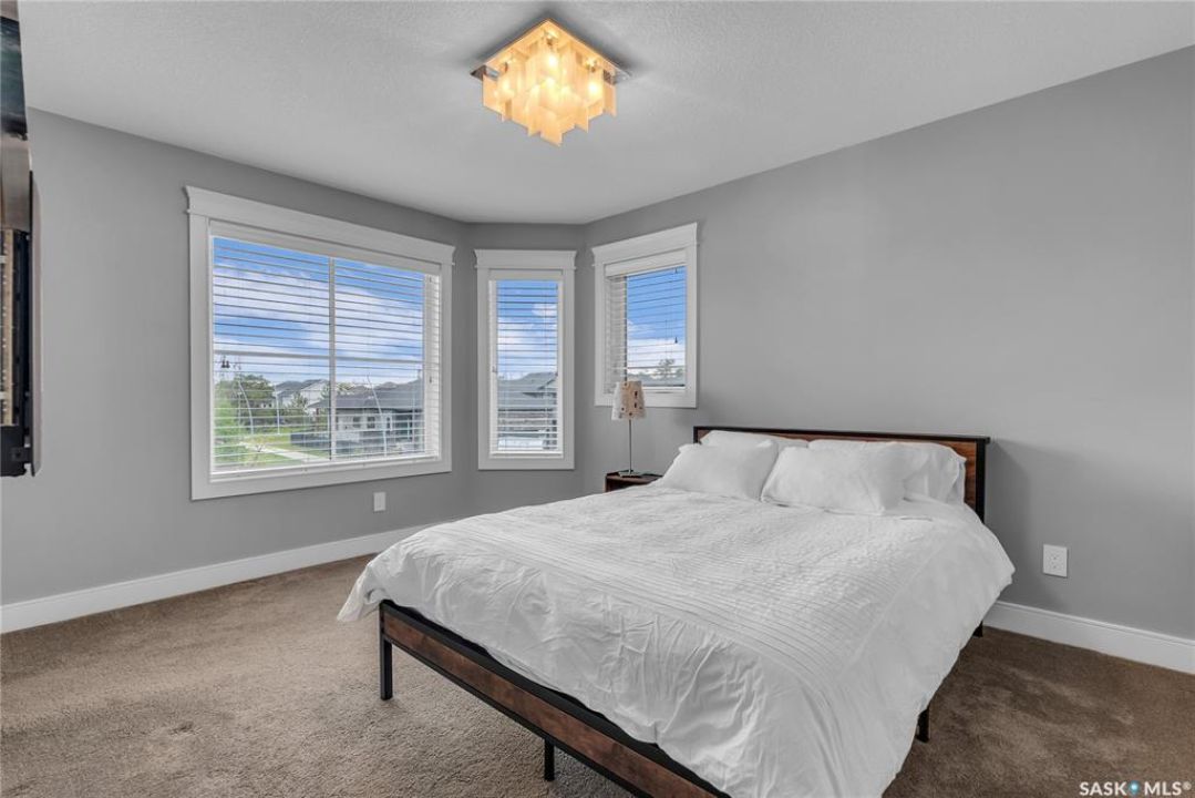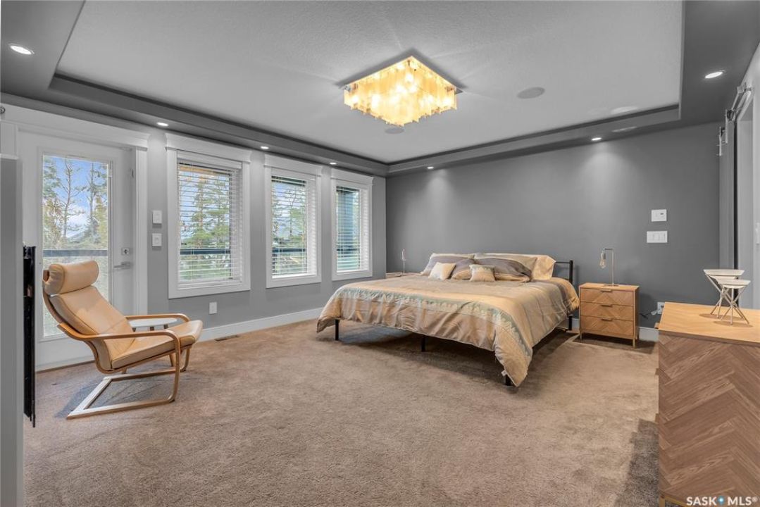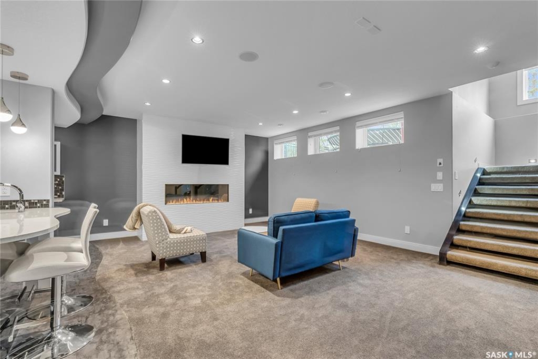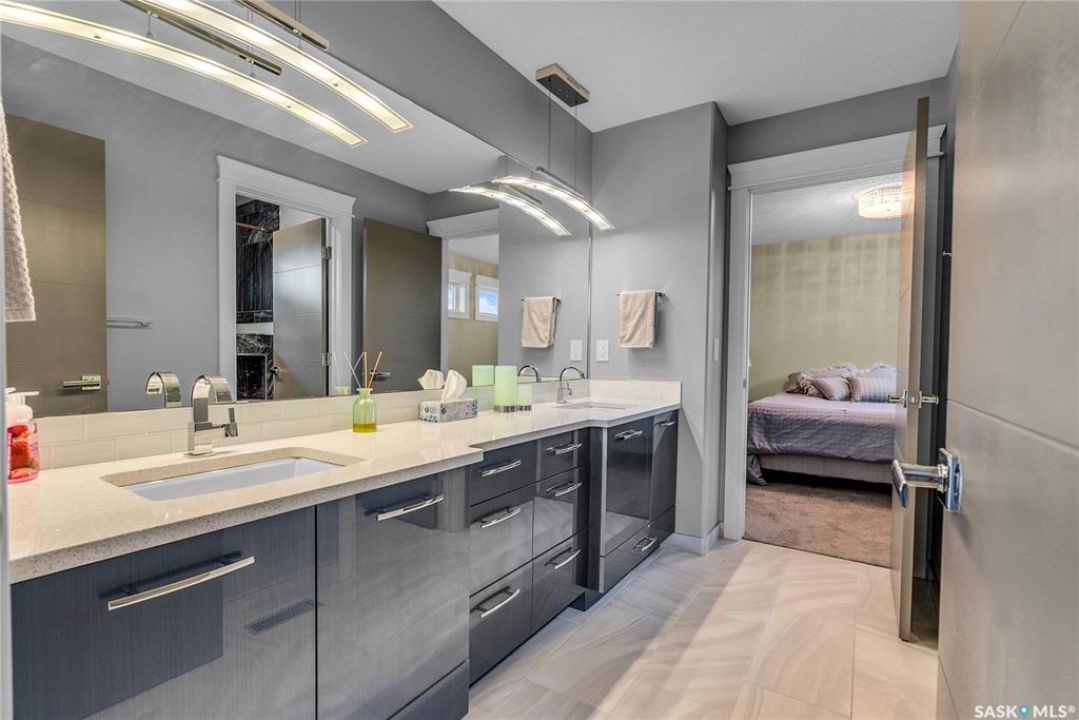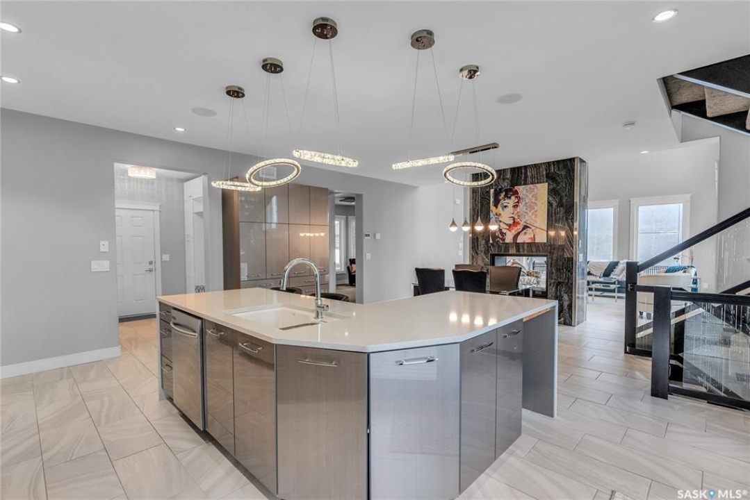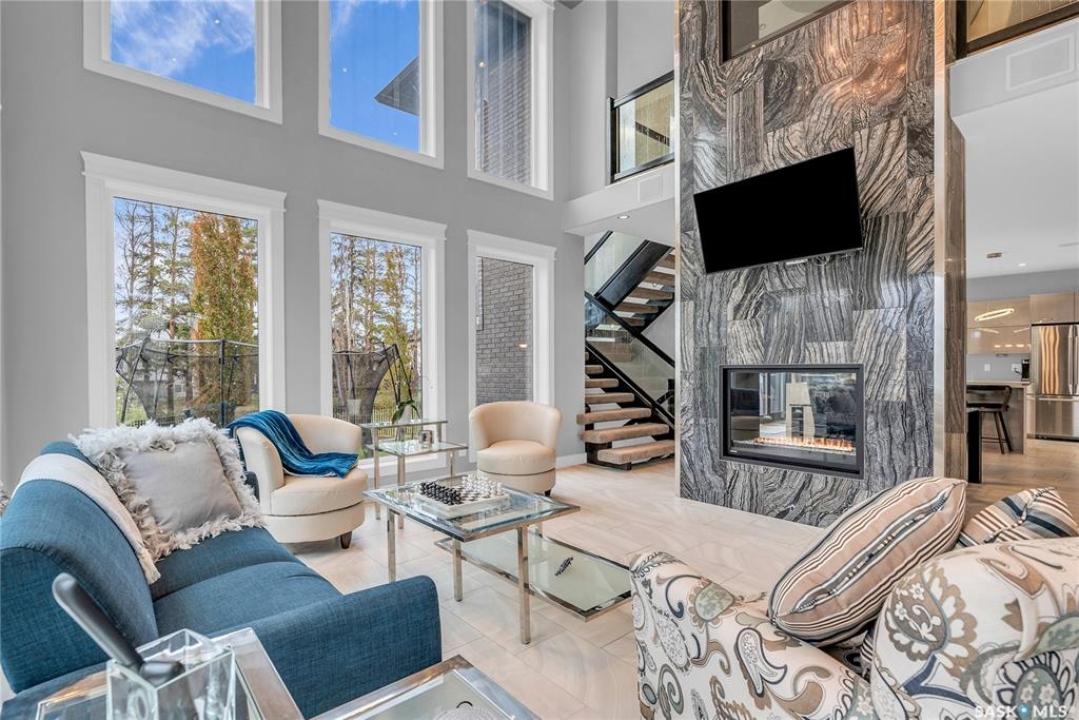 Welcome to a truly custom Evergreen masterpiece, backing green space in one of the neighbourhood's most desirable crescents. Highlights include a $30,000 designer lighting package featuring a 48” crystal statement fixture, an excessive window package that allows for substantial natural light, heated floors throughout all tile areas in addition to in-floor heat in the basement and triple car garage. Central air and central vac, solid core doors, and an architectural showpiece: two levels of see-through fireplaces wrapped in marble, dividing dining and living with style. The 3-car heated garage offers epoxy floors and upgraded garage doors, while the home itself is protected by a $50k Basement Systems waterproofing upgrade with triple sump pumps and backup. Outdoor living is maximized with a composite deck, partially covered with glass railing, stamped concrete patio, hot tub electrical rough-in, gas BBQ hookup, and an upper balcony overlooking the treed green space and walking paths. Inside, enjoy soaring 18-foot ceilings, a gourmet kitchen with extensive cabinetry and waterfall quartz tops, beautiful open stairs with designer glass railing, and dual laundry rooms for convenience. With four bedrooms and four bathrooms, the layout is both functional and luxurious. The primary suite is a retreat with a private balcony, spa ensuite with an air-jet tub, five-sprayer tiled shower, built-in vanity, and custom walk-in closet. Upstairs, two bedrooms share a Jack-and-Jill bath with a heated towel bar, plus a sitting area with a fireplace. The basement offers a tiled 80,000 BTU fireplace, wet bar, versatile gym space that doubles as a potential wine room with Vanee system and sprinklers installed, and theatre room rough-ins in both the basement bedroom and family room. This property goes far beyond any spec build, with a real brick exterior, premium finishes, and thoughtful upgrades throughout.