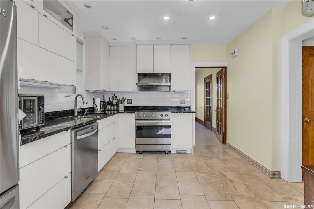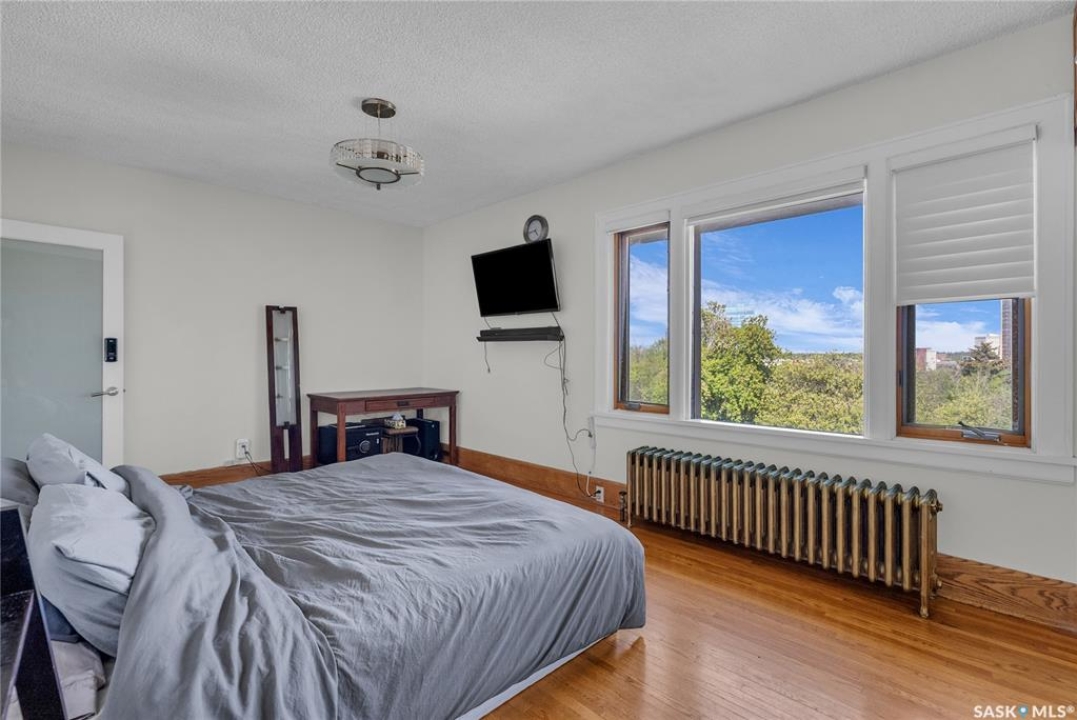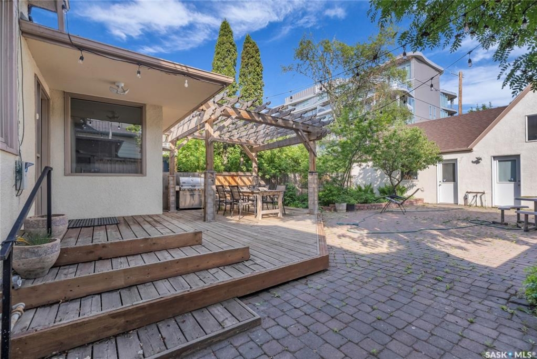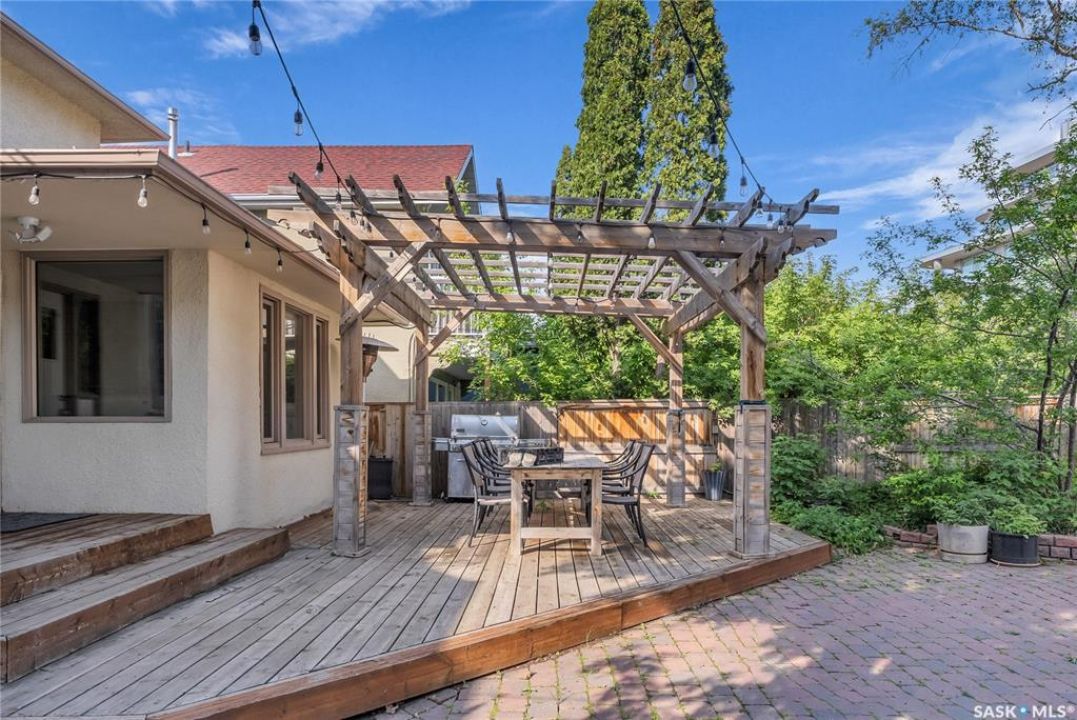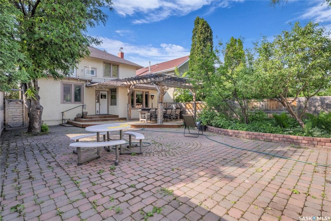 626 Saskatchewan Crescent East presents a unique opportunity at an attractive price point within a coveted neighborhood. The property boasts a spacious 37.2 x 140' lot and is conveniently located within walking distance to the popular Broadway attractions and Saskatoon amenities. The highlight of this turn-of-the-century home is its three bedrooms on the upper level, complemented by a charming second-floor balcony overlooking the beautifully landscaped zero-maintenance rear yard. The outdoor space features a patio stone area, pergola, and a double detached heated garage equipped with an EV charger. Additionally, a vaulted ceiling studio attached to the garage offers a versatile 50-foot space with in-floor heating. Inside the home, you'll find a well-appointed main floor featuring a functional kitchen with a gas range and exterior vented range hood, a spacious dining room, a comfortable living room with a gas fireplace, and a cozy library nook. The main floor is completed by a convenient three-piece bathroom. The basement level adds to the home's appeal with a large family room, a luxurious steam shower bathroom, a laundry room, and a mechanical room housing a boiler for in-floor heating and radiant heat throughout the house. Notable features include a brand-new hot water tank, superior cabinetry, hardwood floors, natural gas connections for the BBQ and heater, offering a blend of comfort, convenience, and modern amenities to create a welcoming and functional living space.