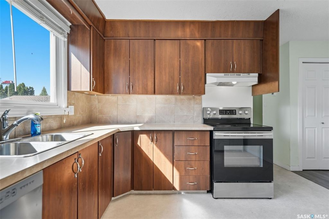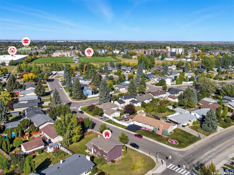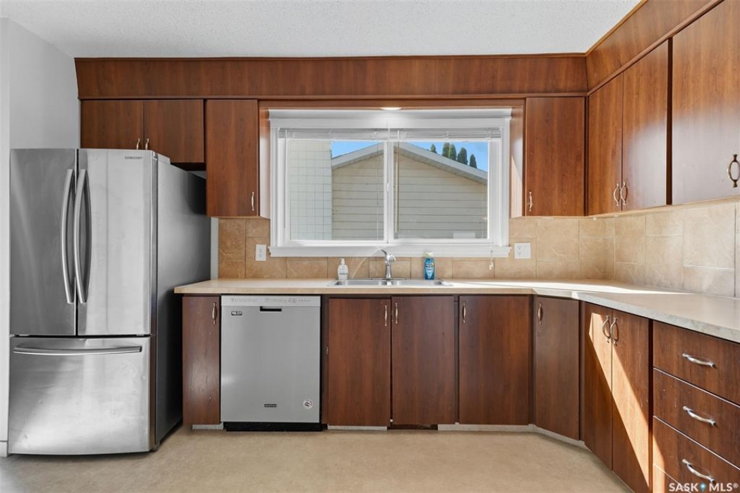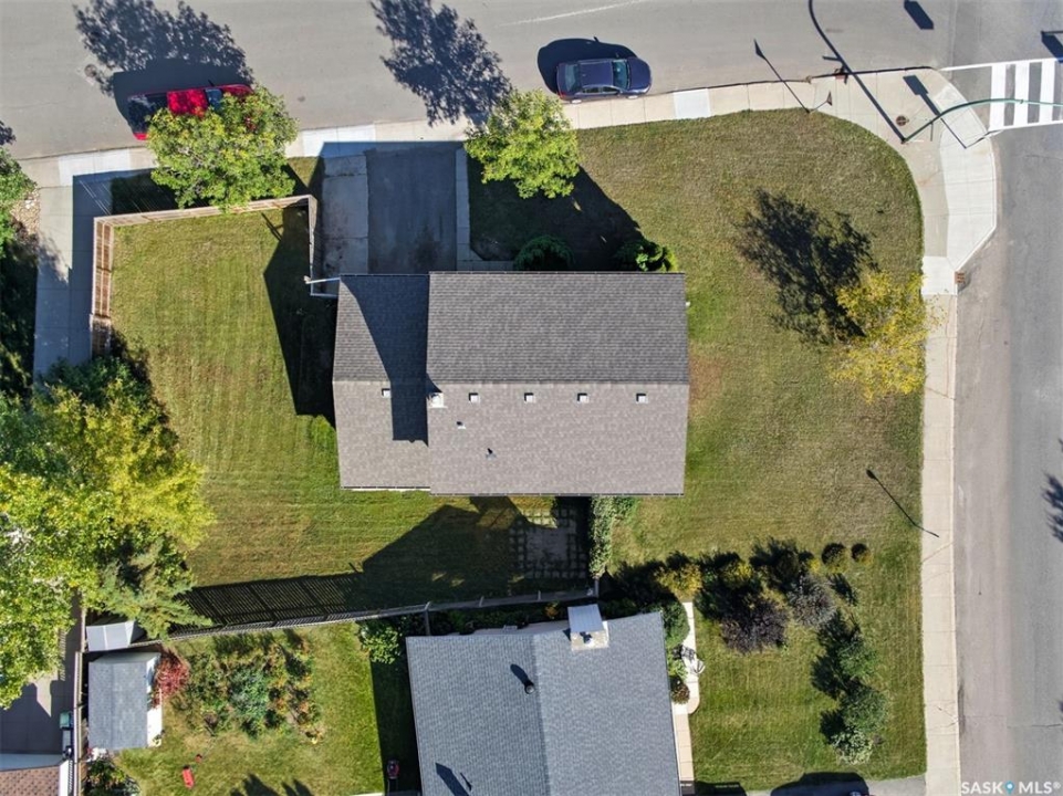 Excellent location in the desirable River Heights area of Saskatoon on this 1500 sq.ft two storey home with a single attached garage situated on a huge corner lot! Step inside to a bright front facing living room that has laminate flooring, a large dining area & a kitchen that features plenty of cupboards, tile backsplash & stainless steel appliances. The main floor also has a 2-piece bathroom & the laundry area. There is direct entry from the garage in to the house from a large storage room. The 2nd floor features an updated 4-piece bathroom & 4 bedrooms with the primary bedroom having his/her closets. The basement is fully finished with a large family room, a den/office & the utility room that has plenty of storage. There are many upgrades including; some newer windows, newer siding in 2018, shingles – 2017, newer furnace/water heater-2019, newer carpet in the basement -2024, newer laminate flooring on the main floor 2019. Located close to all amenities, Lawson heights mall, bus routes, Meewasin valley trails, schools, this perfect family home comes complete with all appliances, central air conditioning, central vacuum, a shed & all window coverings. There is a $2500 credit at closing offered from the seller to the buyer to use towards new carpet on the 2nd floor & paint in the house. All items in the garage will be removed prior to possession with all attached shelving remaining. Call to view.