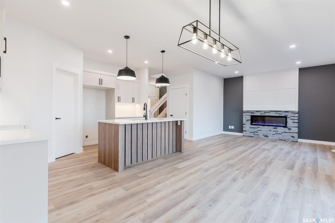Welcome to The Escada! This beautifully designed 1,848 sq. ft. Step inside from the fully insulated garage into a convenient mudroom that leads directly to the walk-through pantry. The modern kitchen features custom cabinetry, quartz countertops, a stylish backsplash, and a spacious island. An oversized patio door in the dining area and large living room windows fill the space with natural light, while the fireplace creates a cozy atmosphere for winter evenings. Upstairs, a bonus room at the front of the home offers additional living space. The primary bedroom, located at the back, boasts a spacious walk-in closet and a 5' custom tiled shower in the ensuite, complete with dual sinks and extra vanity storage. Two additional bedrooms, a laundry area with a cabinet and sink, and a well-appointed main bath complete the second floor. Outside, the home includes a concrete driveway and front landscaping. Built by Edgewater Homes, this property is covered under the Sask New Home Warranty for peace of mind. Please note: Photos may not be exact representations of the home and are for reference only. Errors and omissions excluded. Prices, plans, and specifications are subject to change without notice. PST & GST included with rebate to builder.