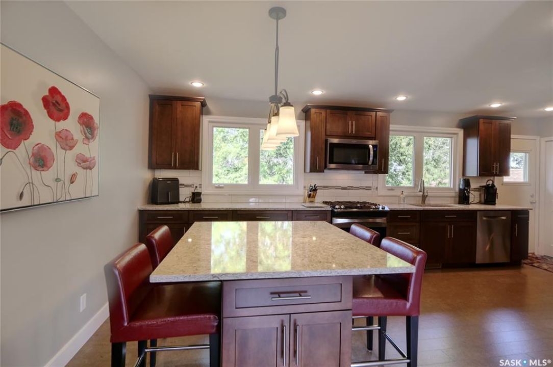 You and your family will love to come home to 1435 Sioux Crescent! Beautifully presented in every way, this spacious bi-level home will appeal to discerning Buyers, offering a move-in-ready home in a great location! The spacious, south-facing living room flows to a gorgeous custom-designed kitchen with quartz countertops, a large island with seating, a gas range, an attached bistro table, plus beautiful views as you step onto the deck! Stepping down the hall, we find a beautiful bath with a jet tub & more custom cabinetry! Across the hall a bedroom has been set up with a built-in desk! The primary bedroom has a 2-piece en-suite, of course! Another spacious bedroom completes the level! Downstairs, you will love the fully finished, natural light-filled space! A large family room for casual entertainment with a games nook is perfect for your family! There are 2 more large bedrooms, & yet another full bath! The laundry/utility room plus storage area complete the lower level! Outdoor lifestyle is amazing with the backyard deck with natural gas BBQ hook-up that steps to a large patio space, fenced, & lovely landscaping, plus beautiful views to enjoy! Yes, there is a garage with an insulated workspace (the generator located in the garage is included!). Just a few features include: xeriscaped front yard, shed, C/A, C/V, Water Softener, UGS in backyard, fenced backyard, 19X22 garage, Air Exchanger, 5 bedrooms, 3 baths, over 1075 sq/ft on main floor, fully finished lower level, updated kitchen & baths, updated windows, lighting, flooring,...too many to list! Be sure to view the 3D scan of the great floor plan & 360s of the outdoor spaces! Defining an immaculate presentation, this is a must see home!