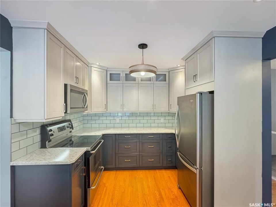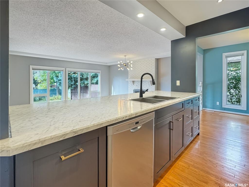 Welcome to a Westside gem offering both comfort and convenience. Perfectly positioned near schools and the scenic Territorial trail, this home combines modern updates with timeless charm. This 3 bedroom 3 bathroom home is designed with a family in mind. The master bedroom features a walk through closet to the 2-pc ensuite. A renovated kitchen with soft close cupboards and island(2019) opens to a light-filled family room addition where a gas fireplace sets the tone for cozy evenings. The Floor to ceiling windows add ample natural light while giving you a panoramic view of the beautifully landscaped back yard. Hardwood floors, an upgraded bathroom (2023), and main floor laundry bring ease to daily living, while a formal living room provides extra space for hosting. With upgrades like a new water heater (2023), garage shingles (2024), improved attic ventilation, plus updated windows, doors, and blinds, you can simply move in and enjoy. Central air (2022) and central vac are thoughtful extras. The finished basement expands your living options with a roomy rec space, 3-piece bath, and multiple flex rooms for hobbies, a gym or work. Step outside to discover mature trees, underground sprinklers, a sunny patio, and a double detached garage with alley access. A well-cared-for home in a neighborhood you'll love. Don't miss out, call today for a private showing.