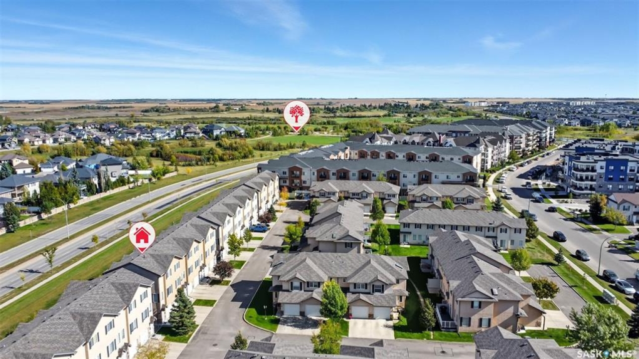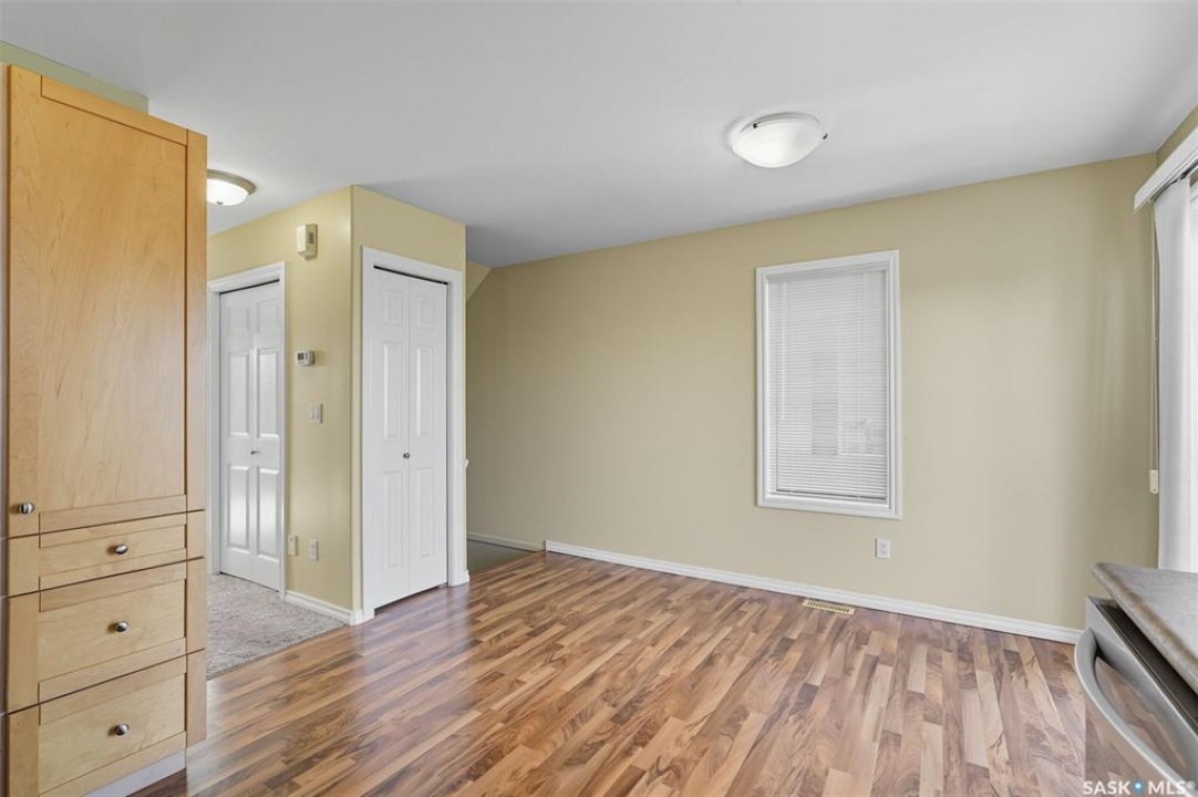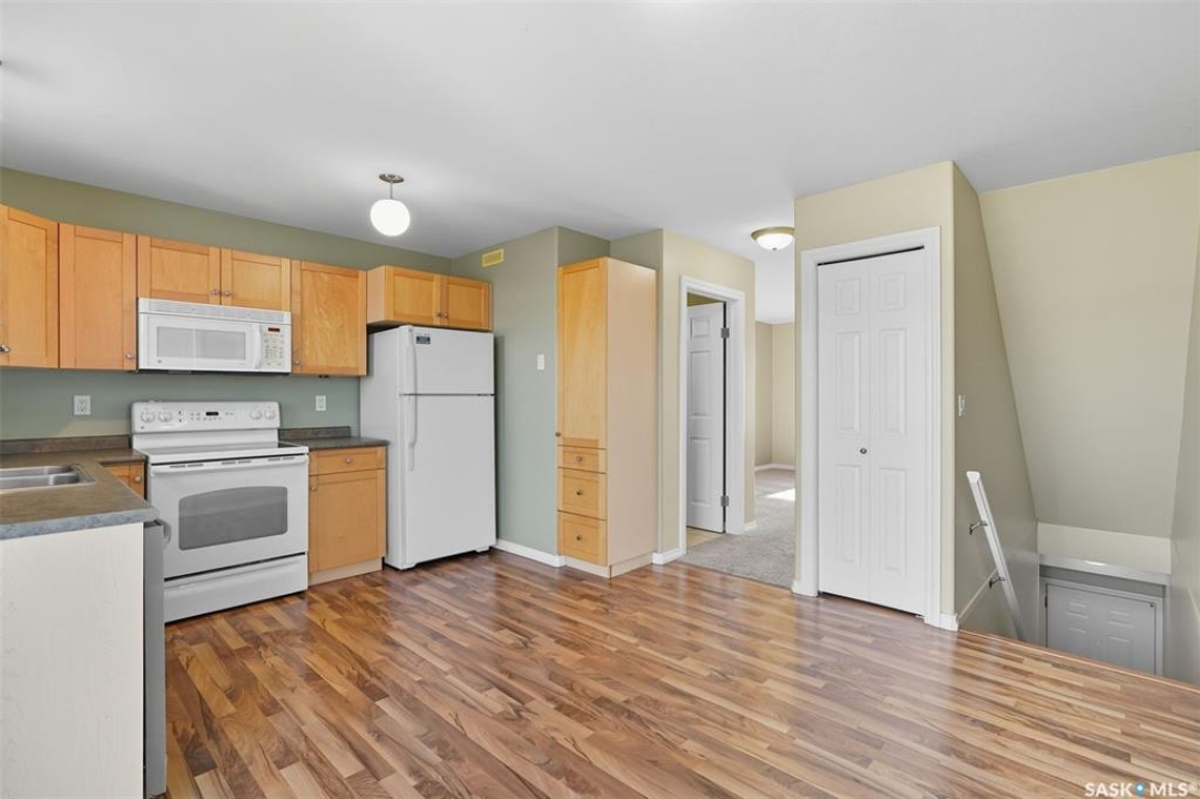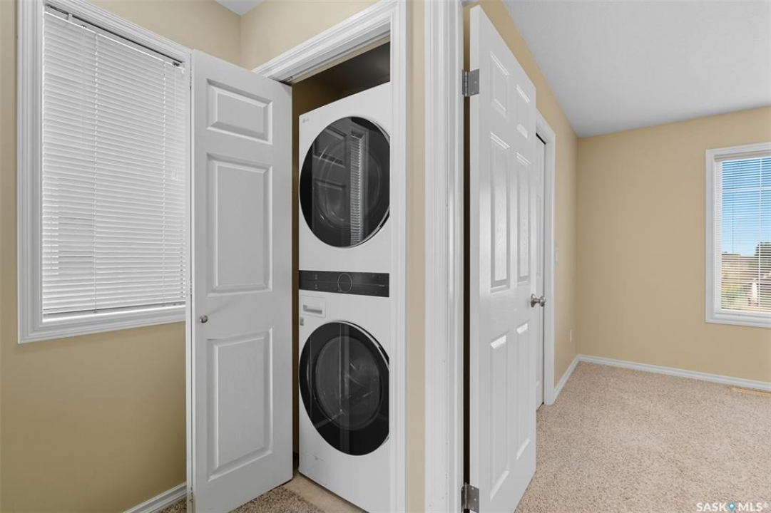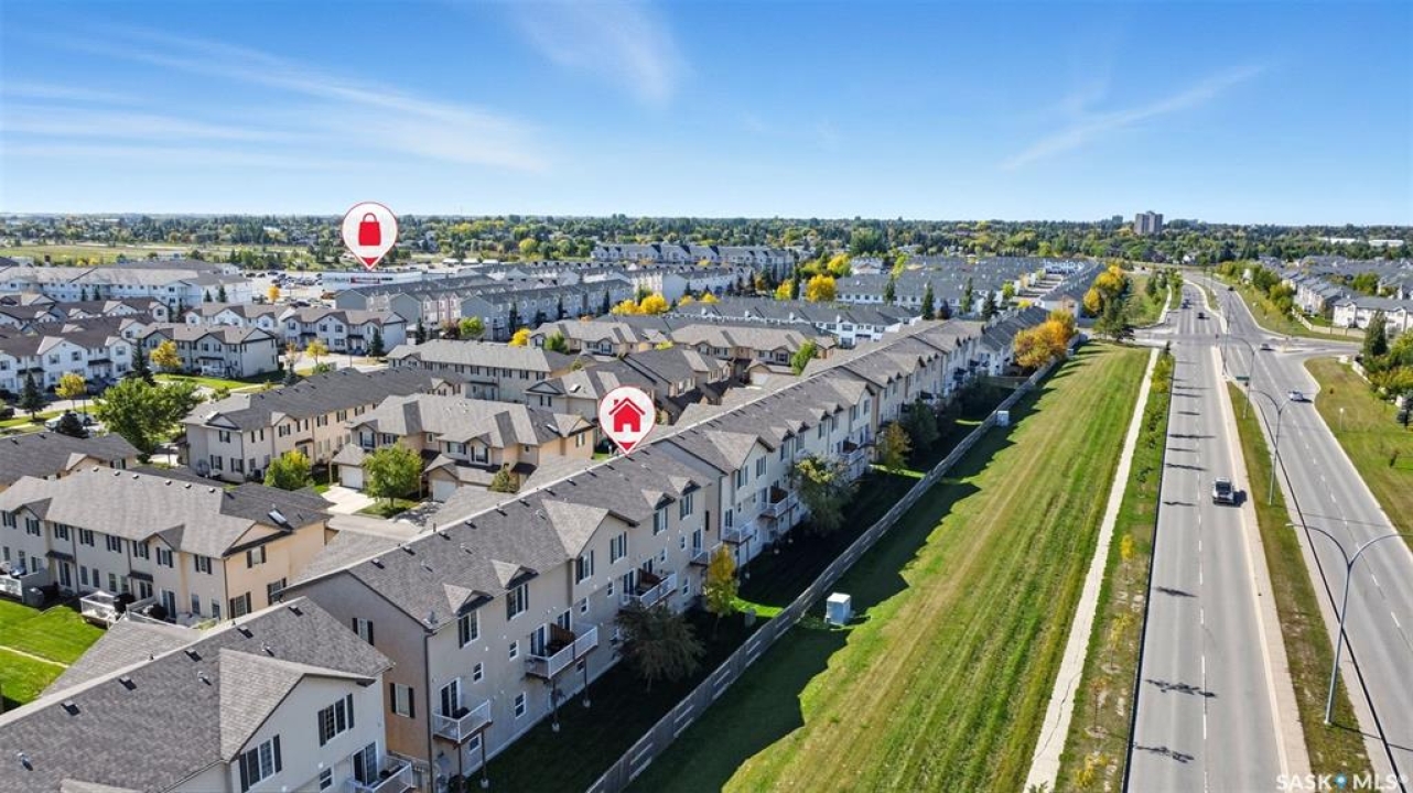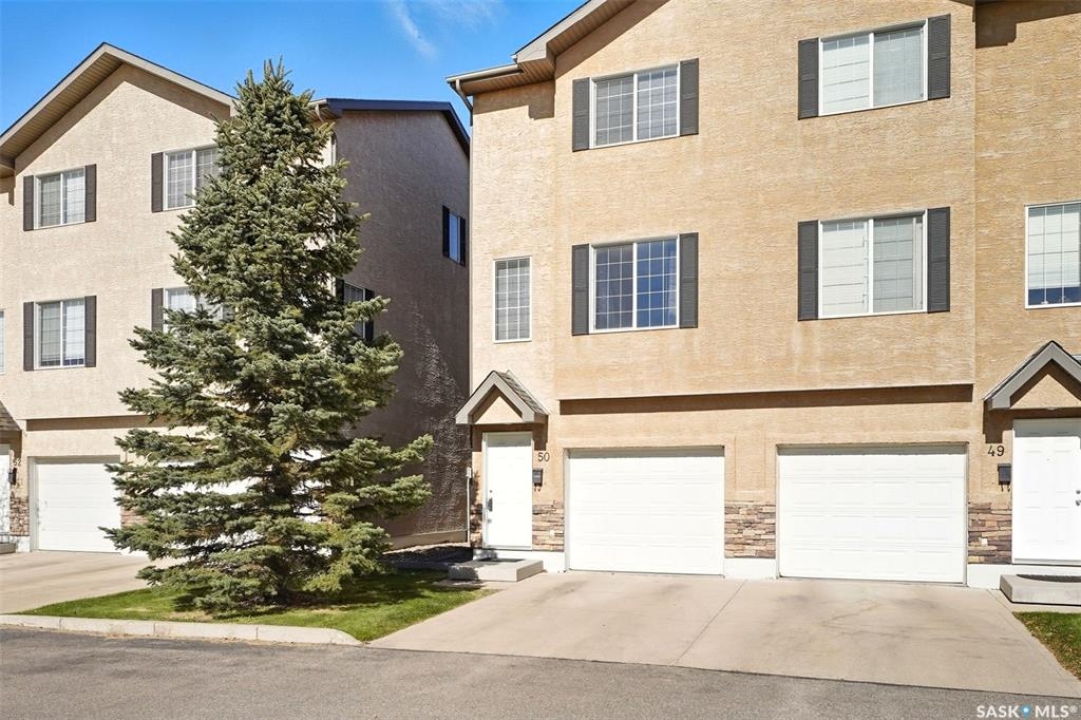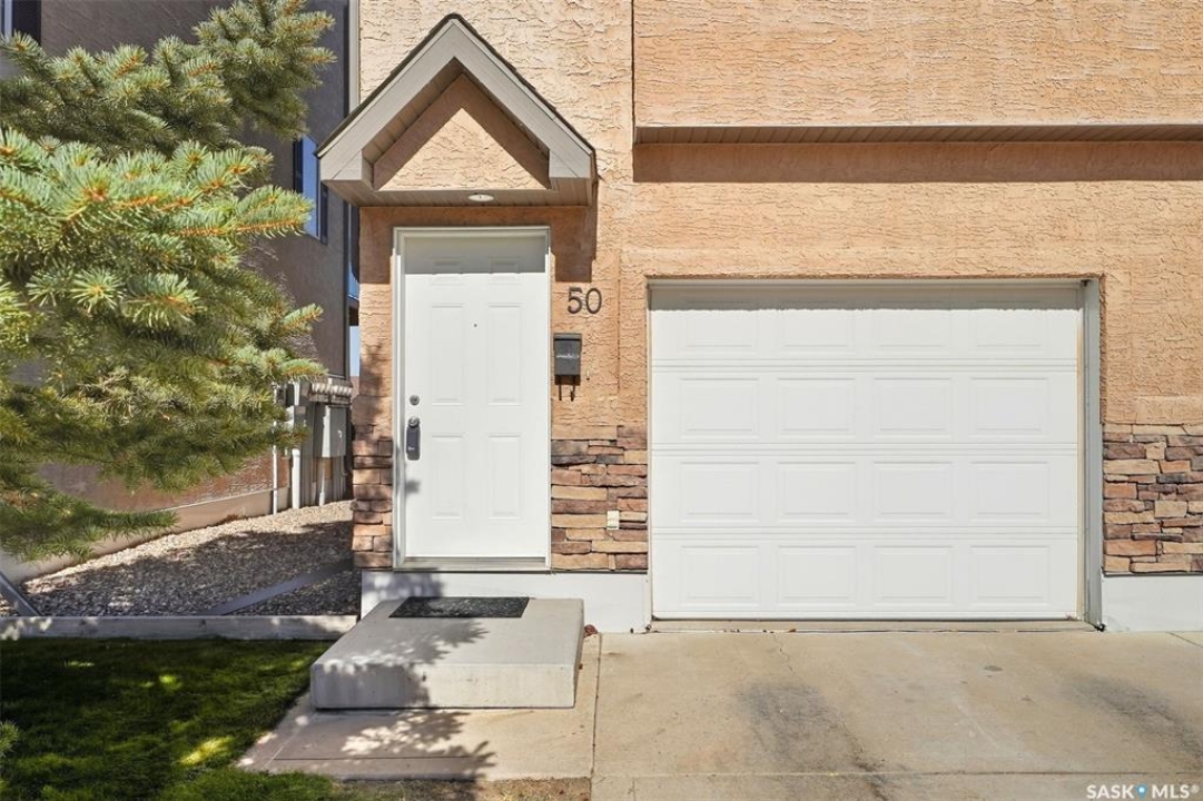 Welcome to 50-118 Pawlychenko Lane, a very well-maintained end-unit townhome offering a functional layout, thoughtful updates, and a convenient location close to all area amenities, close to bus stops, and easy access to 8th Street. With the convenience of an attached garage, you'll appreciate warmer starts and easier routines throughout our Sask winters. Off the garage, you'll find a fully finished flex room, perfectly suited as a home office, workout/yoga space, or additional storage area. The second floor features a bright kitchen and dining area - you'll love the extra windows that a corner unit provides. Adjacent to the kitchen and dining area opens onto a balcony that provides an ideal spot for morning coffee, grilling, or evening relaxation. The spacious living room with large south-facing windows also fills the space with natural light. This level also hosts a 2 piece bath for added convenience and comfort. Upstairs, you'll find two comfortably sized bedrooms, a four-piece bathroom, and convenient laundry, now complete with a brand-new washer and dryer in 2024. Notable upgrades include a new air conditioning unit in 2022, recently cleaned furnace ducts, and central vacuum. This home is move-in ready, and an excellent opportunity for those seeking comfort, functionality, and value in a desirable community.