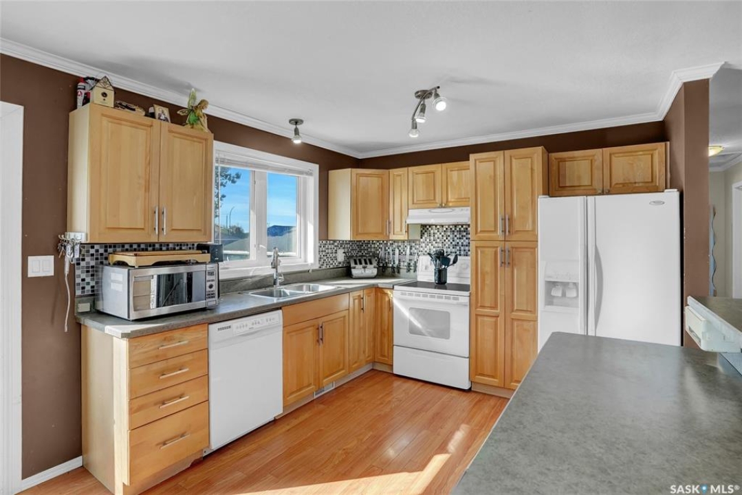 This home offers modern updates made over the years inside and out, making it an ideal choice for your next move. As you arrive, the welcoming front drive sets the tone. You are invited into the foyer that leads you to a bright and spacious main floor, designed with an open concept layout that seamlessly connects the living, dining & kitchen areas. The kitchen is a delight, featuring a central island, abundant cabinetry, generous counter space, and a built-in pantry w/pull-outs. From the dining area, patio door leads you to a tiered deck that overlooks a perfectly sized yard, ideal for both relaxation and play. The main floor also accommodates 2 bedrooms, each equipped w/double closets, and an updated 3pc. bath w/tile surround & a linen closet for extra storage. Venture to the lower level where a cozy family/game area awaits, complete with a fireplace & large windows that flood the space with natural light. The laminate flooring connects you to the spacious 3rd bedroom. This floor also features a well-appointed 4pc. bath with a jet tub, storage, and a laundry space within the utility room. Outside, the south-facing yard is fenced, offering privacy and a family-sized deck perfect for entertaining. Additional storage is available under the deck as well as in the large shed. The yard serves as an open canvas, waiting for you to transform it into your personal oasis. With alley access, the gated area provides the option to park an RV or boat, adding to the home's versatility. Completing this package is a double-sized garage, insulated, w/a single-sized overhead door. The added convenience of a front drive offers ample parking for you and your guests. Situated in a wonderful family neighbourhood, this home is near a new school, walking paths, and a park, making it the perfect setting for creating cherished memories. Don't miss the opportunity to make this exceptional house your home. CLICK ON THE MULTI MEDIA LINK FOR VISUA TOUR & Call today for your personal viewing!