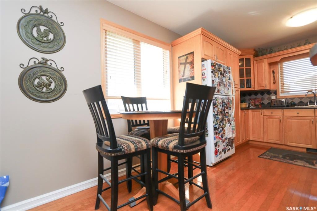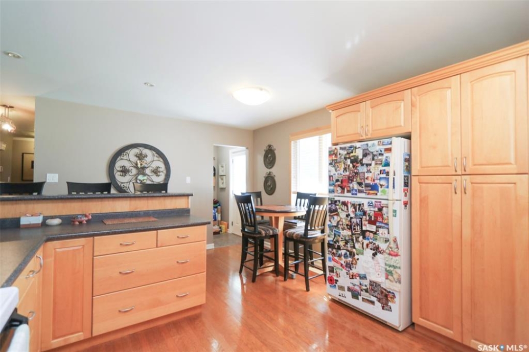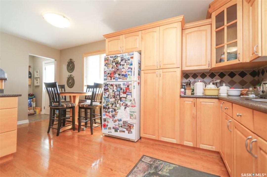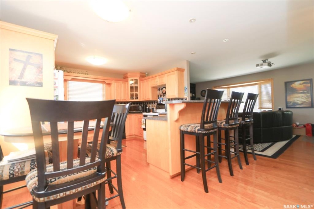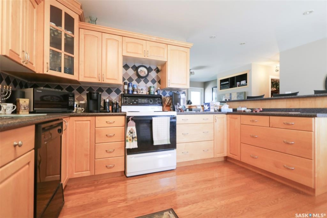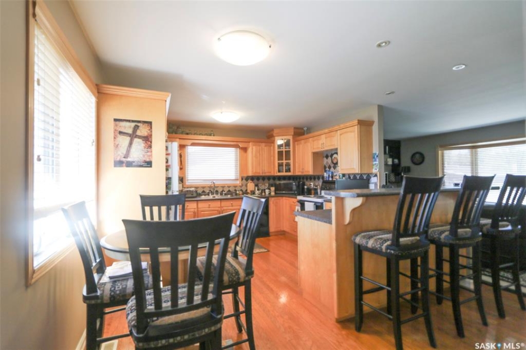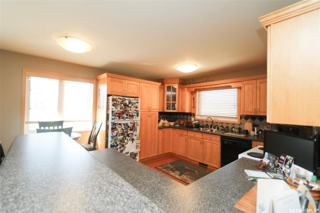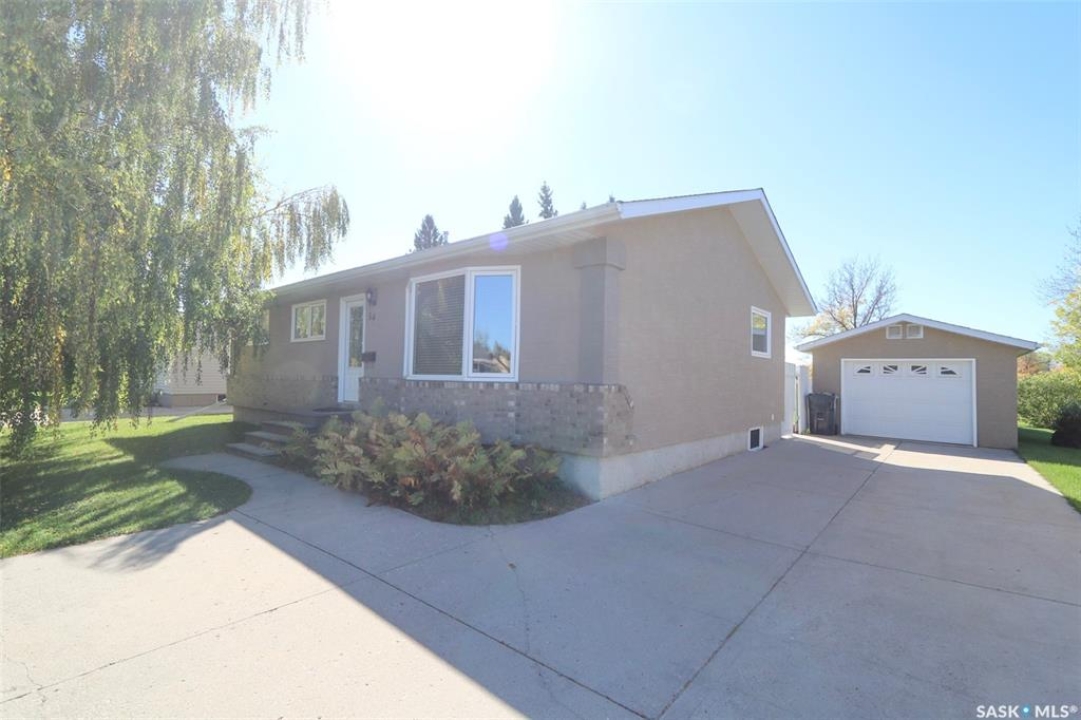 Welcome to 54 Mackenzie Drive, a beautifully upgraded home in Yorkton's sought-after Heritage Heights neighbourhood. This ideal location is perfect for active families—just steps away from newly upgraded pickleball and tennis courts, paved basketball courts, walking trails, and a spacious park. Plus, elementary schools and shopping are all within walking distance. Situated on a generous fenced lot, this property backs directly onto Heritage Heights Park, offering scenic views and added privacy. The 14x42 tandem garage provides plenty of space for two vehicles or the flexibility to create a workshop or hobby area. Inside, the home impresses with modern upgrades and a smart layout. The chef-inspired kitchen is a highlight, featuring extensive cabinetry, ample counter space, and a large sit-up island perfect for hosting and entertaining. The open-concept living room flows seamlessly from the kitchen, making it easy to relax or gather with family and friends. The main floor includes 3 bedrooms and a stunning 5-piece jetted bathroom with direct access to the primary bedroom—your own private retreat. Downstairs, the fully developed basement offers a massive recreation room, an oversized fourth bedroom, a den/office space, a 3-piece bathroom, and plenty of storage options. With durable stucco and brick exterior, updated windows, and a prime location in a family-friendly neighbourhood, this home is truly move-in ready. Whether you're into sports, nature, or just want a quiet, well-located home—54 Mackenzie Drive checks all the boxes.