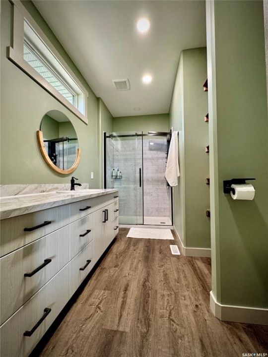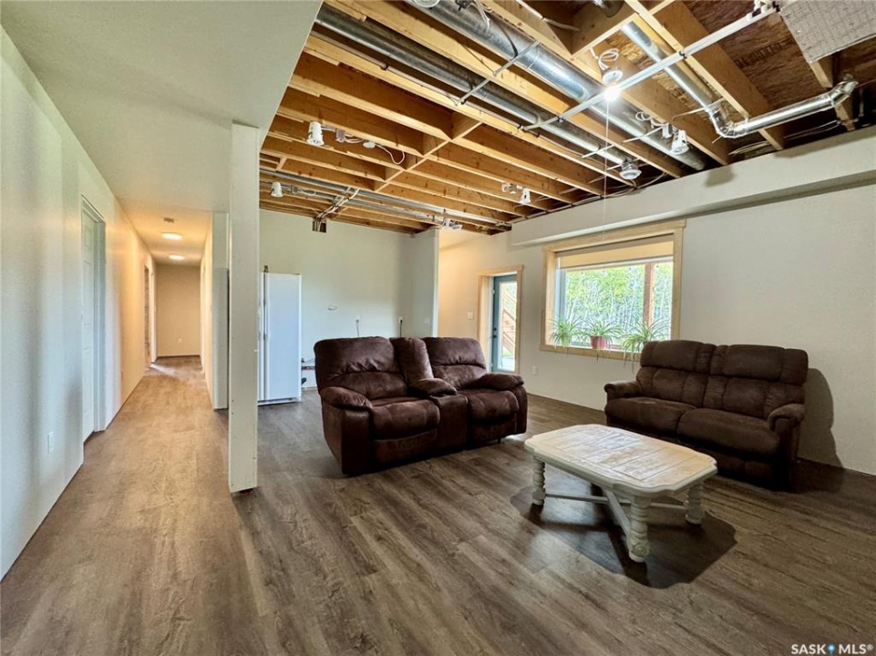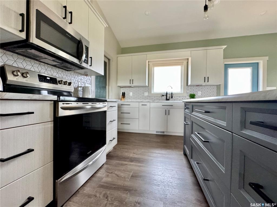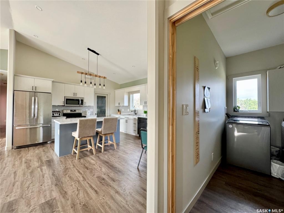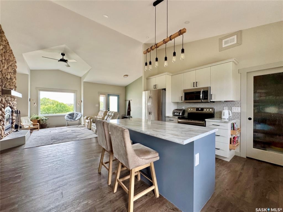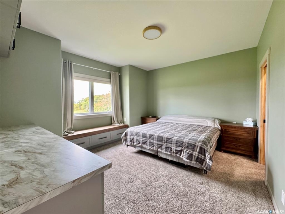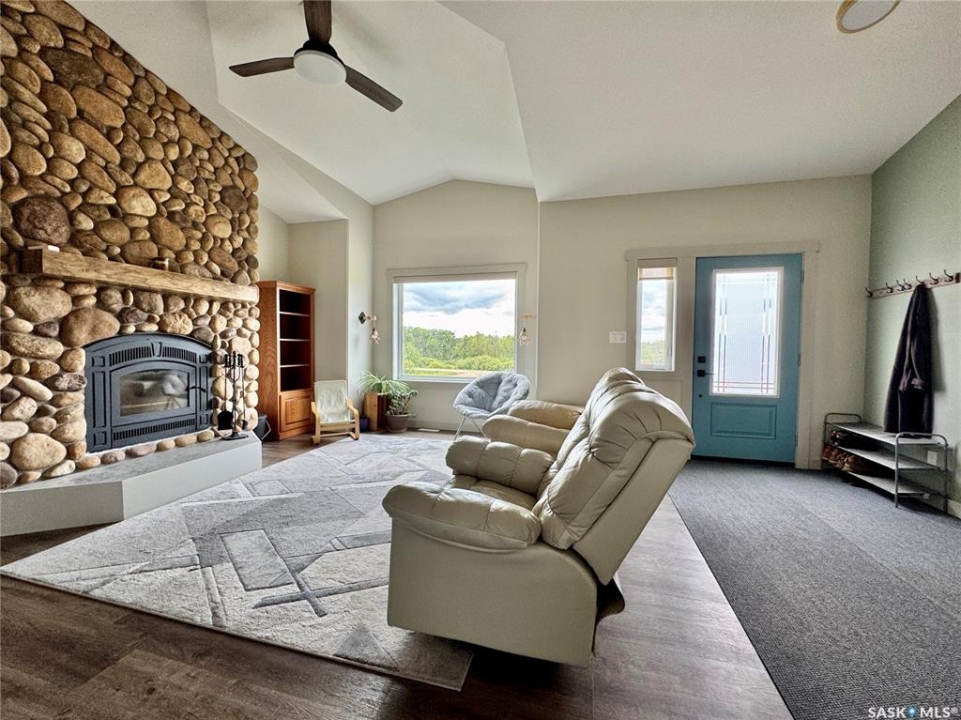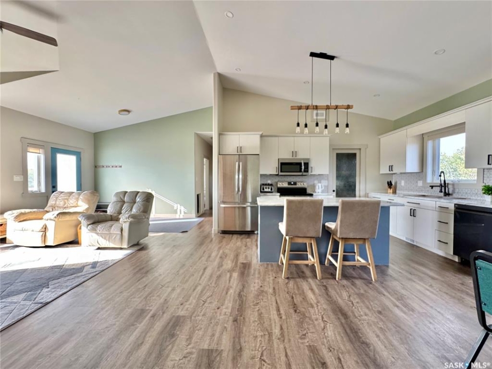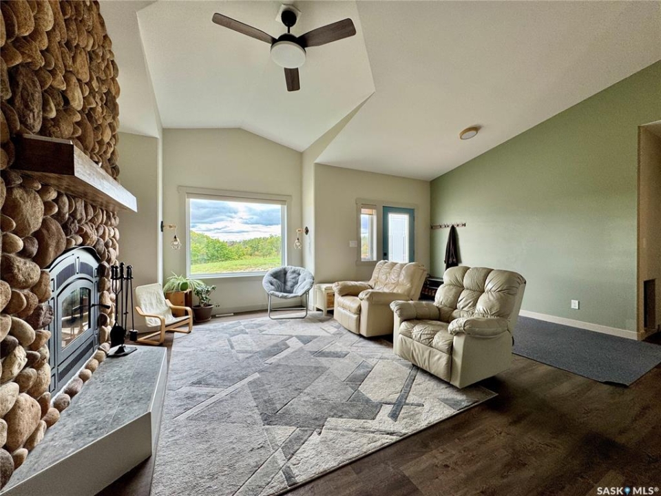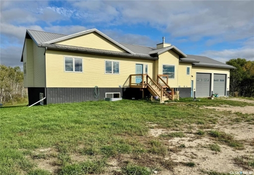 At Natures Edge Acres, nature and new construction come together in a way rarely seen in SE Saskatchewan. Tucked behind a mature shelterbelt where deer and songbirds wander, this 2022 custom build delivers more than 3,000 sqft. of exceptional living space—a chance to own a true countryside original without the wait of building. Designed from the ground up with family and entertaining in mind, the home offers 5 bedrooms and 4 bathrooms, plus a surprise you'll be talking about long after the showing: a 6th bedroom with a built-in slide right at the heart of the house. Whether it's kids at play or simply hauling heavy bags downstairs, the slide turns everyday tasks into something fun. The main living area wows from the moment you walk in. Vaulted ceilings and wall-to-wall windows capture prairie light from sunrise to those legendary Saskatchewan sunsets. A dramatic floor-to-vault river rock fireplace anchors the space—beautiful to look at and practical too, with settings that keep the home warm even if the power goes out. The chef's kitchen is ready for gatherings big or small, complete with a generous prep island, deep dovetailed pot drawers, and soft-close cabinetry. The sink frames tranquil eastern views while the west-facing picture window serves up nightly sunset shows. Built with modern efficiency in mind, the home features geothermal heating and cooling, weeping tile, excellent insulation, and spa-style ensuite showers. The electrical wiring has been thoughtfully planned—“overbuilt,” as the owners like to say—so you're ready for anything from a future basement bar with toe-kick lighting to advanced tech upgrades. Outside, the unfinished shop is already set up for big projects with a welder plug, 30-amp camper hookup, and doors tall enough for a lifted truck. Whether you're after a family retreat, a place to host unforgettable gatherings, or simply room to breathe, this acreage offers a rare combination of new-home comfort and Saskatchewan's natural beauty.