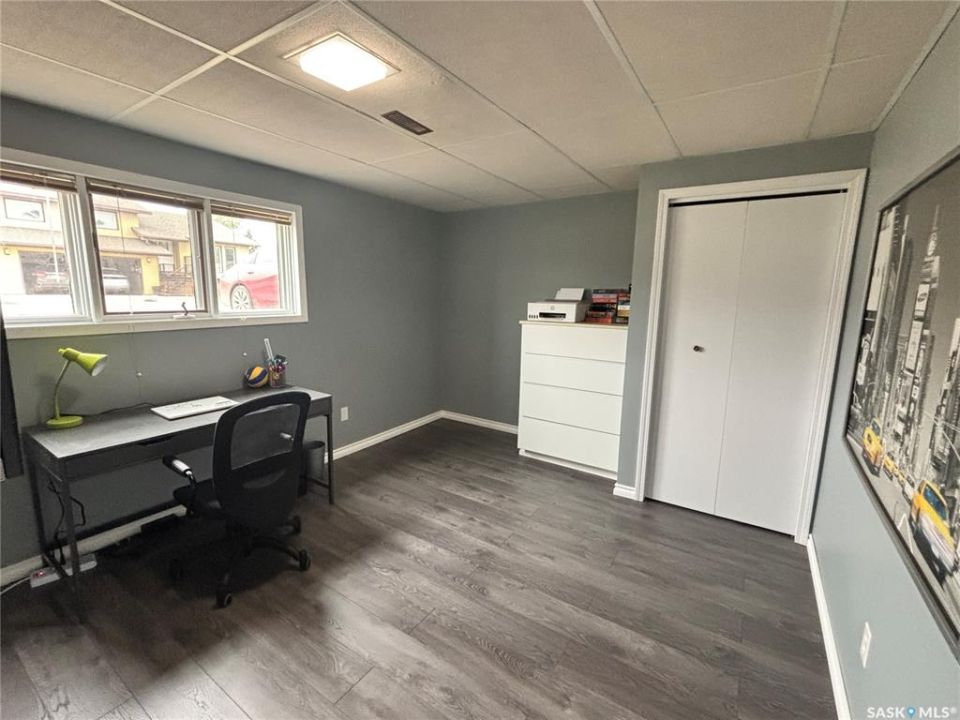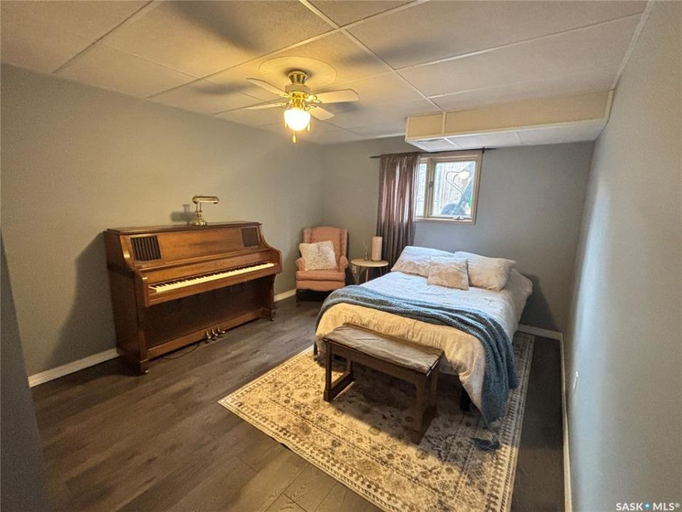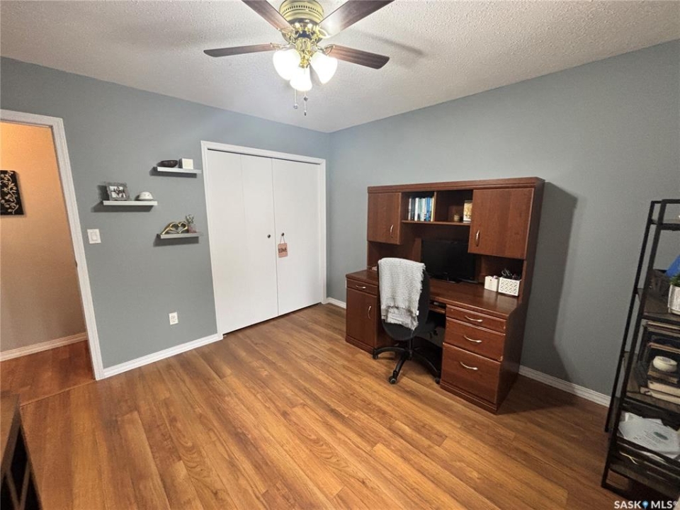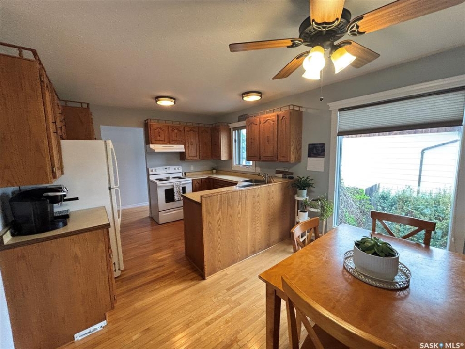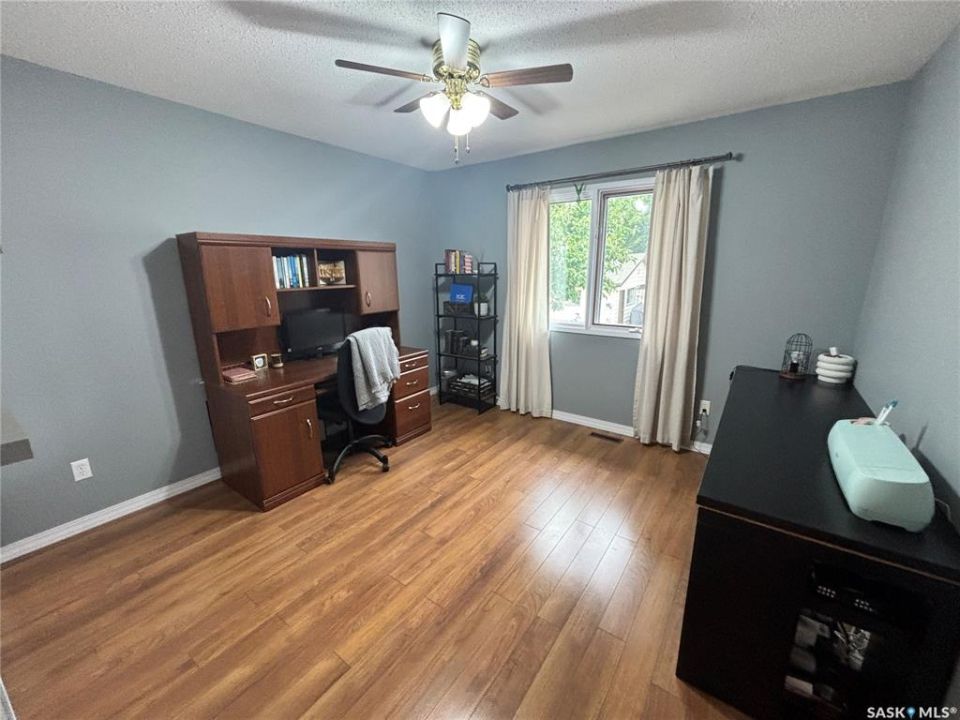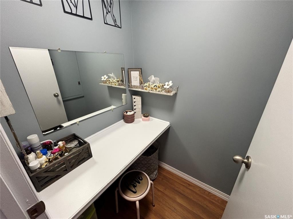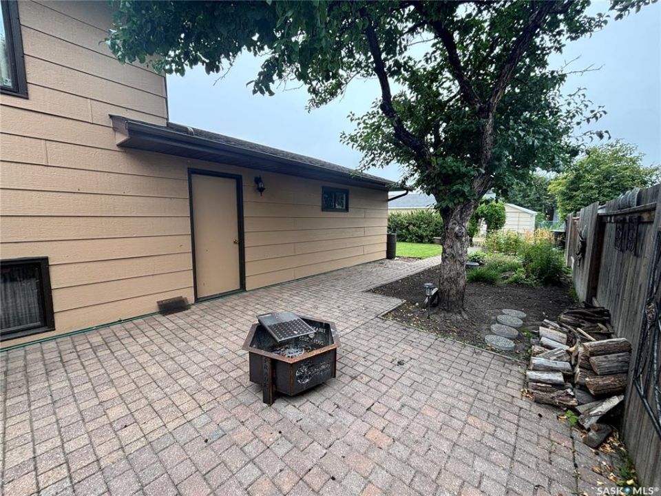 Welcome to this well-maintained bi-level home located in the growing community of Lanigan, Saskatchewan. Nestled on a quiet crescent, this property sits on a desirable corner lot within walking distance to schools and parks—an ideal spot for families. The exterior boasts attractive street appeal with a single attached garage, surrounding green space, a small garden area, and a three-tier deck at the back—perfect for entertaining or enjoying the outdoors. Inside, you're greeted with a spacious entrance that offers the option to go up or downstairs. The main level features a bright living room with large windows, flowing seamlessly into the dining room and kitchen. The kitchen provides plenty of counter and cupboard space with classic oak cabinetry, along with a convenient storage closet off the rear entry—large enough to house a stand-up freezer. Two generously sized bedrooms and a four-piece bath complete the main floor. The primary bedroom includes a unique makeup area that could easily be converted back into a two-piece ensuite for added convenience. A handy laundry chute connects the main bath directly to the basement laundry area. The lower level is designed for comfortable living with large windows that bring in natural light, a spacious family room with a cozy wood-burning fireplace, two additional bedrooms, a three-piece bath, and a laundry/utility room with ample storage. With a thoughtful layout, plenty of storage, and a welcoming neighborhood, this home offers comfort and functionality for a growing family.