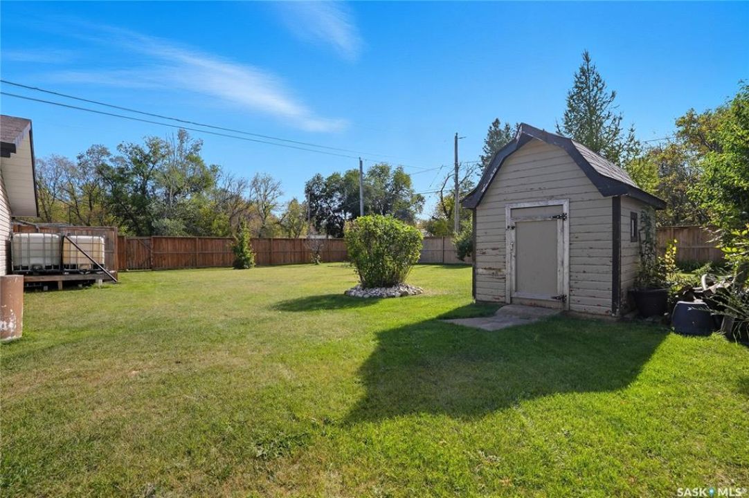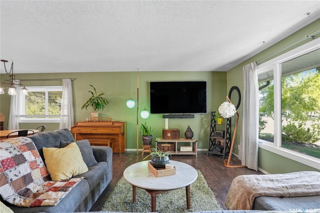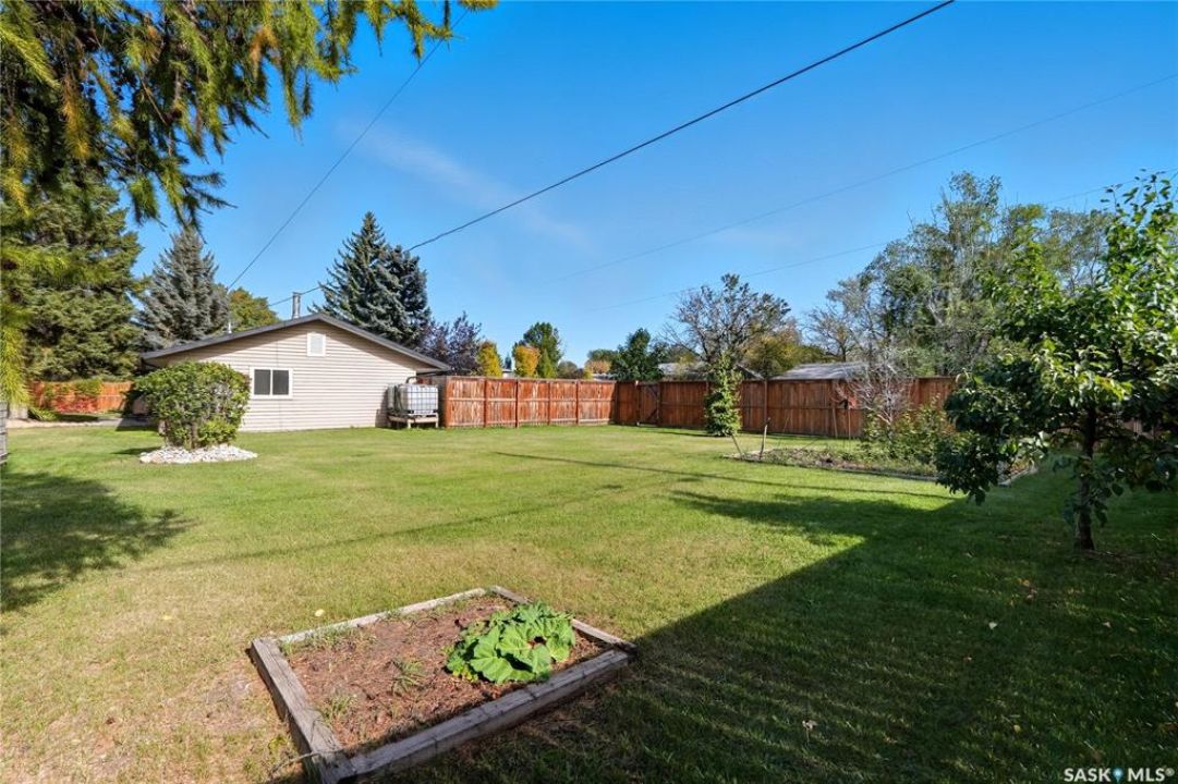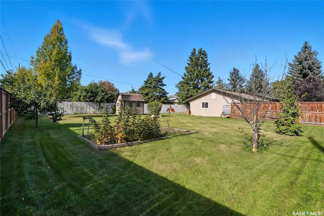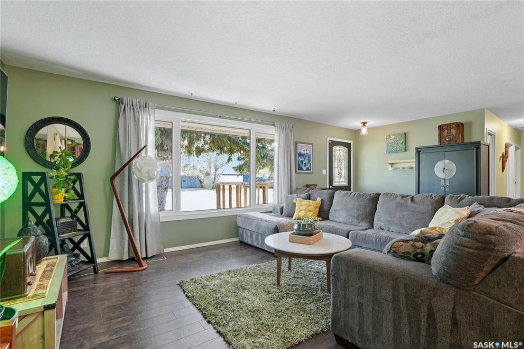 Welcome to small town living just minutes from Saskatoon & Martensville. This spacious bungalow is located on a sprawling corner lot, across the street from a park and around the corner from the edge of town. An open yet cozy floor plan greet you as you enter the home. The upgraded kitchen cabinets provide ample storage and plenty of counter space for the cooking & baking enthusiasts. Three bedrooms on the main floor includes a primary bedroom with an attached two piece ensuite and a seperate 4 piece bathroom to ound out the main floor. The updated basement includes a three piece bathroom, spacious family room perfect for movie nights and a nook that can accomodate a large desk for work from home space and large den that was being used as a bedroom. Outside, you will find a double garage attached by enclosed breezeway. This home features updated shingles, windows and siding as well. All of this sitting on a massive fully landscaped and fenced corner lot with mature trees and garden area. This home is oerfect for those looking for a bit more space, small town living but still close enough to the city of Saskatoon. Don't miss your chance to view this home, call your Realtor � today for a private showing!