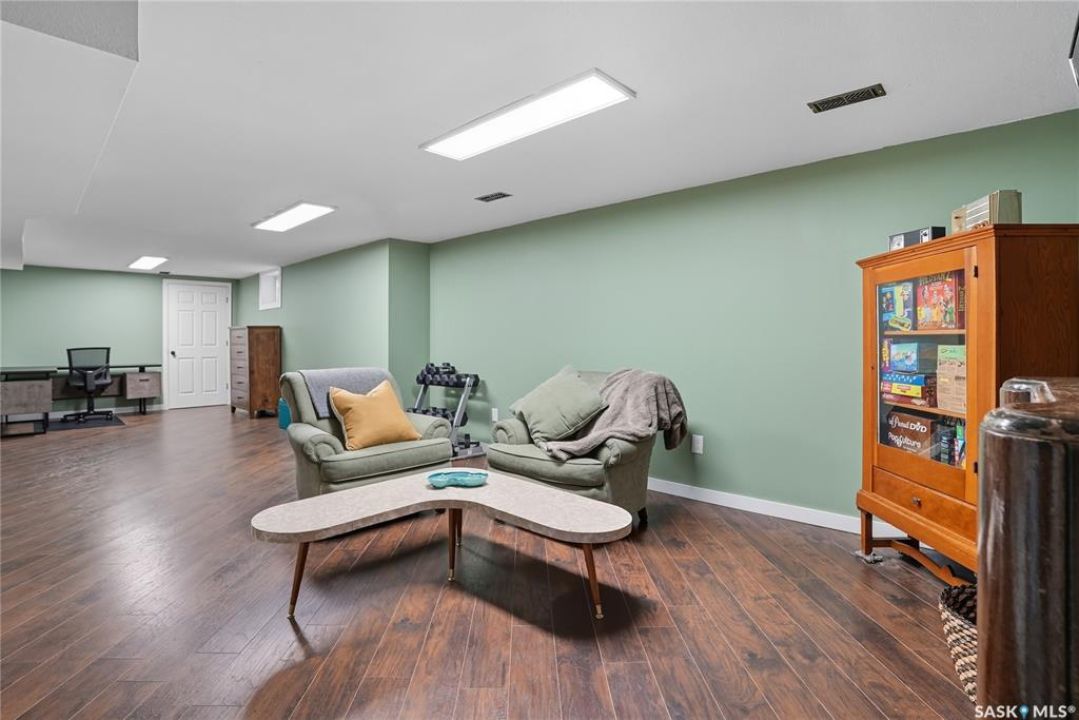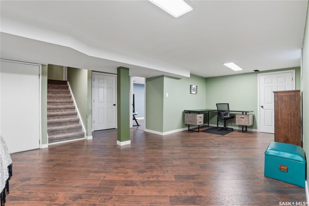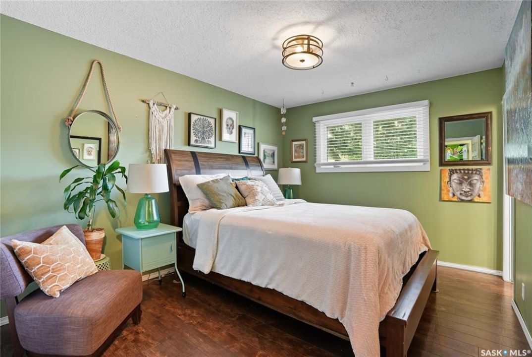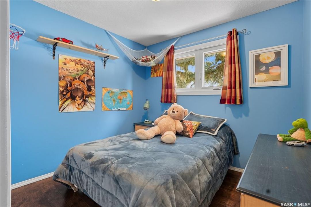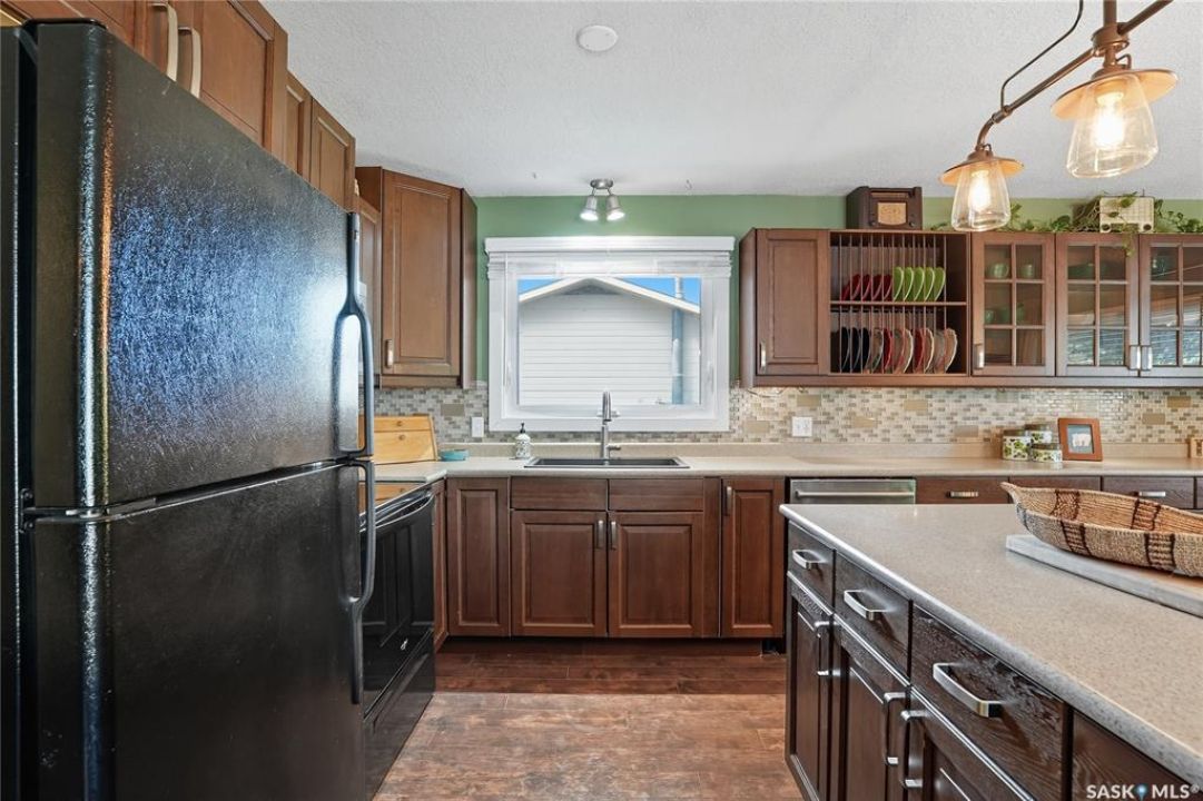 Welcome to small town living just minutes from Saskatoon & Martensville. This spacious bungalow is located on a sprawling corner lot, across the street from a park and around the corner from the edge of town. An open yet cozy floor plan greet you as you enter the home. The upgraded kitchen cabinets provide ample storage and plenty of counter space for the cooking & baking enthusiasts. Three bedrooms on the main floor includes a primary bedroom with an attached two piece ensuite and a seperate 4 piece bathroom to ound out the main floor. The updated basement includes a three piece bathroom, spacious family room perfect for movie nights and a nook that can accomodate a large desk for work from home space and large den that was being used as a bedroom. Outside, you will find a double garage attached by enclosed breezeway. This home features updated shingles, windows and siding as well. All of this sitting on a massive fully landscaped and fenced corner lot with mature trees and garden area. This home is oerfect for those looking for a bit more space, small town living but still close enough to the city of Saskatoon. Don't miss your chance to view this home, call your Realtor � today for a private showing!