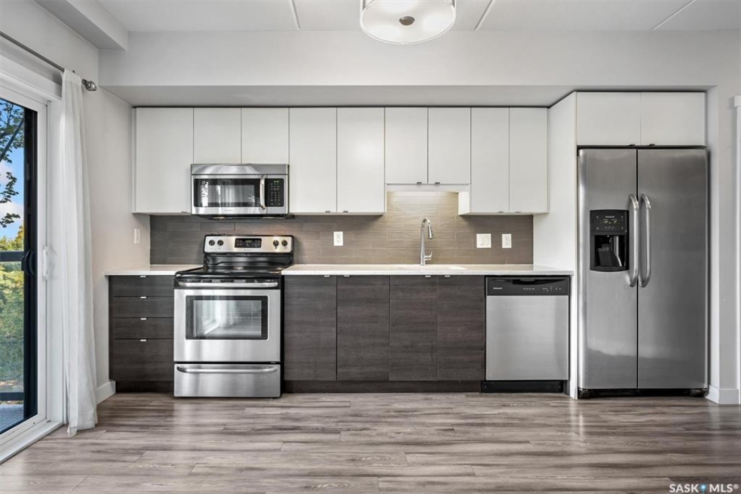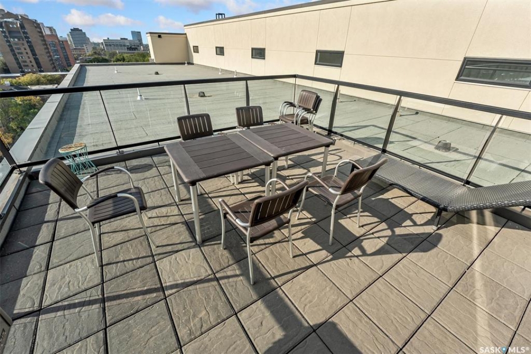Welcome to The Shangri-La on 4th Ave. This stylish 1 bedroom, 1 bathroom condo is perfectly situated in the heart of Saskatoon. The bright impeccably maintained unit features a functional open concept layout. Enjoy the convenience of a built-in computer workspace, modern kitchen, quartz countertops and tile back splash - ideal for both everyday living and entertaining. You are close to City Hospital, University of Saskatchewan, Royal University Hospital, downtown shops, restaurants and city transit. What a great location offering the best of urban living with easy access to nature. Set in a soundly constructed concrete building, residents can enjoy premium amenities including a rooftop patio with BBQ area, an amenities room with fitness equipment, and the added convenience of one underground parking stall. Don't miss this incredible opportunity to own in one of Saskatoon's most sought after locations. Book your showing today with your favorite Realtor!