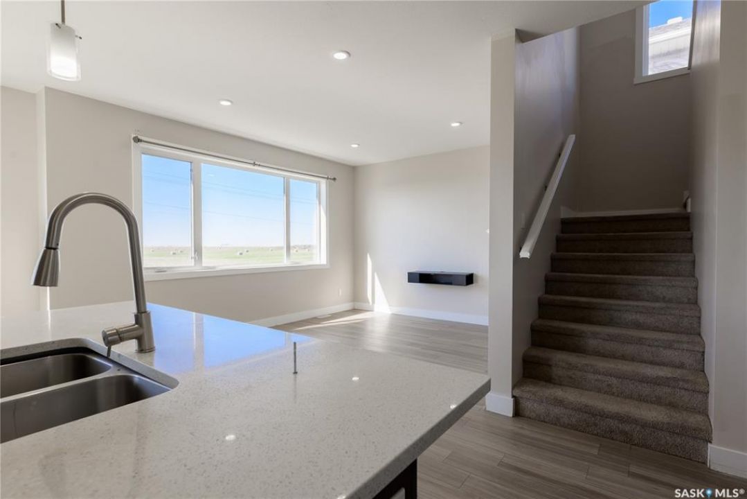 Welcome to this beautiful home with legal basement suite in the sought-after community of Harbour Landing, Regina. Featuring a double car attached garage, this property combines comfort, functionality, and scenic views. Step inside to a spacious living room filled with natural light, offering stunning green field views right from your window. The open-concept main floor boasts a large kitchen with plenty of counter space, a dining area perfect for family meals, and a convenient half bathroom. Upstairs, you'll find three generously sized bedrooms, designed for comfort and privacy. The layout is ideal for families, providing both space and functionality. Legal basement Suite with 1 Bedroom 1 bathroom that will can help in your mortgage . Enjoy your mornings or unwind in the evenings on the spacious deck, perfect for coffee, gatherings, or simply soaking in the peaceful surroundings. This home is the perfect blend of modern living and serene views—don't miss your chance to make it yours!