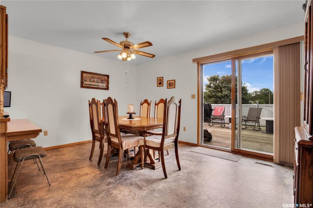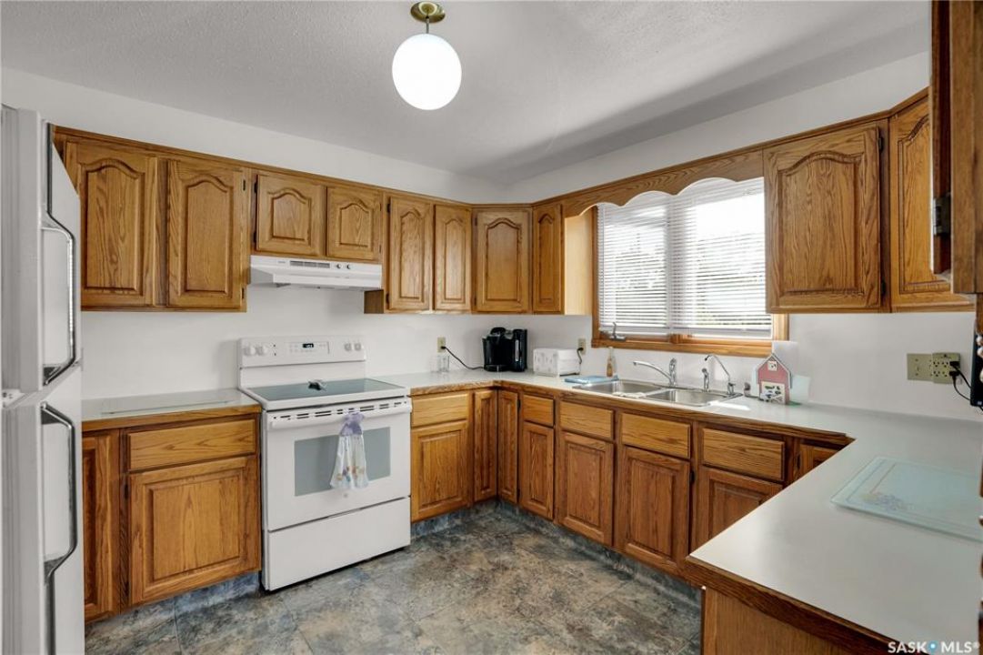 Are you looking for your next home? You won't want to miss this one - pride of ownership shines here! This immaculately maintained bi-level home was built in 1991 and boasts over 1,100 sq.ft. with a double attached garage. This 4 bed / 2 bath home provides excellent space for a family. Excellent curb appeal as you pull up. Heading inside you are greeted by a spacious foyer with access to your attached garage. Heading upstairs we are greeted by a good sized living room. Heading back we find a spacious formal dining room with access to your huge tiered deck - perfect for entertaining or your morning coffee. Off the dining room we find a large U-shaped kitchen boasting lots of cabinets and counter space - with an eat-up bar. This is sure to be the heart of this home. Down the hall we find 2 large bedrooms! Finishing off the main floor we find main floor laundry and a 4 piece bathroom. Heading downstairs we have a large family room - the perfect place for the kids to play. There is a second 4 piece bath, 2 more large bedrooms, a den/office and storage spaces! Outside we find a large 50' x 150' lot with lots of privacy from the hedges. Lots of grass and a large garden area as well. This home provides great value for any buyer - excellent family home! Located in the bustling town of Gravelbourg - just minutes from Thomson Lake! Reach out today to book your showing!