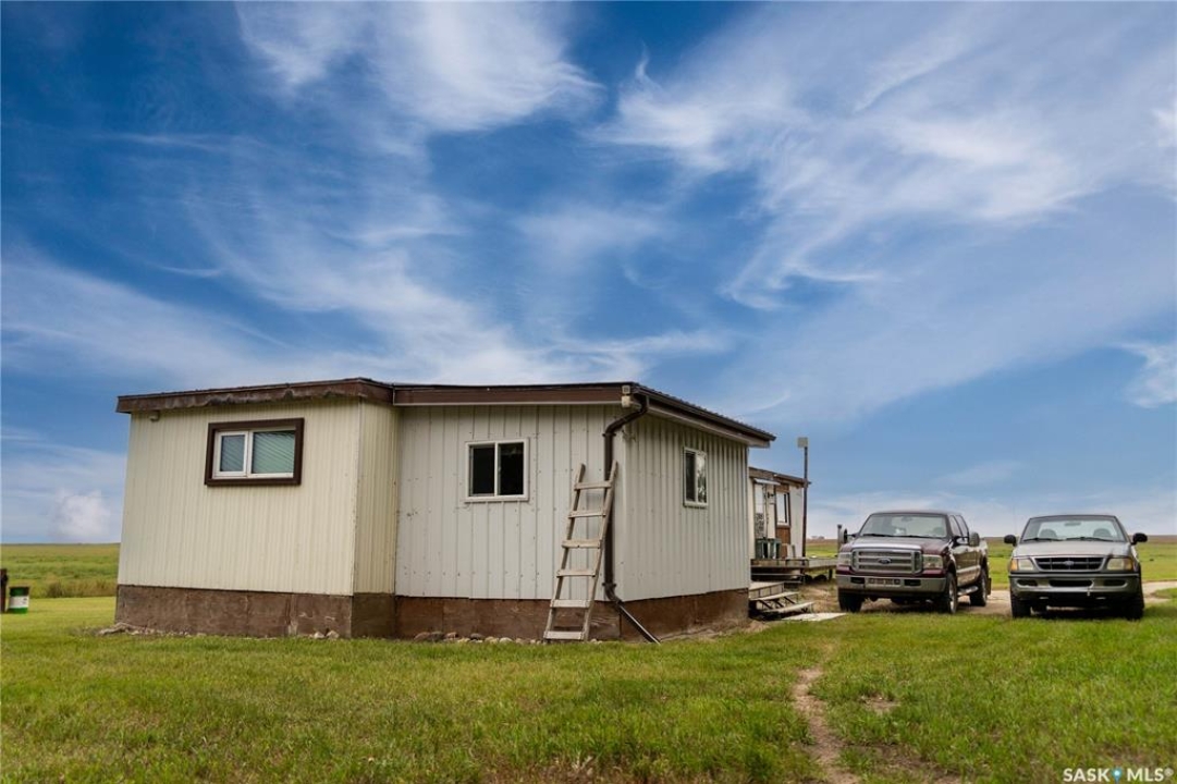 Opportunity knocks in the Holdfast, SK area — a nicely configured ranching yard site on one quarter section of mixed-use land in RM of Sarnia #221. Ideal for expanding your cattle operation or starting a hobby ranch, this property combines infrastructure, reliable water, and prairie charm. Located on the west side of Last Mountain Lake, it also offers great nearby recreation. SAMA field sheets report 125 cultivated acres, currently in tame hay but suitable for crop production. The land is partially fenced with 4-strand barbed wire in excellent condition; about 57 acres are not yet fenced and could add grazing capacity. Water is key, and this property is well supplied with an artesian well, another water well, and two spring-fed dugouts. The 1,800 sq ft home, built in 1915, has been very well cared for and offers 4 bedrooms, 2 bathrooms, a spacious living room, south-facing rec room, and a private primary bedroom tucked away from the main living area. The yard is sheltered by mature trees and well arranged for mixed farming. Outbuildings include: 40x56 quonset with power, 78x42 pole shed, 36x58 barn, butcher house with power & heat, 3-car detached garage, smoking shed, well house, and 3 sheds. The artesian well feeds a 400-gallon trough for livestock. Wooden corrals with gates/panels (some included) provide livestock handling. Carrying capacity for fenced land is ~15 head, with potential to increase by fencing ~57 additional acres. If you're looking for more land, two extra quarters are available separately just southwest (SK019387). With infrastructure, water, and proximity to recreation, this is an affordable opportunity to farm and ranch in a productive area.