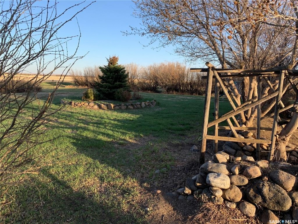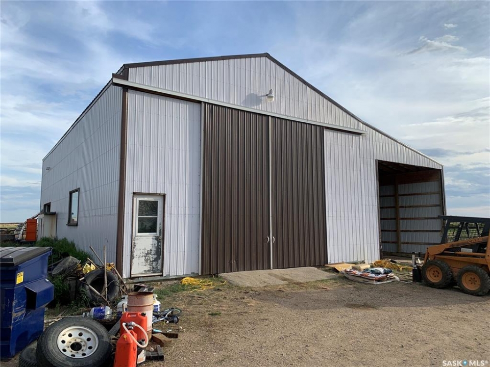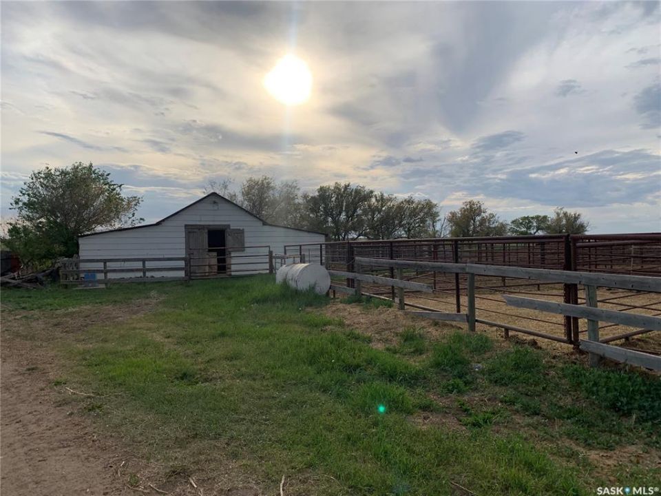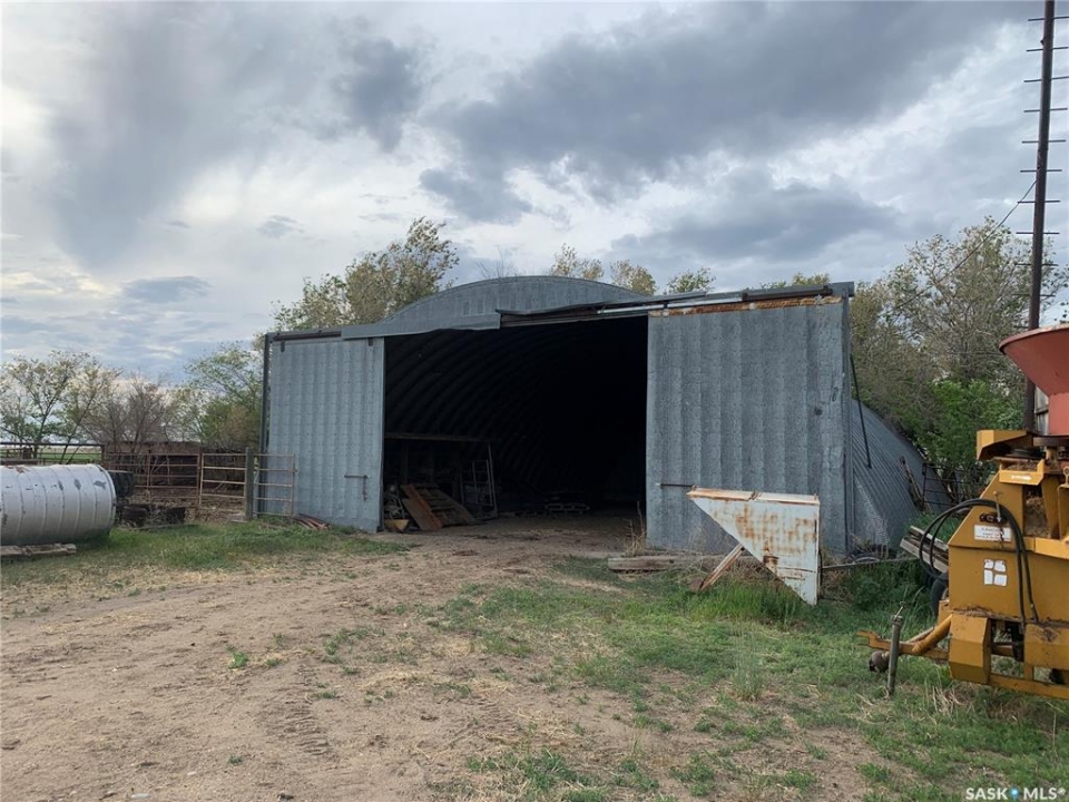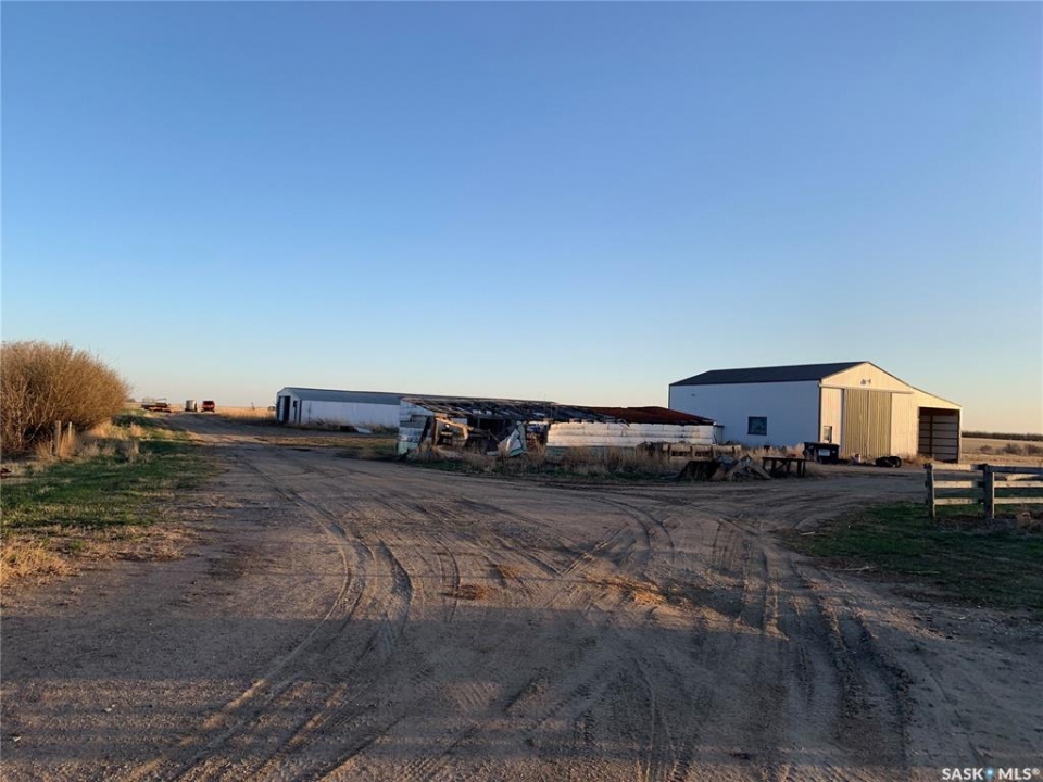 This 50-acre acreage is made up of ~10 acres yard and ~40 acres of adjacent pasture. Yard includes a house (approx 1980 build) w/ a basement, upgrades and additions. Outbuildings include a 3-car detached garage, Quonset, pole barn, calving barn, and heated shop. Heated shop is 30' x 56' x 19' w/ concrete floor, mezzanine, and 16' x 16' overhead door, as well as a 20' x 56' addition on the side of the shop. Quonset is 40' x 60'. Pole barn is 30' x 85'. There is natural gas to the yard, which supplies the house and shop. The house water is supplied by the RM's water line (town water). There is a well supplying water to the animals in the yard. Additionally, there is a dugout. Tankers have been removed. Hopper bins and sea cans not included, but negotiable. Property currently undergoing a subdivision from the adjacent 110 acres grain farmland. Adjacent 110 acres grain farmland (SK019397) also available for sale. Taxes, assessment, and exact acres are to be determined after subdivision