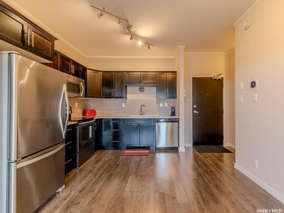 Top floor corner unit with 2 bedrooms, 2 bathrooms, 2 parking stalls and pet friendly living at #302 720 Baltzan Boulevard in Evergreen. This bright and modern condo offers over 850 sq ft with a functional open layout, quartz countertops, fresh paint, and an upgraded Ecobee smart thermostat. The primary suite includes a walk in closet and ensuite, while the second bedroom is served by a nearby full bathroom. Step out onto your private balcony and enjoy a great view over the green space — perfect for your morning coffee or winding down after the day. With one heated underground stall and one surface stall, plus a well managed pet friendly building close to schools, shopping, and amenities, this home blends comfort, convenience, and lifestyle in one great package.