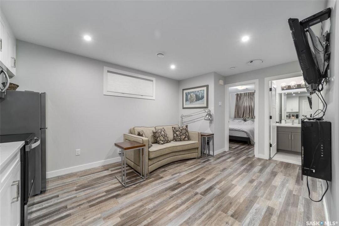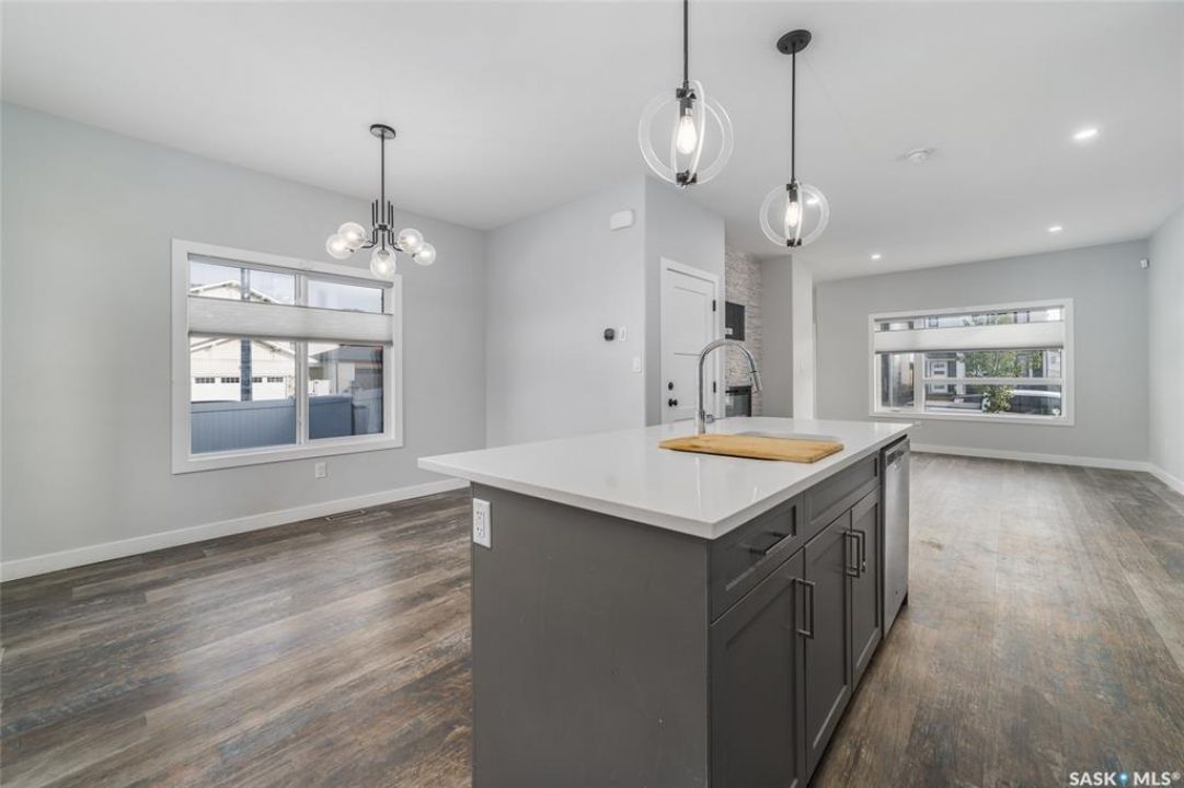 Welcome to 5140 E Simard Ave, located in The Towns in East Regina. This thoughtfully designed property offers the perfect blend of modern living and investment potential, featuring a regulation 1 bedroom suite with separate sidewalk and side entry, a great opportunity to live in style and convenience while generating additional rental income. As you step inside, you are greeted with 9ft ceilings, large windows with top-down bottom-up blinds that allow the natural light to flood in without sacrificing privacy as well as durable luxury vinyl plank flooring that flows through the entire home. The kitchen boasts white cabinetry, quartz countertops, tiles backsplash and stainless steel appliances with induction stove. A 2 piece bath with vanity and a generous size closet for additional storage finish off the main level. Upstairs, the vinyl plank flooring and natural light continue to flow into the primary bedroom with walk-in closet and ensuite that consist of a large double vanity and walk-in showing. 2 more bedroom, a 4 piece bath and laundry room with additional cabinetry and quartz countertops. All bedrooms upstairs come with black out blinds and ceiling fans with remotes. The quartz countertops, white cabinetry and luxury vinyl plank flooring continue to the lower level suite with galley style kitchen, in-suite laundry and air exchanger. The exterior and mechanical upgrades make life easy. Front and back underground sprinklers controlled by Rachio app, Eco bee thermostat. The detached heated and insulated garage, Wi-Fi enabled garage remotes, 100amp panel, 240v, and wired internet. The corner lot not only gives added yard space, but also allows for additional street parking along the side. This neighborhood is known for its abundance of playgrounds, walking paths and green space, close proximity to shopping, groceries, gas and restaurants as well as medical clinics and pharmacies, with everyday convenience just minutes away at Acre 21 and Victoria East amenities.