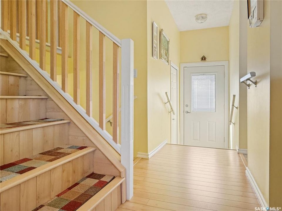 Location Location Location! This 4 bedroom, 2 bathroom home, perfectly situated along a park and walking trails, has been lovingly cared for by the same family for over 30 years, and it shows! Immaculate inside and out, this move-in ready property offers peace of mind with numerous big-ticket upgrades already completed. Step inside to a spacious living room with large windows that fill the home with natural light. Newer laminate flooring flows throughout, creating a clean and modern look. The bright kitchen has been updated with newer cabinetry, providing plenty of storage and functionality. Upstairs you'll find two generous bedrooms with double closets, along with a fully updated 4-piece bathroom. The lower level mirrors the same thoughtful layout, offering two more bedrooms, a beautifully updated 3-piece bath with tiled walk-in shower, and a comfortable rumpus room. The exterior is just as impressive, with a landscaped backyard featuring mature trees, shrubs, a concrete patio for entertaining, and additional rear parking. The fully insulated garage keeps your vehicle protected year-round. Major updates include: newer windows throughout, shingles, high-efficiency furnace, central A/C, underground sprinklers, updated interior and exterior doors, and fresh paint inside and out. This home truly is the full package! Meticulously maintained, full of upgrades, and perfectly suited for a family. Don't miss your chance to make it yours!
