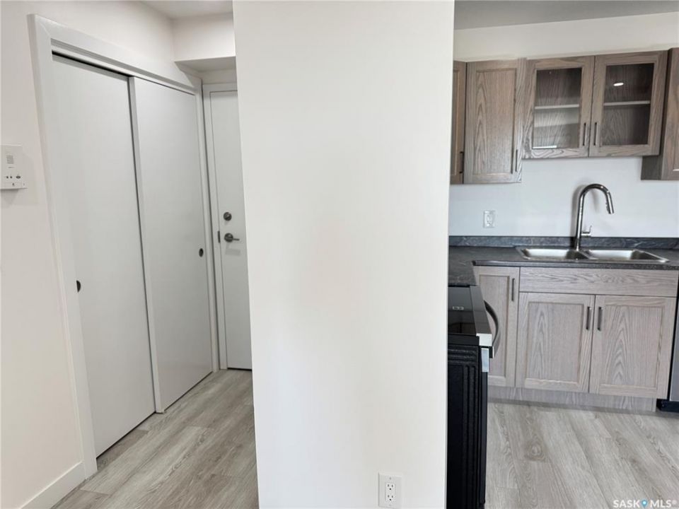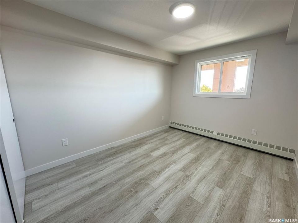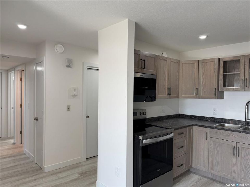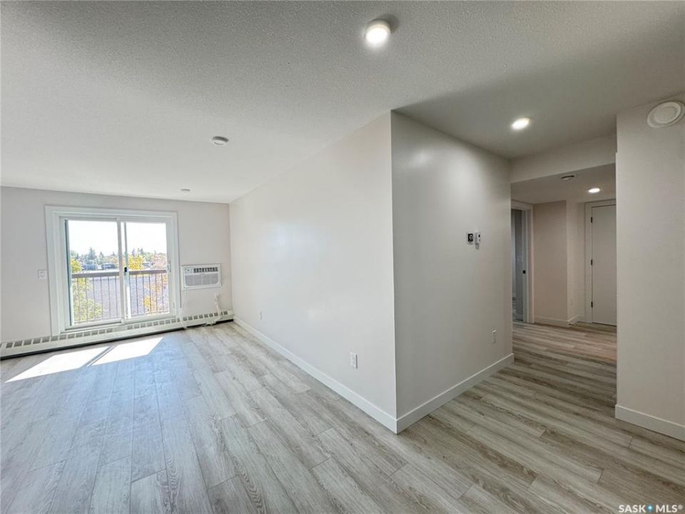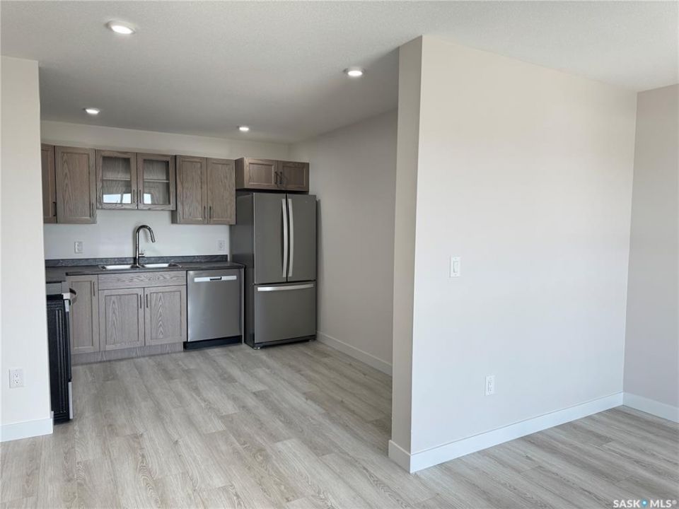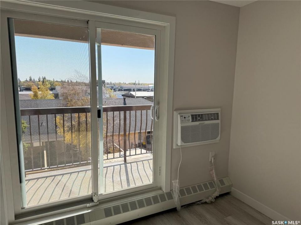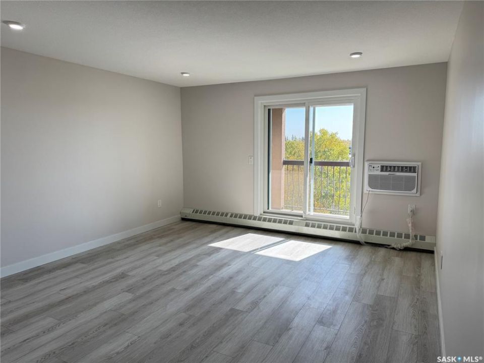 Middle top floor unit #403 facing south with a 29 ft. x 4.5 ft. balcony!! Tasteful choices made throughout this 2 bedroom condo, enhancing the new and spacious rooms, the light colored laminate flows throughout and the kitchen/bathroom/laundry cabinetry accents the unit. Stainless steel kitchen appliances include dishwasher, fridge, stove and microwave hood fan. In-suite laundry with washer & dryer included, along with upper cabinets. Beautiful 4 pc. bathroom. Bedrooms are very spacious. Intercom in each unit to allow guests in and 1 electrified surface parking stall. Parkland Condominiums is downtown living, close to all amenities to enjoy only a short walk away! Buyer to have property taxes verified by the City of Humboldt. Call to view today!