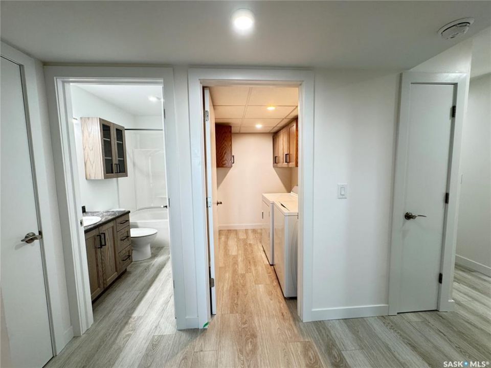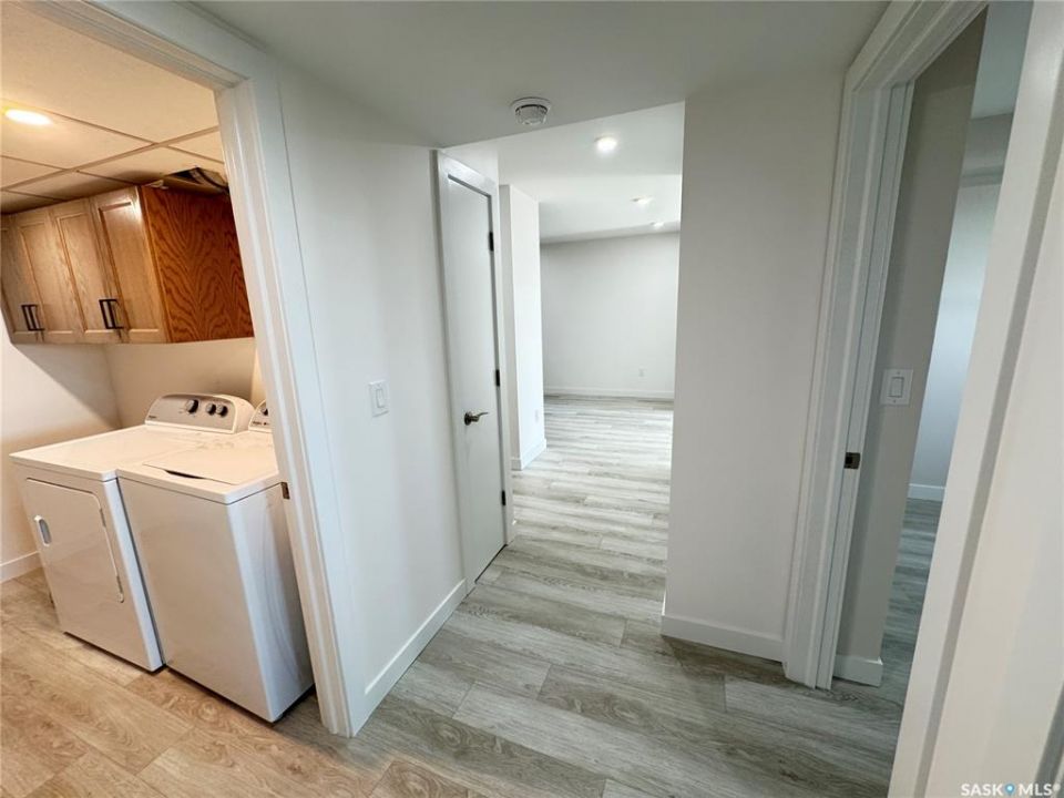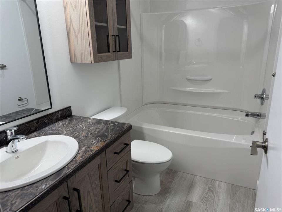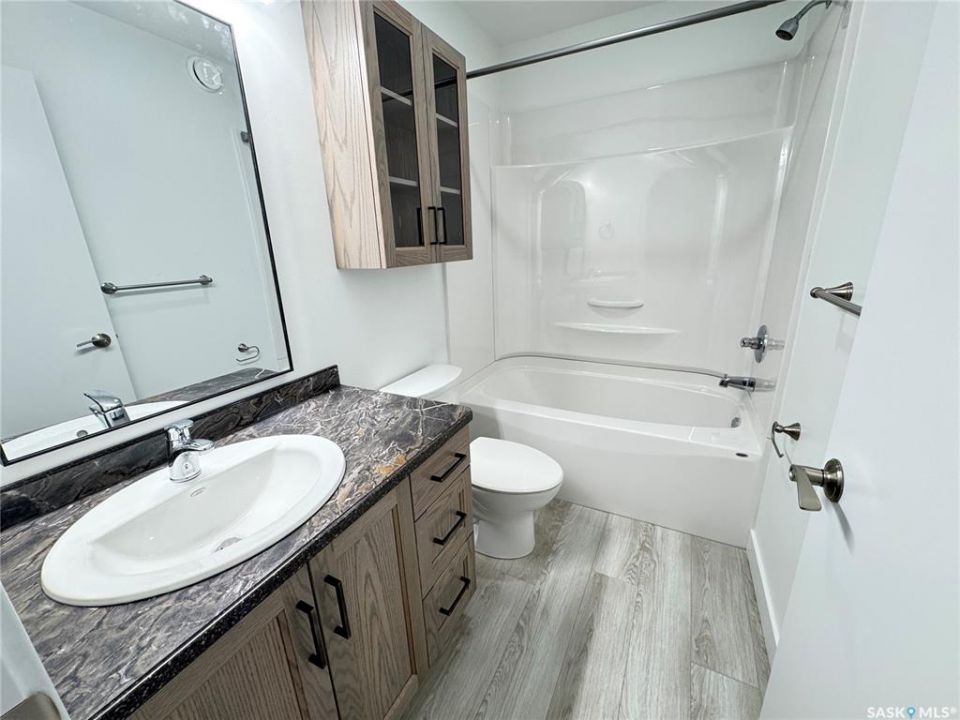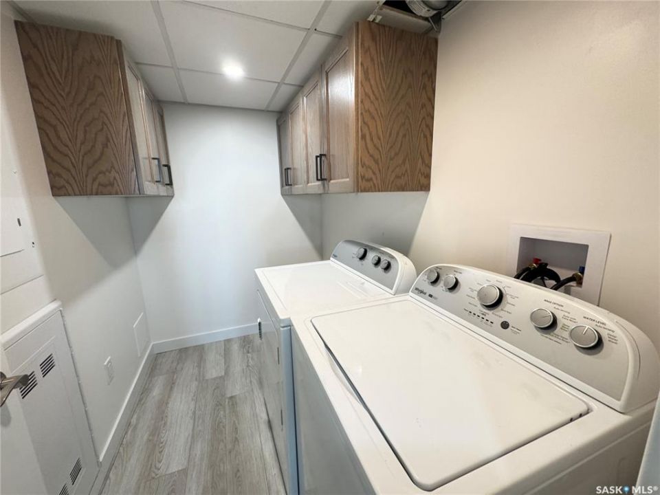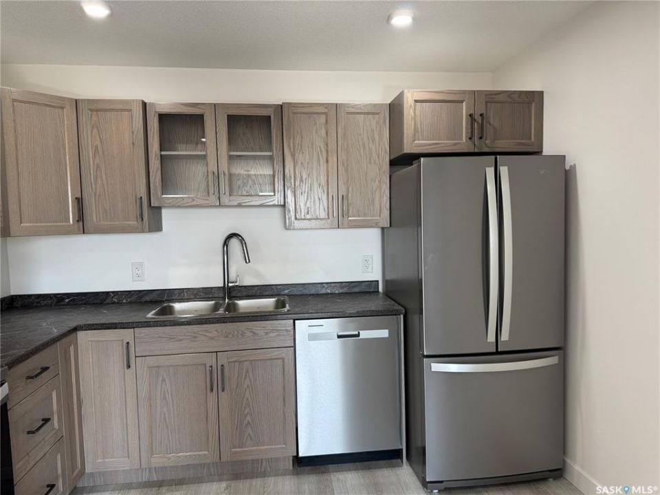 Middle top floor unit #403 facing south with a 29 ft. x 4.5 ft. balcony!! Tasteful choices made throughout this 2 bedroom condo, enhancing the new and spacious rooms, the light colored laminate flows throughout and the kitchen/bathroom/laundry cabinetry accents the unit. Stainless steel kitchen appliances include dishwasher, fridge, stove and microwave hood fan. In-suite laundry with washer & dryer included, along with upper cabinets. Beautiful 4 pc. bathroom. Bedrooms are very spacious. Intercom in each unit to allow guests in and 1 electrified surface parking stall. Parkland Condominiums is downtown living, close to all amenities to enjoy only a short walk away! Buyer to have property taxes verified by the City of Humboldt. Call to view today!