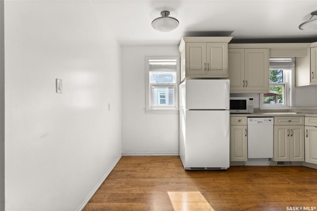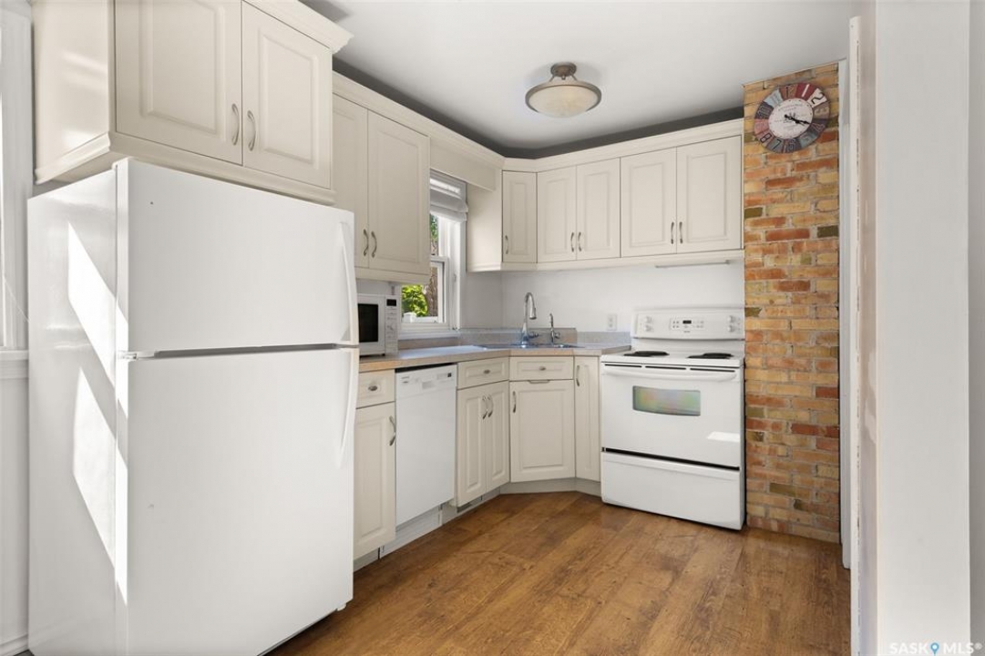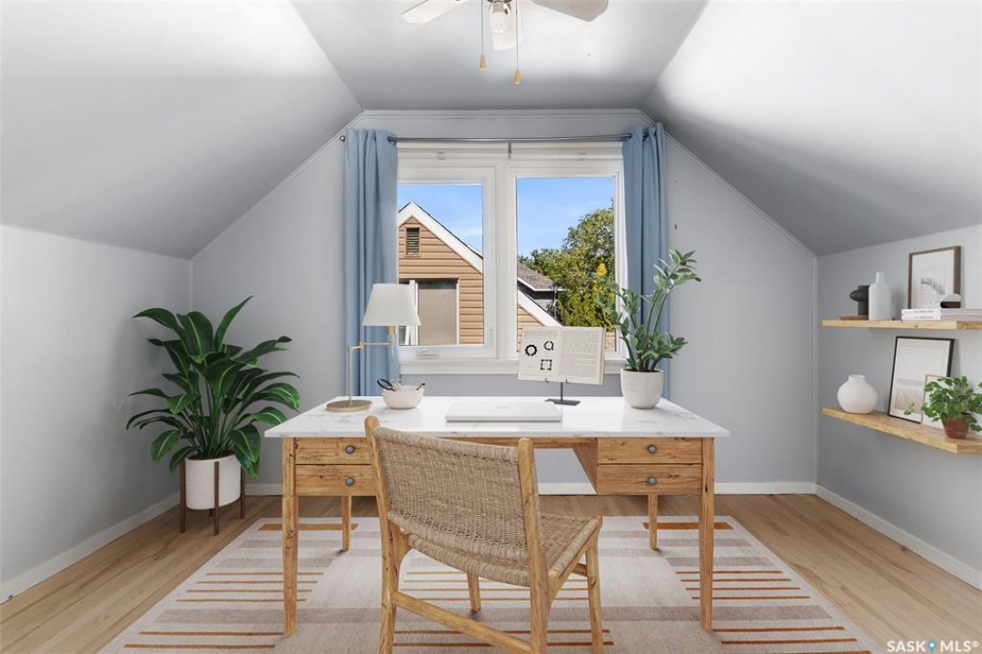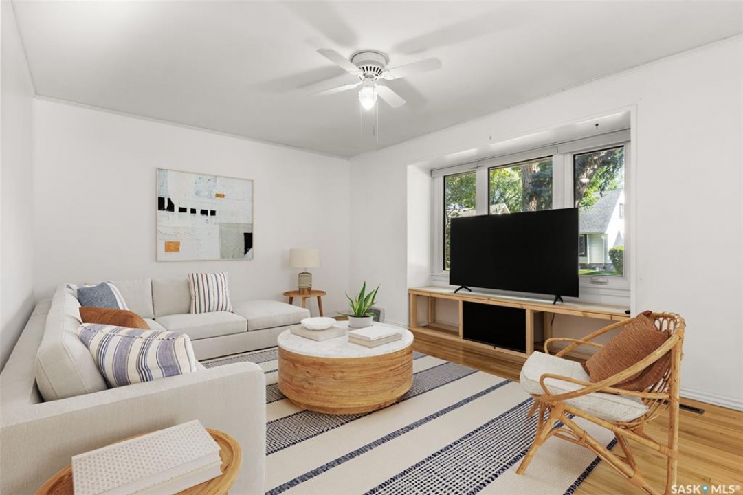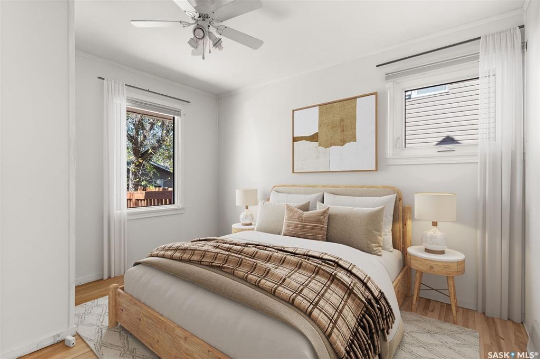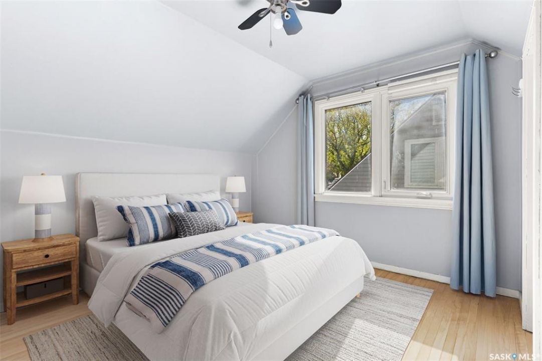 Welcome to 2822 Argyle Street – an incredible opportunity to own a charming home in one of Regina's most desirable neighborhoods for just $299,900! This well-cared-for 1 � story, 939 sq ft home is perfectly situated in the heart of Lakeview, just steps from Kiwanis Park and within walking distance to schools, coffee shops, the library, shopping, bike paths, and more. Homes in this location rarely come available. Full of character and warmth, this home has been loved by only four owners. Inside, you'll find a bright and inviting living room, a remodelled kitchen with built-in dishwasher, a sunlit dining space, and gorgeous hardwood floors throughout. The main floor also features a large bedroom with an oversized window and a full bath. Upstairs, two generous bedrooms showcase rich hardwood flooring, updated windows, and ample closet space. The basement offers a 4th bedroom (windows may not meet egress), plus laundry, utilities, and plenty of storage. The sewer line has also been updated for peace of mind. Sitting on a beautiful lot, the yard is private with mature trees, a large deck, and an oversized single garage with added parking and a paved alley. This home has seen plenty of updates over the years including: central A/C, windows, siding, shingles, bathroom and more—ensuring peace of mind for the next owner. If you've been dreaming of living in Lakeview, this is your chance. At just $299,900, this home combines location, charm, and affordability in one package. Book your private showing today! *Some virtually staged photos.
