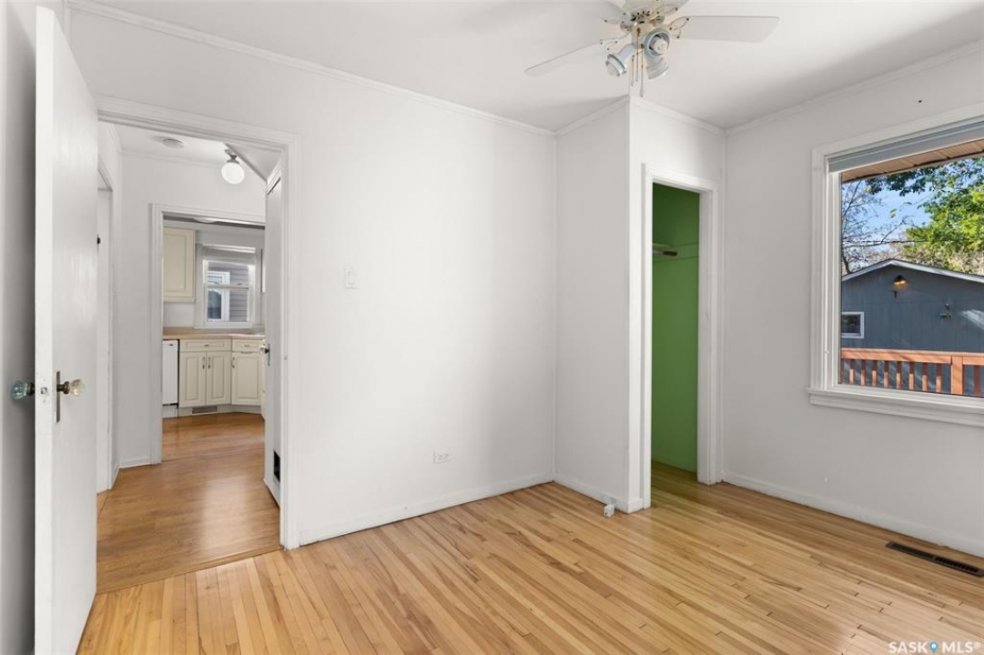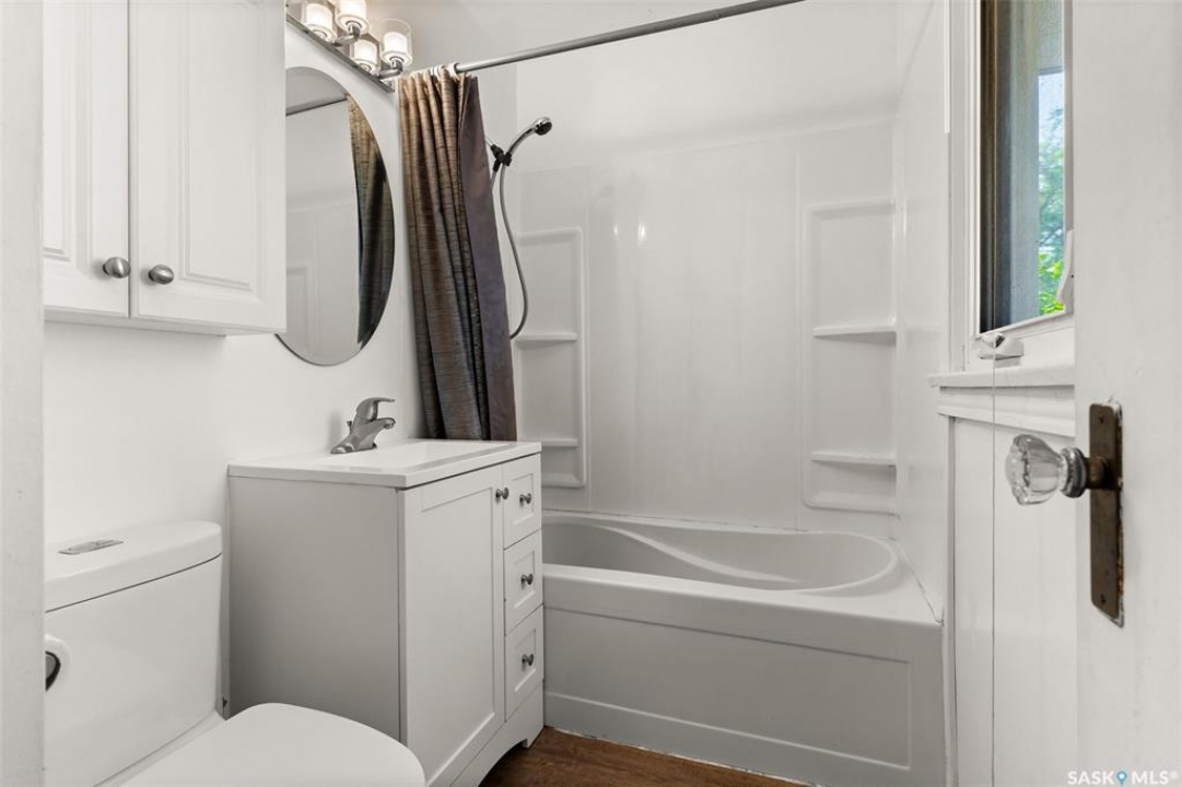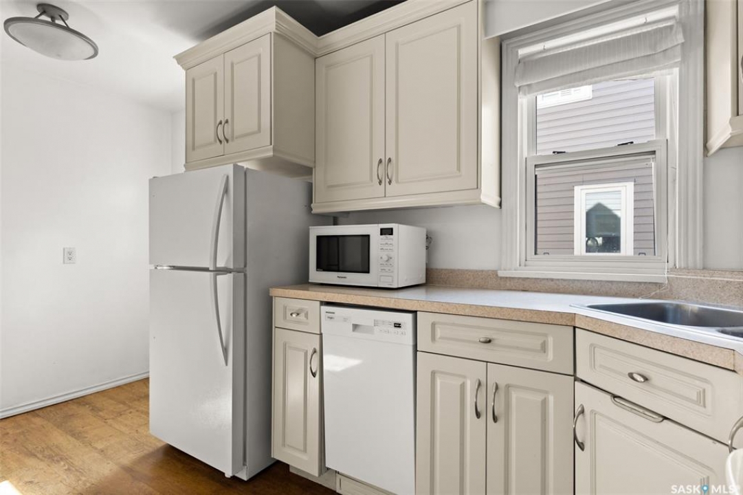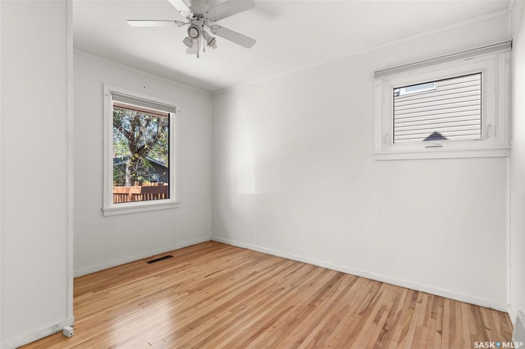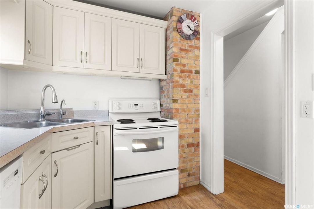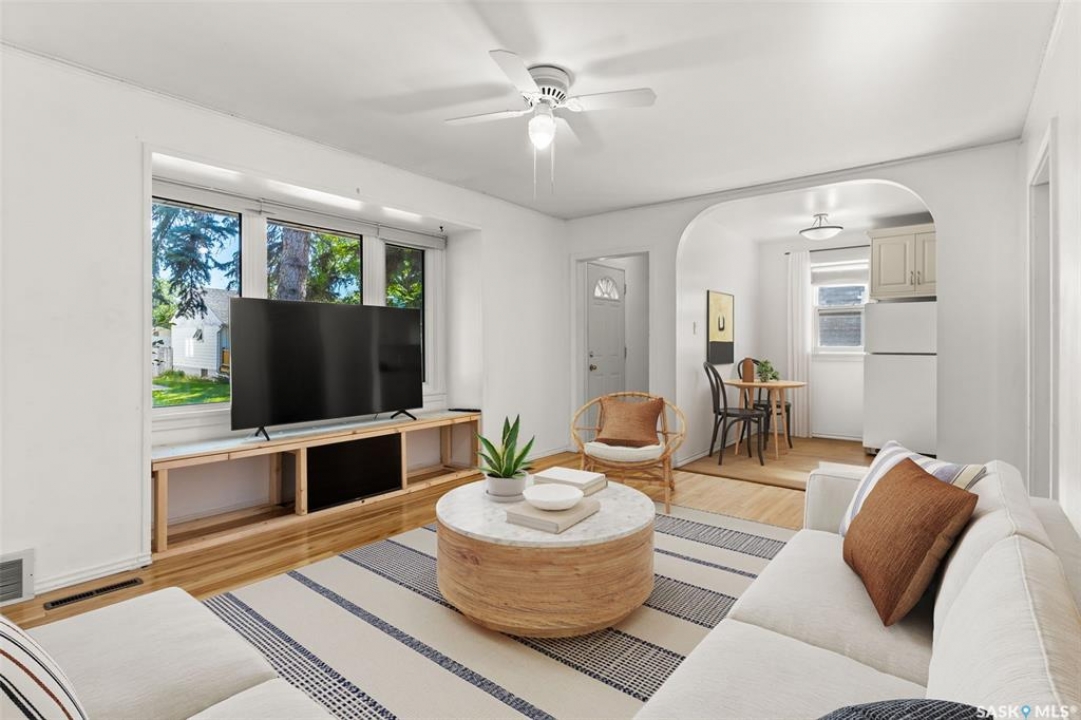 Welcome to 2822 Argyle Street – an incredible opportunity to own a charming home in one of Regina's most desirable neighborhoods for just $299,900! This well-cared-for 1 � story, 939 sq ft home is perfectly situated in the heart of Lakeview, just steps from Kiwanis Park and within walking distance to schools, coffee shops, the library, shopping, bike paths, and more. Homes in this location rarely come available. Full of character and warmth, this home has been loved by only four owners. Inside, you'll find a bright and inviting living room, a remodelled kitchen with built-in dishwasher, a sunlit dining space, and gorgeous hardwood floors throughout. The main floor also features a large bedroom with an oversized window and a full bath. Upstairs, two generous bedrooms showcase rich hardwood flooring, updated windows, and ample closet space. The basement offers a 4th bedroom (windows may not meet egress), plus laundry, utilities, and plenty of storage. The sewer line has also been updated for peace of mind. Sitting on a beautiful lot, the yard is private with mature trees, a large deck, and an oversized single garage with added parking and a paved alley. This home has seen plenty of updates over the years including: central A/C, windows, siding, shingles, bathroom and more—ensuring peace of mind for the next owner. If you've been dreaming of living in Lakeview, this is your chance. At just $299,900, this home combines location, charm, and affordability in one package. Book your private showing today! *Some virtually staged photos.