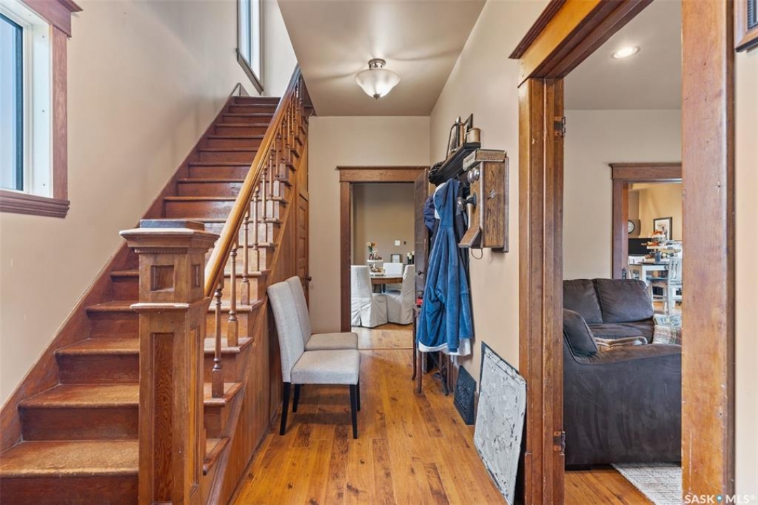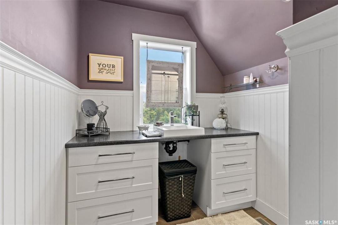 Welcome to this one-of-a-kind Eaton's character home, where classic charm meets modern living on a picturesque 13-acre estate near Lucky Lake. This meticulously restored property invites you into a world of timeless elegance, from the inviting wrap-around deck to the expansive, tree-lined yard that offers complete privacy and tranquillity. Originally relocated to its current location with a brand-new basement in 2007, this home has undergone extensive updates, including newer plumbing, wiring, and windows, ensuring that the historic beauty remains while offering today's modern conveniences. The spacious kitchen, remodelled with maple cabinetry in 2008, is a cook's dream, perfectly designed for creating memorable meals. The main living area, with large windows and 10-foot ceilings, floods with natural light, offering breathtaking views of the countryside. Upstairs, the primary suite is a peaceful retreat, complete with a cozy loft space, ideal for quiet moments or creative pursuits. The fully renovated basement, with 9-foot ceilings, provides ample space for a home gym, family room, or guest quarters. The updates continue with a high-efficiency furnace (2015) and a 2022 on-demand hot water tank for added comfort. Step outside to experience the full beauty of this property. The covered and uncovered portions of the deck are perfect for savouring the peaceful sounds of nature or watching the sunset over the rolling hills. For those dreaming of country living with modern amenities, this acreage is fully fenced for livestock and features both a pond and a dugout. An old barn and woodworking shed add even more character, while the meticulously tended gardens offer endless potential for the green thumb. With natural gas heating, municipal water, and paved access right to the property, convenience is at your fingertips. Schedule your viewing today and experience firsthand the charm, history, and peace that await you at this extraordinary acreage home!