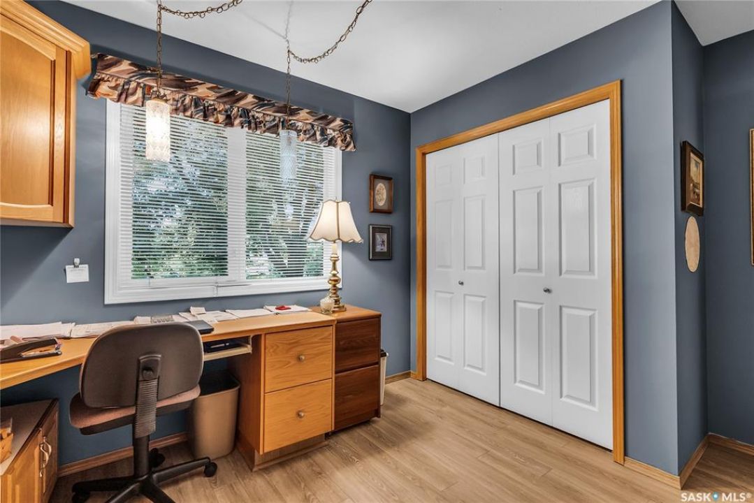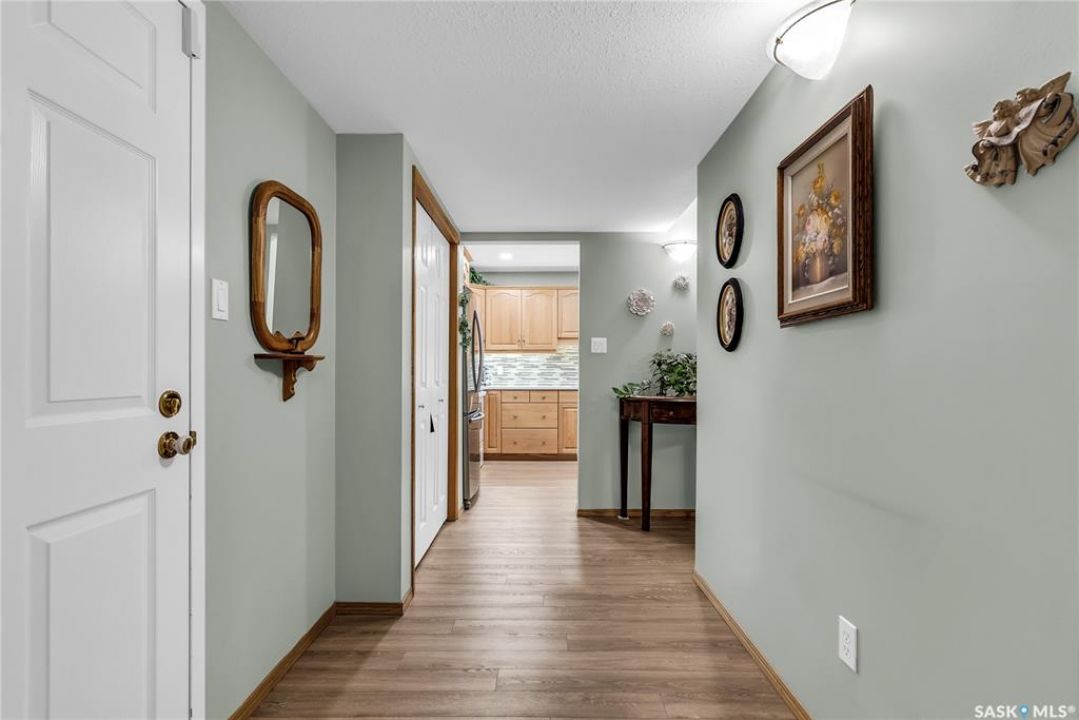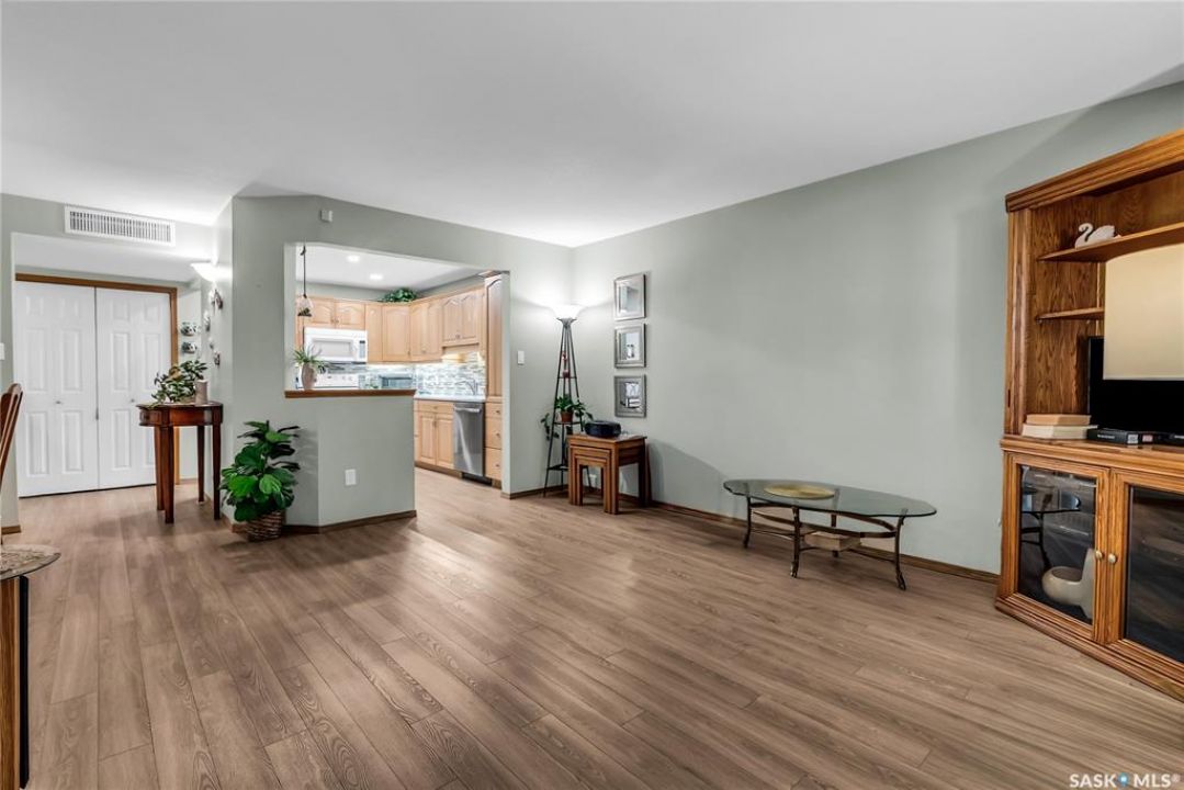 124-305 Pinehouse Dr – Willow Crest Condominiums | Lawson Heights | MLS � Welcome to Willow Crest in Lawson Heights! This bright and spacious 1,139 sq. ft. main floor condo offers a highly desirable layout and prime location just steps from the river, walking trails, shopping, medical services, restaurants, and transit. Featuring a functional eat-in kitchen with oak cabinetry, tile backsplash, recessed lighting, under-cabinet lighting, and four appliances included, this unit is designed for comfortable everyday living. The formal dining area opens to a large living room with a garden door to the private, northeast-facing balcony—a perfect spot to enjoy morning sun and peaceful views. The oversized primary bedroom includes a 3-piece ensuite and walk-in closet. The second bedroom is thoughtfully designed with a built-in Murphy bed and desk, ideal for guests or a home office. Additional features include in-floor heating, central air conditioning, and central vacuum with attachments. Three storage areas are included: one on the balcony, a hallway storage unit (#124), and a secure locker in the parkade (#22). Also included is one underground parking stall (#37). The building offers excellent amenities, including an amenities room with exercise equipment and a pool table, as well as plenty of visitor parking right outside the main entrance.