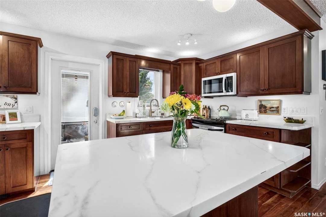 Warm & Welcoming Bi-Level on South Hill — Steps from the New School! This lovely bi-level is perfectly nestled in a quiet South Hill neighborhood — just a short walk from the brand-new joint-use elementary school, making it an ideal spot for families with young kids or anyone who values a great community feel. This home features 3 comfortable bedrooms and 2 bathrooms, with a layout that's both functional and cozy. The main floor features a bright, open living area, a kitchen that offers plenty of cabinet space and a handy island — perfect for meal prep, casual breakfasts, or helping with homework while cooking dinner. Down the hall you will find two bedrooms, and a full 4-piece bath! Downstairs, there's even more room to spread out with a large family room, a great sized bedroom, a convenient half-bath, and tons of space for movie nights, playtime, or guests. Through the garden door in the kitchen, enjoy easy access to your backyard oasis — complete with a deck, patio area, and an awesome kids' play structure! Whether you're entertaining friends or enjoying a quiet evening outside, this space is ready for it all. Finally, the oversized double garage is a real bonus —perfect for hobbies, storage, and keeping the snow off the car come winter!! Don't miss your chance to make this South Hill gem yours!