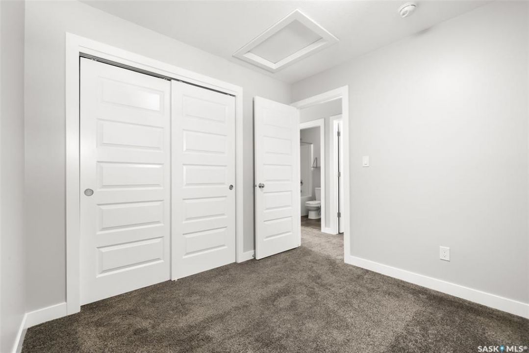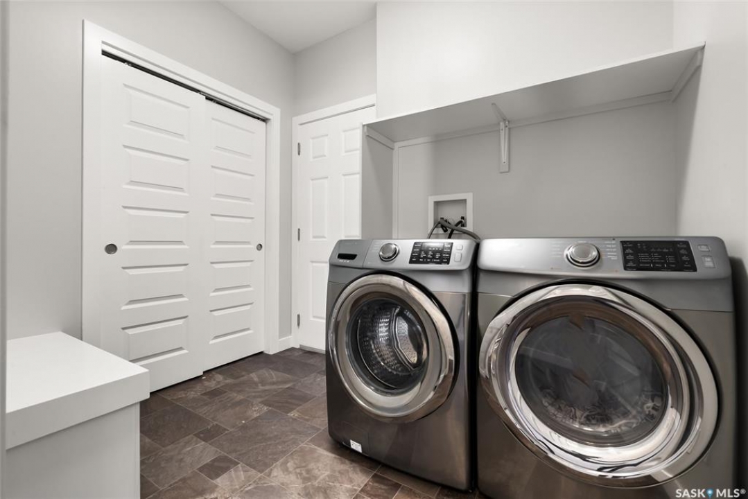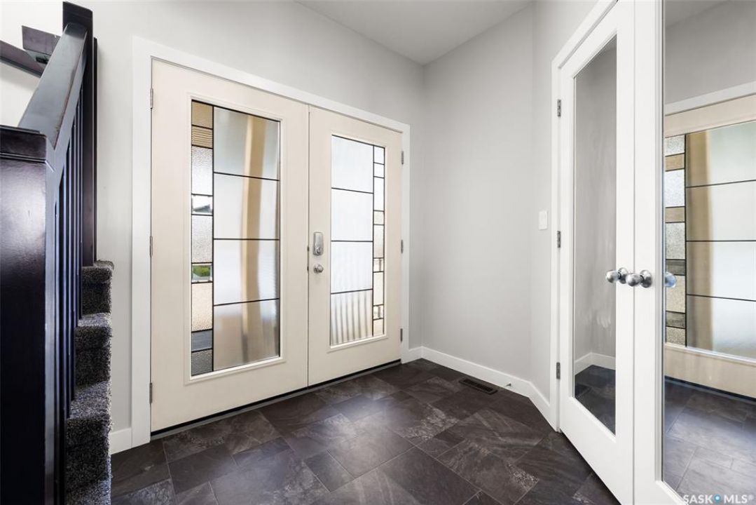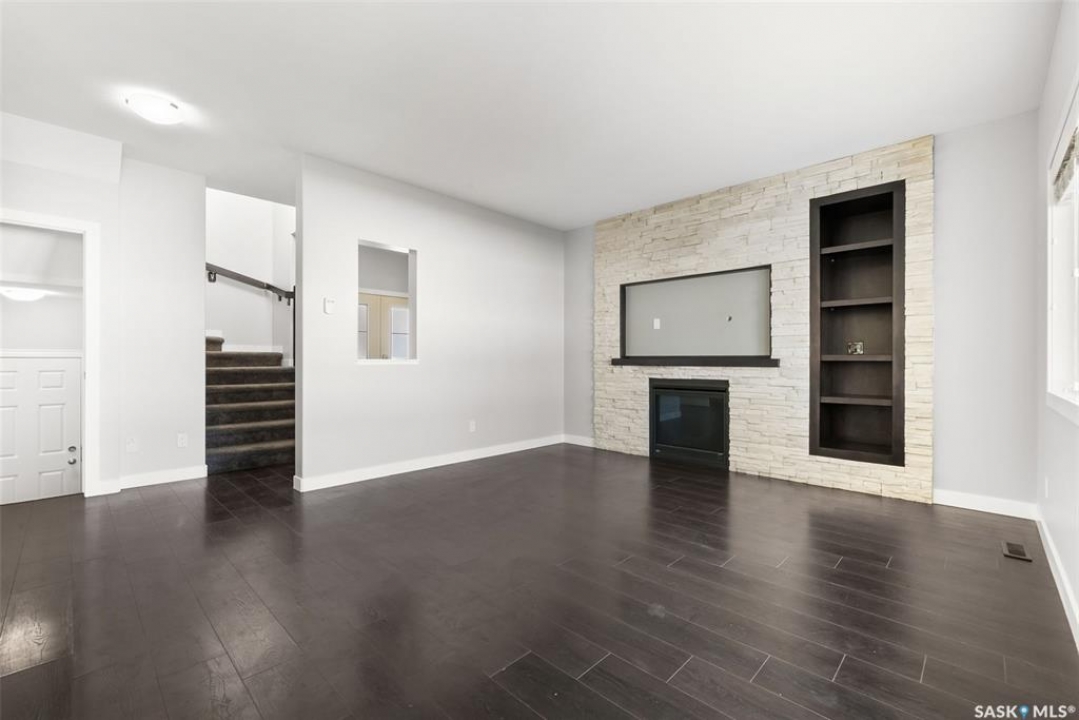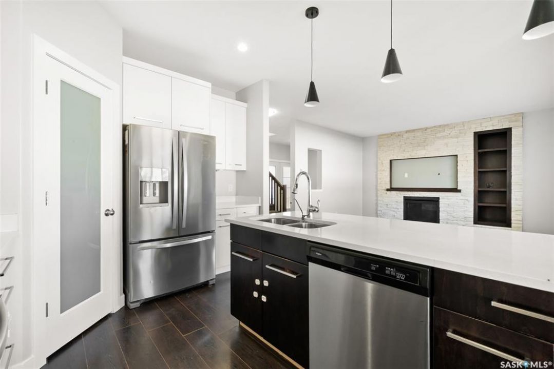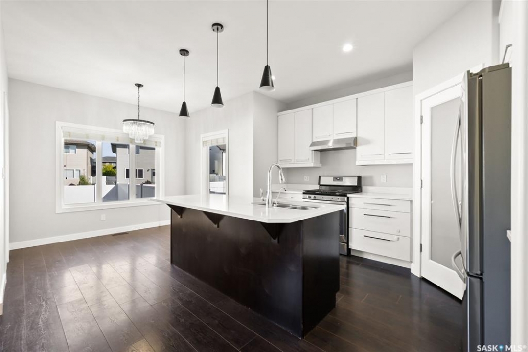 Welcome to 5308 Green Alder Way E, a beautiful 2-storey home located in the highly sought-after neighbourhood of Greens on Gardiner. Built in 2016, this 1,656 sq. ft. property offers modern finishes, a functional layout, and plenty of space for the whole family. The main floor is bright and open, featuring a spacious living room with a striking feature wall and fireplace, perfect for cozy evenings. The sleek kitchen showcases white cabinetry, quartz countertops, stainless steel appliances, a large island with bar seating, and is complimented by a stylish dining area with a modern chandelier and large windows overlooking the backyard. A convenient 2-piece bath and main floor laundry complete this level. Upstairs, you'll find three comfortable bedrooms, including a large primary suite with a walk-in closet and a 5-piece ensuite featuring double sinks, a soaker tub, and a separate shower. Two additional bedrooms and a full 4-piece bath provide plenty of room for family or guests. The fully finished basement offers even more living space with a spacious recreation room, an additional bedroom, office space, and a 4-piece bath—ideal for teenagers, extended family, or a home office setup. Outside, the backyard is fully fenced and landscaped with a patio, deck, and low-maintenance rock accents—ready for you to add your personal touch. The double attached garage provides secure parking and extra storage. Located within walking distance to schools, parks, shopping, and all East Regina amenities, this home combines style, comfort, and convenience. This property is move-in ready and waiting for its next owners. Don't miss your opportunity to live in one of Regina's most desirable communities!