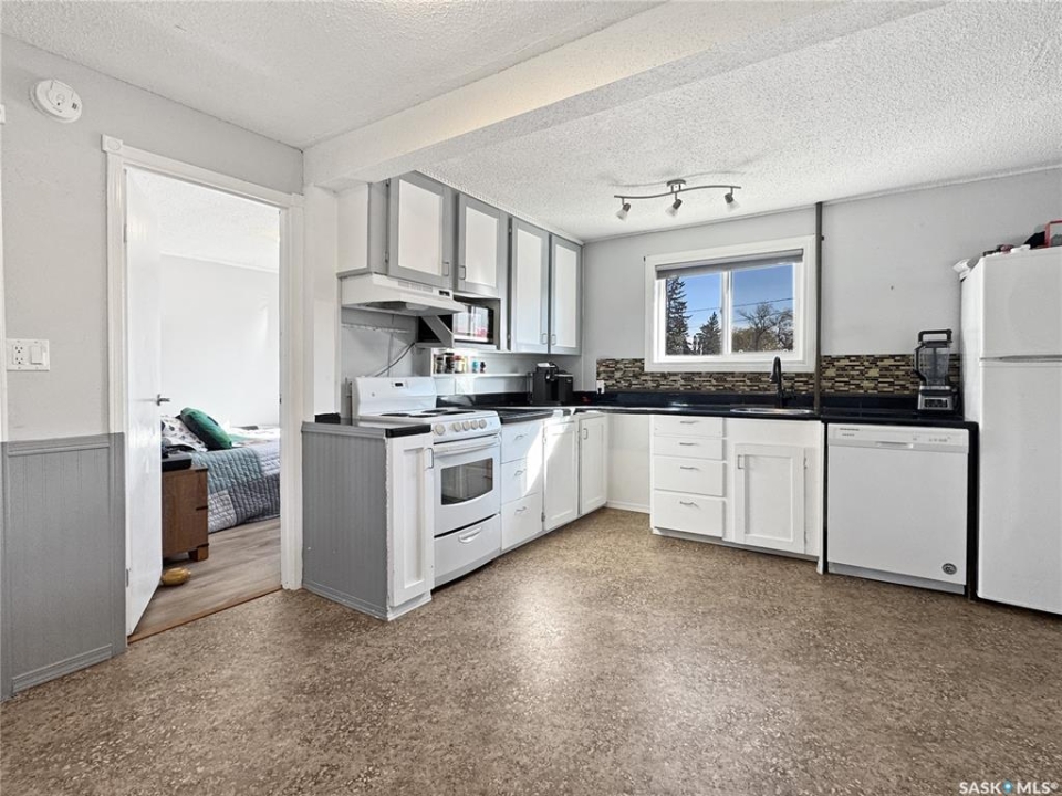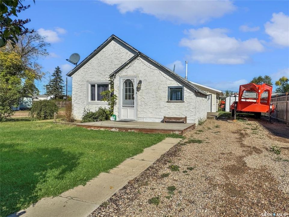 Nestled in a peaceful neighborhood, this adorable two-bedroom, one-bathroom home offers 752 square feet of cozy comfort. The main floor features a bright living area and a stylish kitchen with beautiful white cabinets and modern conveniences that make meal prep a breeze. The bathroom showcases a beautifully tiled tub surround, while the basement, partially finished with a subfloor and roughed-in bathroom, offers endless potential for expansion. Thoughtful updates throughout provide peace of mind, including a completely redone electrical system (2021), plumbing updates, windows (except 1 in porch), renovated porch (2019), renovated master bedroom (2021), and upgraded furnace (2005). The insulated double-car garage, brand-new washer and dryer, and landscaping improvements round out this well-maintained home. Affordable utilities average $80/month for power and $60/month for energy, with water, garbage, sewer, and recycling billed every two months at approximately $200. With its combination of charm, modern updates, and potential, this home is perfect for first-time buyers or anyone seeking a comfortable, move-in-ready property. Schedule your viewing today!