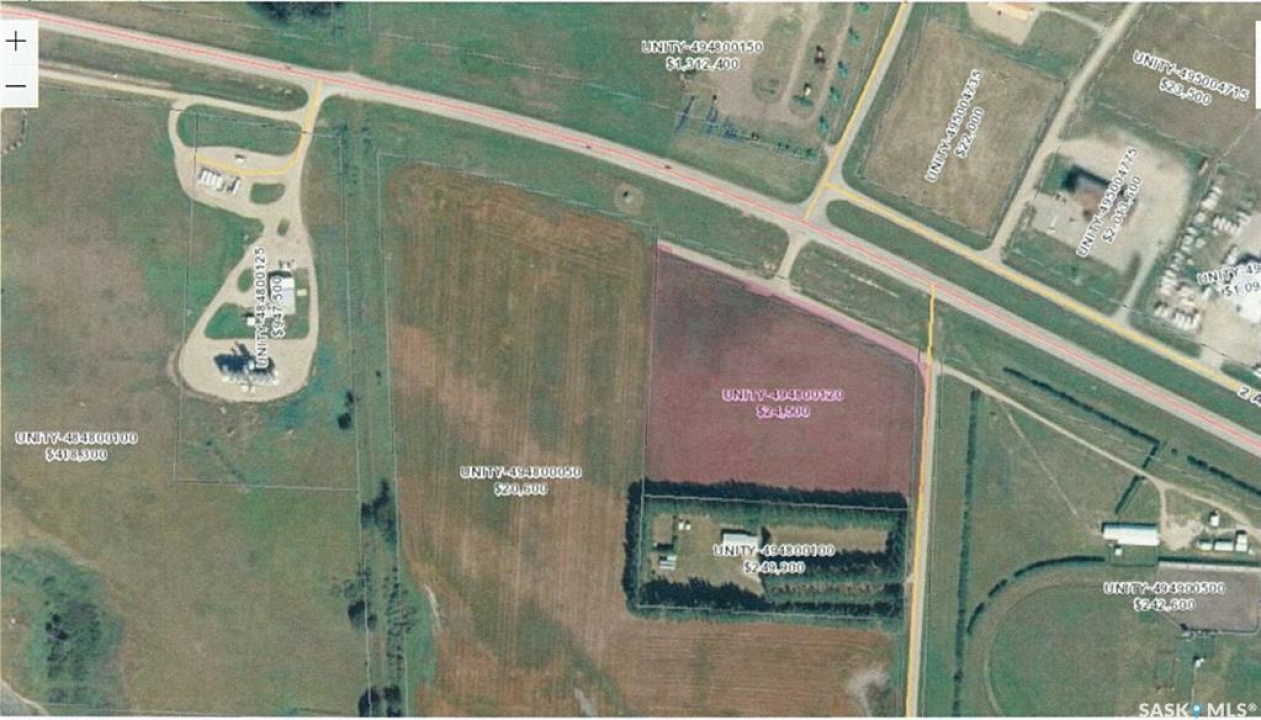 8.84 acre commercial Highway front un-serviced lot located on the South side of Unity at the corner of Hwy 14 and the West entrance Road; location is premium; Unity is a busy and thriving stable community of approximately 2600 people; great location for any type of business!