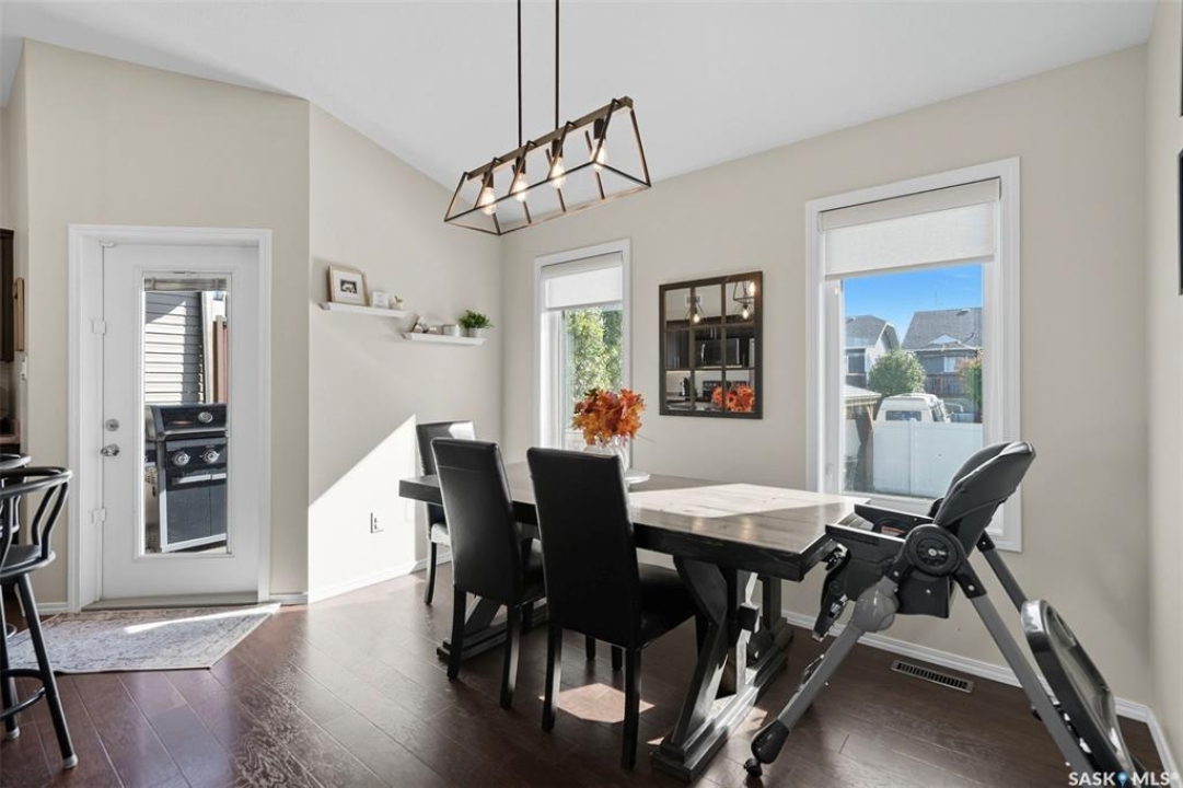 Welcome to this inviting and beautifully maintained 4-bedroom, 3-bathroom raised bungalow offering over 2,200 sq. ft. of finished living space- designed for family living. Updated inside and out, this home is move-in ready and perfect for families or anyone who loves to entertain. The main floor features 3 generously sized bedrooms, including a primary suite with walk-in closet, as well as its own three-piece en-suite bathroom for added privacy and comfort. A beautifully updated main bathroom and the convenience of upstairs laundry make everyday living that much easier. The bright and welcoming living area is highlighted by charming feature walls that add warmth and character, while the kitchen flows seamlessly into the dining space and out to the back deck. With a natural gas BBQ hook-up, it's the perfect spot for family meals and summer gatherings. Downstairs, you'll find a fully finished basement which provides even more space with the perfect hangout spot. Including, a large utility room for ample storage, a spacious and cozy family room, large 4th bedroom, full bathroom completed with an oversized shower and a newly added dry bar that's ideal for entertaining friends or having cozy family movie nights. Outside, the home shines with a fully vinyl fence and landscaped yard- ready for kids and/or pets. The private backyard is an ideal retreat for relaxing or hosting- complete with refreshed landscaping, a refinished deck, a gazebo for shade, and a shed for extra storage. The heated garage provides plenty of storage, as well as year-round convenience and comfort- especially during our cold winters. Updates throughout—including the bathrooms, laundry room, and outdoor spaces—ensure this home completely move-in ready. This home blends comfort, style, and functionality in a family-friendly neighbourhood and is walking distance to all amenities including the Golf Course. This is the kind of home where family memories are made- don't miss the chance to make it yours!