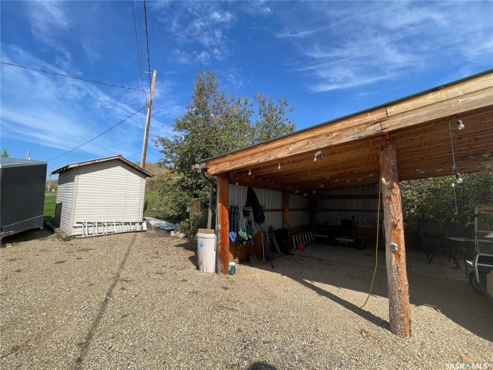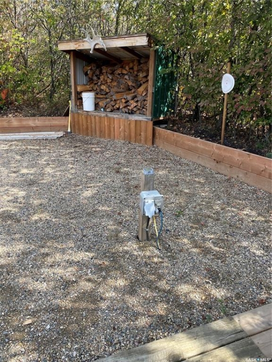 This lot is approx 0.43 acres ( as shown on land-titles ) and is located at Crooked Lake,Sk. It has its own power meter ( and break box / panel) installed. On this lot now is a camper with a deck area / fire pit and a large covered sitting area, plus a shed and a huge garden space. There is numerous amount of trees / shrubs and lots of storage space still.