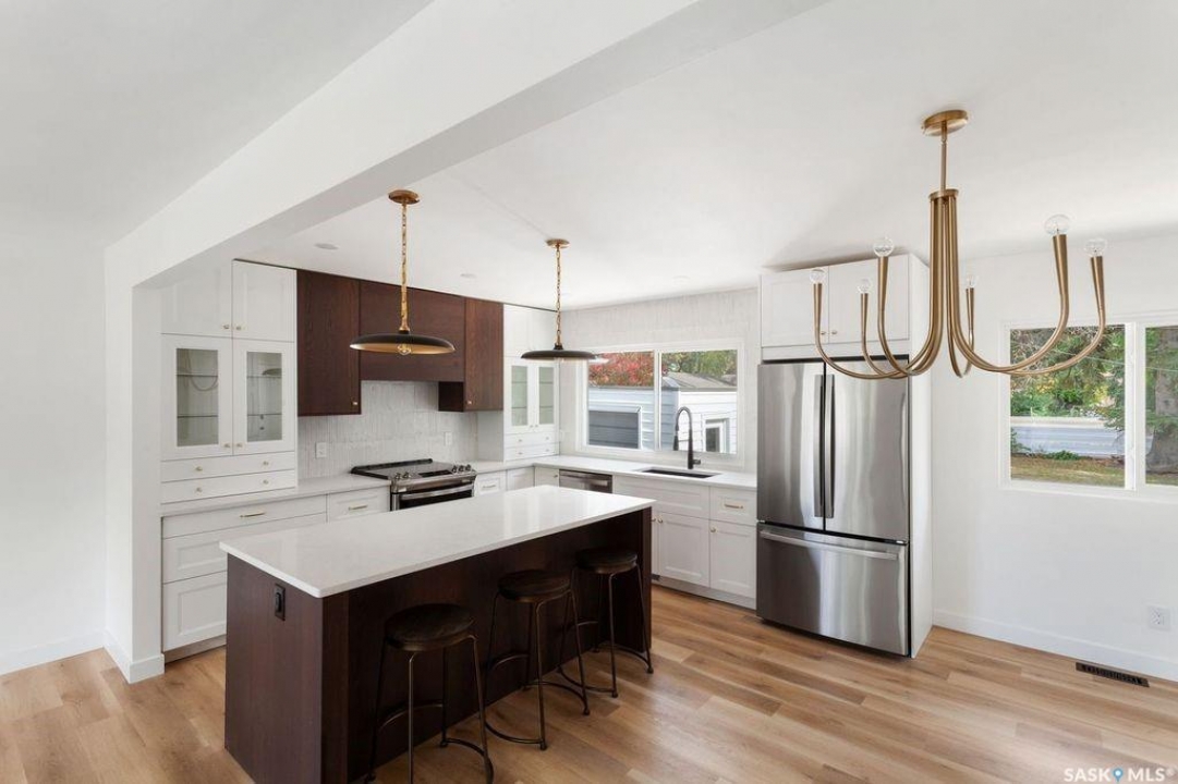 Beautifully renovated home with mortgage help. This 1138 square foot bungalow has gone thru a major update. The living room, dining room, and kitchen have been opened up to create a bright and roomy feel. New kitchen cabinets, counter tops, lighting, windows, and stainless steel appliances bring this space to a modern sophisticated look. There are 3 bedrooms upstairs and a fully remodeled 4 piece bath complete with his and her sinks. The lower level has a new permitted 3 bedroom suite. A sleek kitchen with peninsula eating bar and full appliance package, open up to a spacious family room. Beautiful 3 piece bath. This is all located on a large lot with a single car garage and mature trees. Holliston neighborhood is centrally located close to schools, shopping, parks, and the University of Saskatchewan.