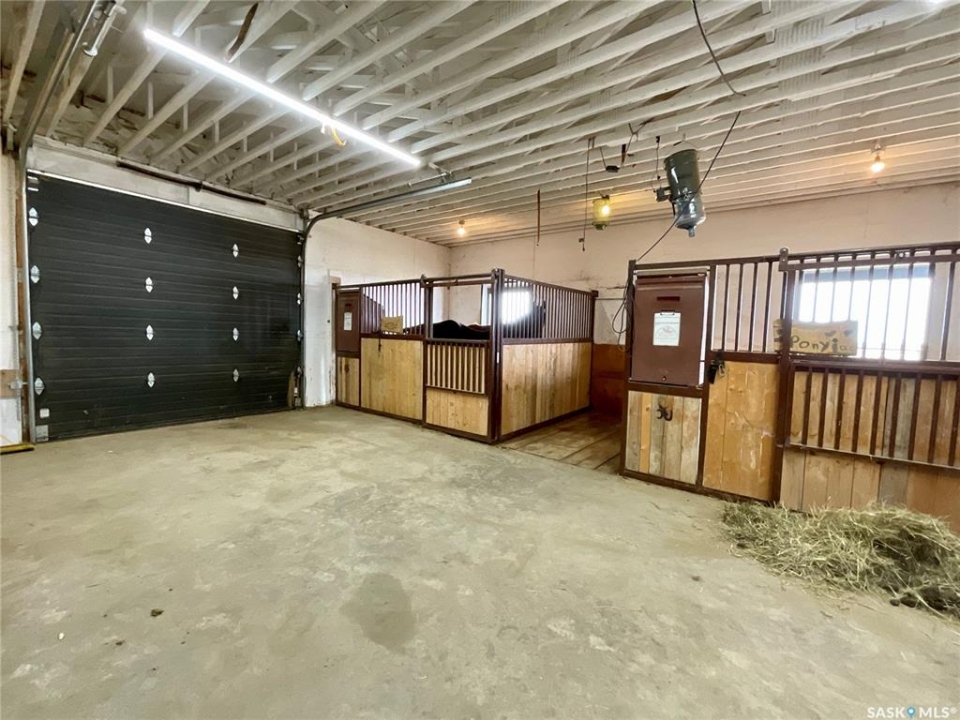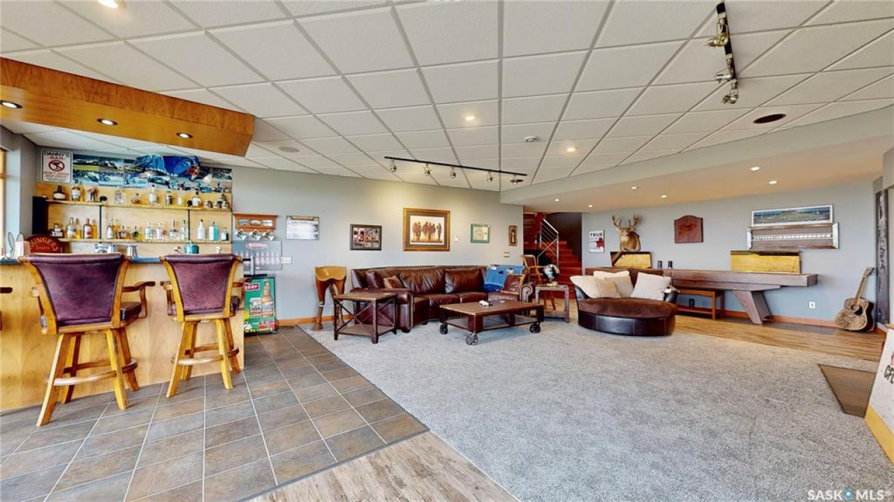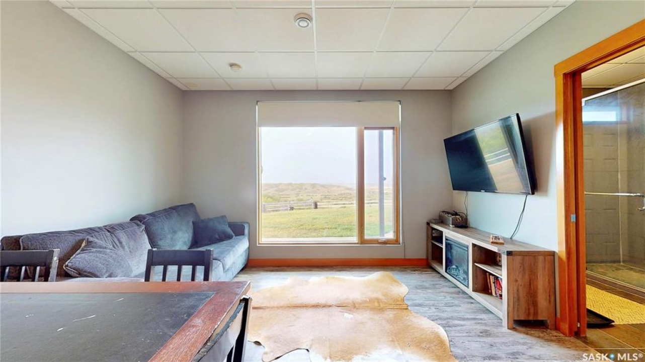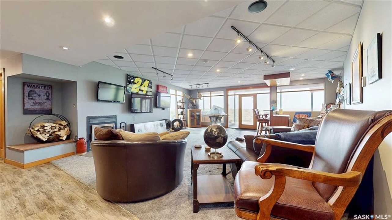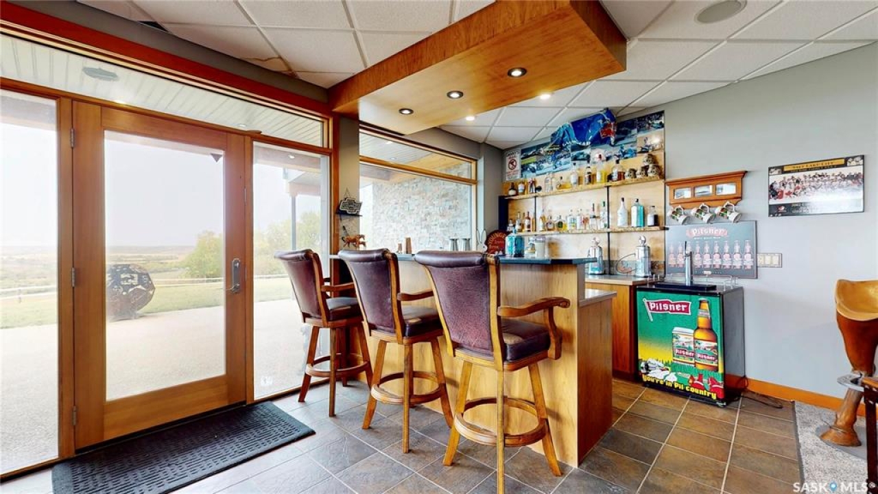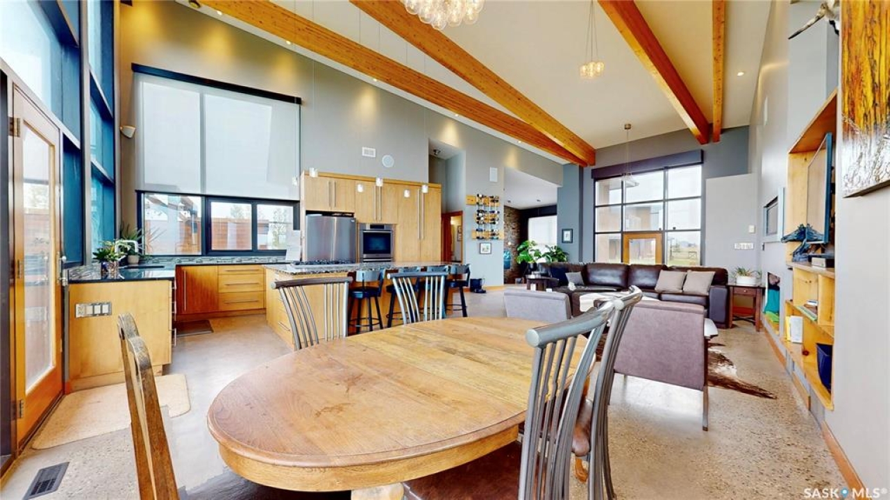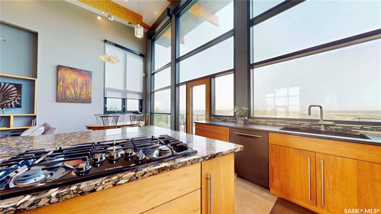 Experience 40 Apollo Drive in the Acreages at Minerva Ridge near Lumsden Sask. From the powered gate and lit lane this 5 bedroom ,5 bath home offers 3982 sq. ft. on the main plus a full walkout level, including a private entrance suite for extended family or caregiver. Floor-to-ceiling curtain wall windows showcase the Wascana and Qu'Appelle valleys. filling the home with light. Built for comfort and efficiency, the home features zoned in-floor hydronic heating, hight-efficiency boiler, gas furnace with A/C backup,sprayfoam insulation, EIFS stucco, triple-pane argon windows, and a 12.6 kw Solar system powering both house and barn-keeping costs near net zero. The kitchen includes a built-in gas cooktop,doublewall oven, drawer microwave, fridge, dishwasher, and butler's pantry with upright freezer and extra fridge. A mudroom with built-ins sits just off the garage. Technology upgrades include RA2 automation for blinds, lights, climate and locks, whole-home audio, five video screens, Ring security, and 8 camera CCTV system and permanent holiday lights. The lower level adds a wet bar, games area, and gym with overhead door for fresh air workouts. Outside, enjoy a covered patio with built -in barbeque,8 person hot tub, and heater. A heated 1,080sq.ft. garage and 35x70 insulated barn/shop provide storage, stalls, tack room, hay loft, and heated workshop. Equine features include a outdoor lit riding arena, two fenced pastures with solar fencing and automatic water systems. Extras include a reinforced secure room,200-amp service, water softener and custom cold storage. Lumsden's schools and amenities are minutes away, with Regina only a 15 minute drive. Purchasers also have first right of refusal on the adjoining 3 Acre parcel