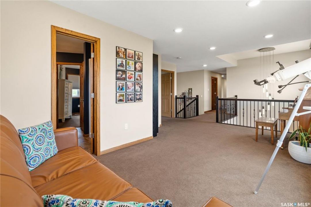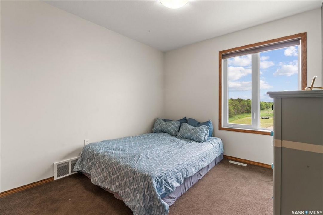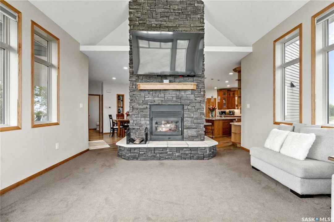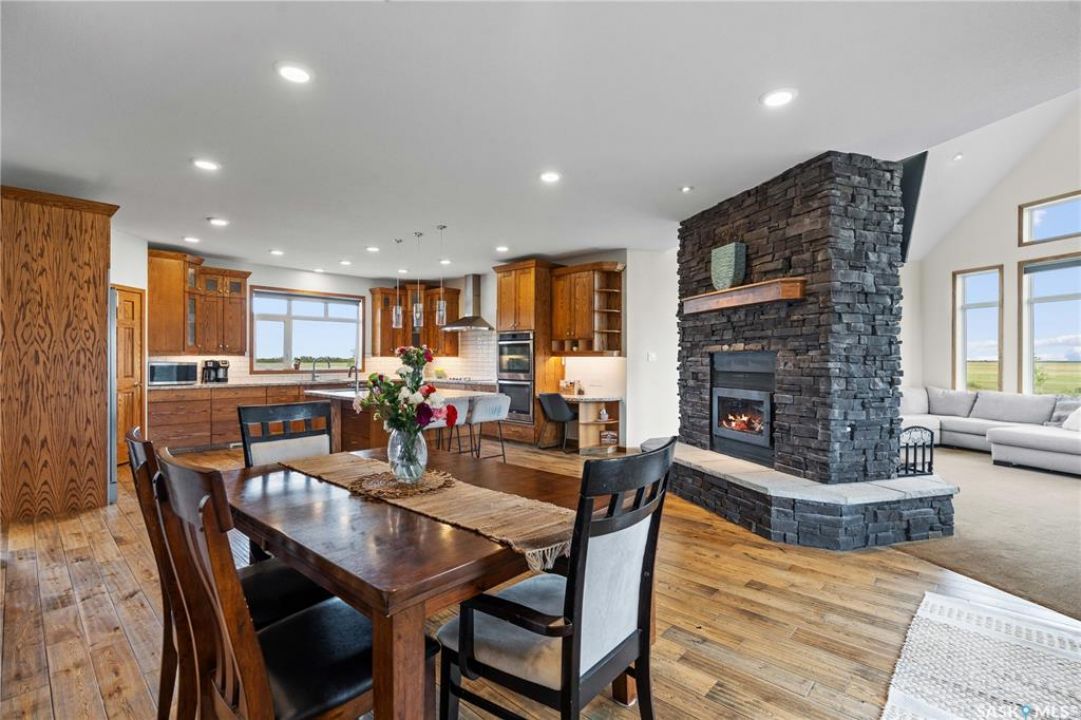 Welcome to your dream acreage! This gorgeous property offers 19.94 acres of meticulously maintained land. Whether you're looking for space, privacy, or a blend of agricultural and residential potential, this has it all. Step into the large, tiled front entry and feel right at home. Main floor showcases a spacious living room with massive windows and a striking stone fireplace, a formal dining area with rich hardwood floors, and a truly impressive kitchen. Designed for entertaining and family living, the kitchen features a large island with a second sink, stainless steel appliances, wall oven, tile backsplash, and abundant cabinetry. A convenient 2-piece bathroom also on the main level. Upstairs, double doors lead into the primary bedroom with a 3-piece ensuite featuring a stand-up shower, lots of counter space, and ample storage. You'll also find 5 more bedrooms, a 4-piece bathroom, a bonus room, a dedicated office, and laundry—all thoughtfully placed on the upper floor for comfort and functionality. The finished basement offers even more living space with a cozy family room, a recreation room currently used as a home gym, an additional 3-piece bathroom, utility room, 9 ft ceilings throughout and luxurious in-floor heating. The heated, insulated double attached garage also features in-floor heat—ideal for year-round use. There are two furnaces for the upstairs and main floor separately. A reverse osmosis system is included for the house tap. Iron filter/water softener system is in use. Property is professionally landscaped and offers an abundance of space for outdoor storage, gardening, or future development. Majority of open acres are currently rented to a local farmer. Beautifully treed backyard with the property line that extends beyond the trees. Bus comes to the front door to the wonderful K-12 school in Imperial! Land is located across from crown land/national wildlife refuge! If thinking of moving the home, sellers have the costs for that so please inquire.