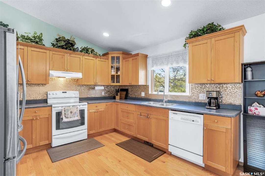 Welcome to 4 Willow Place in the quiet community of Hepburn. This fully developed home was built in 1999 and offers 1200 sq.ft. on main level consisting of 3 bedrooms, 3 pce ensuite off Master bedroom plus two other bedrooms on main. The lower level offers a very spacious family room plus there are an additional two bedrooms in the lower level as well as a 3 piece bathroom. The double attached garage is 22 x 22 and offers a paved driveway. The yard is quite large and well treed with spruce trees across the back and there is a storage shed included. Additionally the fridge, stove and dishwasher is included plus there is a garburator. If you are seeking a more affordable home in a quiet community, be sure to reach out to your agent to view.