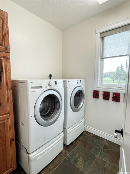 Welcome to 24 Bridger Drive! This home is sure to impress with its amazing golf course view. Open concept design with hickory hardwood and slate flooring throughout. Large primary bedroom with 3 pc ensuite and walk-in closet. There is a large room currently being used as a home office that has access to south deck and backyard. Walk-in pantry, main floor laundry and another bedroom complete the main floor. Lower level is spacious offering a large family room and games area-perfect for the kids. Wet bar is perfect for the adults! 2 large bedrooms a full bathroom, utility room and great storage room. Flooring and fresh paint in 2022. Basement, ensuite , and garage have in-floor heating and will keep you and your family toasty during the winter months. Additional features include central air conditioning, central vacuum, surround sound, underground sprinklers and natural gas BBQ hookup. Triple car garage measures 36'x26' with overhead access to the backyard for boat/rv storage. If you are looking for an executive style home in a great area please don't hesitate on this one!