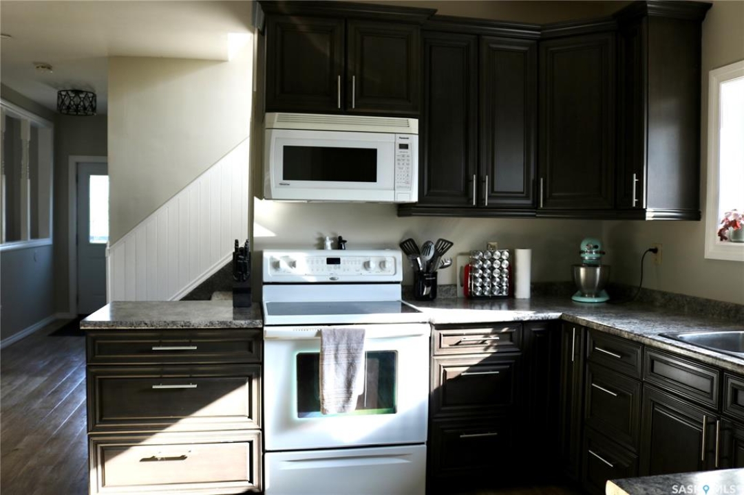 This acreage defines home sweet home! It's a quiet retreat where you can get away from it all, but still be just a couple minutes from everything you need. Located 1 mile north of Moosomin on the newly paved #8 highway and just a short drive down the lane. The 1923 home was relocated here in 1980 onto a new concrete foundation. Extensive renovations were done, including updated electrical. Then in 2017/2018 it was modernized to its current state. Windows, flooring, kitchen, bathrooms, furnace, water heater, central air, vinyl siding and metal shingles just to name a few. The home is incredibly bright with beautiful, big windows. Come in the back door to the large porch with a closet and handy 2 pc bath. Next is the kitchen with beautiful cabinetry and lots of counter space. The open concept feel flows into the dining room and living room. There is a great home office space with hardwood floor and access out the front door to a composite deck, offering the ultimate privacy to sit and enjoy your morning coffee. Up the stairs to three great sized bedrooms. The 4 piece bath is accessible from the hallway or directly from the primary bedroom. The large laundry room is so convenient on this floor. A cute nook is at the bottom of the stairs to the third floor, the finished attic. The attic is any teenager's dream, offering lots of space to hang out, and a 3 pc bath as well. The basement is partially finished with a huge family room, and another 2 pc bath. Outside, you'll love the private yard with your own forest of mature trees. Wildlife is often seen in the yard. A single detached garage with power and RV outlets is just west of the house. Your dream space just might be the 40 x 60 heated shop. Framed for an overhead door, but was used previously as a home business space. With its modern updates and amazing location, be sure to contact your agent to check it out!