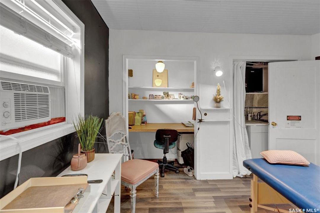 Excellent Commercial zoned building for sale in Montmartre, SK with great street frontage. Start or move your small business where there are 5 private rooms, 4 with interior entries off main entrance hall and 1 with exterior entry. Potential for $2000.00 to $2500.00 total monthly revenue. Currently there are 2 existing leases in place until the end of 2025, one as Hair Salon and one as Retail. Vendor operates a Remedial Massage Therapy business in 'Room 1' and requires a 3yr Lease-back from purchaser. Plumbing for sinks in 3 rooms, one common bathroom, laundry room/storage room with washer/dryer included also houses the furnace and water heater. Coffee bar in hallway. There is a 27' x 30' Detached Garage used for storage, note; one overhead door is not operational. Building on crawl space with access in laundry/mechanical room. Metal roof on both house and garage. Call for further details or to arrange viewing.