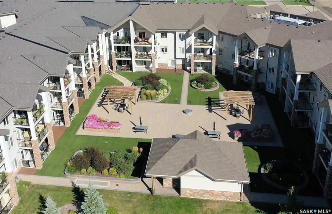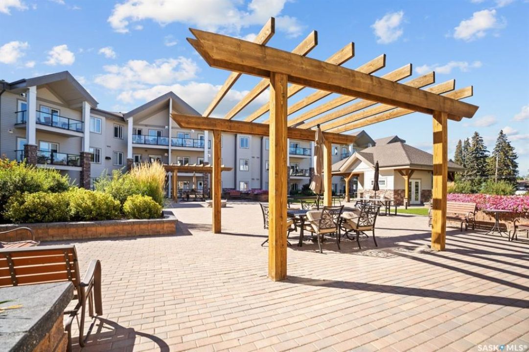 Welcome to 313 Churchill Gardens — the most desirable unit in Saskatoon's most sought-after condominium community. This bright and beautifully maintained home offers the perfect retirement lifestyle, combining comfort, convenience, and community. Located on the third floor with prime access to the elevator and just steps from the multi-purpose room, this spacious one-bedroom plus large den, two-bathroom condo features a thoughtful layout that feels both functional and inviting. The open kitchen and dining area are ideal for everyday living and entertaining, while the living room extends onto a private deck that opens directly onto the peaceful interior garden courtyard — a rare and highly valued feature. The primary bedroom includes a walk-thru closet and ensuite bath, complemented by a second full bathroom for guests. A heated underground parking stall is also included for year-round comfort. Churchill Gardens is known as one of Saskatoon's best-managed and most welcoming condominium communities. Residents enjoy a games room, fitness and wellness spaces, beautifully landscaped gardens, and inviting social areas designed for connection and relaxation. The building is quiet, secure, and truly maintenance-free, offering peace of mind and a sense of belonging. Perfectly situated, the location offers easy access to 8th Street, Circle Drive, shopping, dining, and medical services, making everyday errands simple and stress-free. Whether you're moving in off the farm or downsizing from a house in Saskatoon, this home is designed for those ready to enjoy a vibrant, maintenance-free lifestyle. Churchill Gardens is Saskatoon's hidden gem — and this is your rare opportunity to own its best unit.