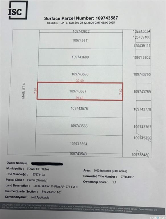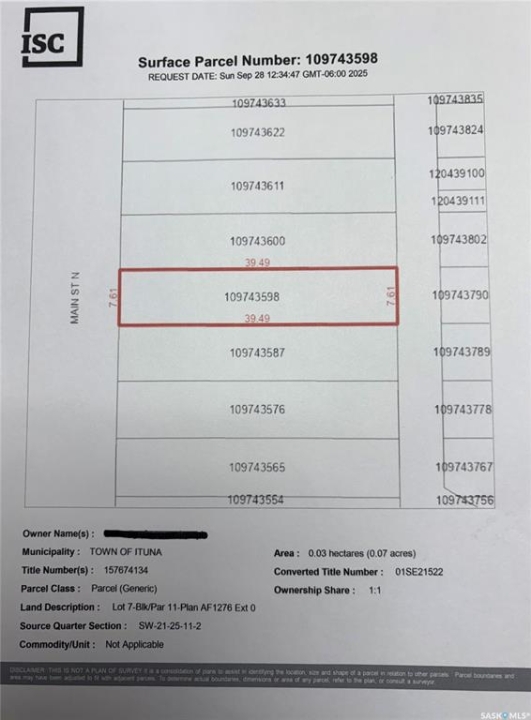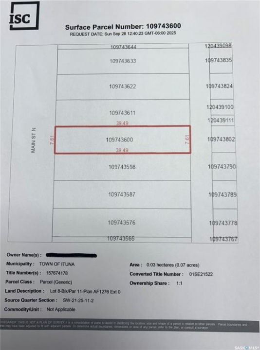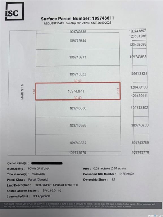 Fantastic opportunity to build your business in Ituna. High profile location on main street. 5 lots consisting of 16,250 sqft with great exposure and access. Lots 5-9 are being sold as one package deal.