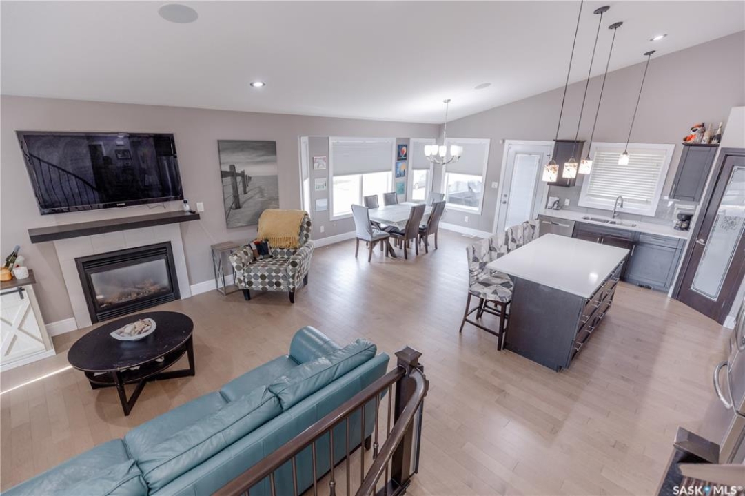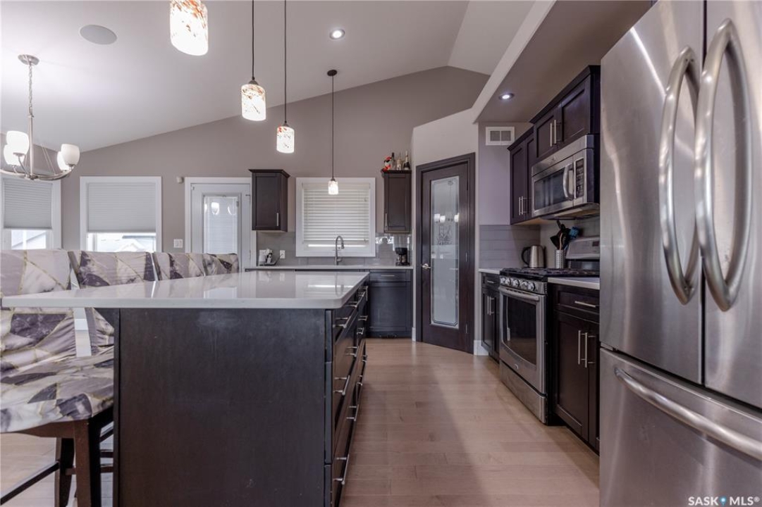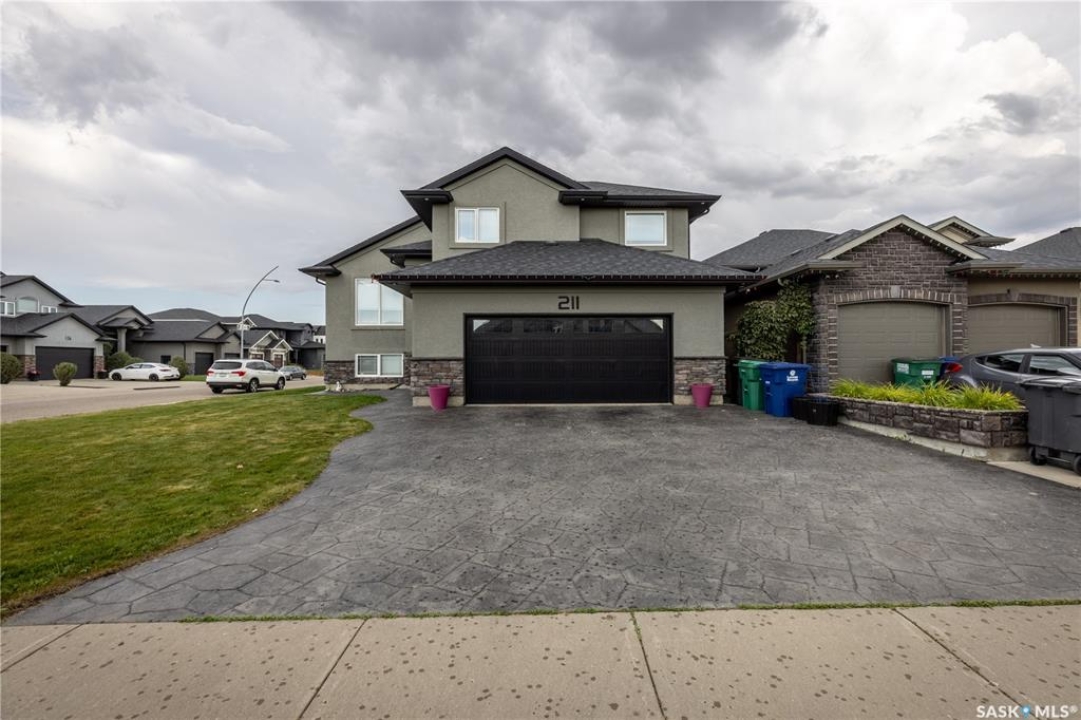 Welcome to 211 Sauer Crescent in beautiful evergreen! This 1,459 sqft modified bi-level is the kind of home that balances family function with a little bit of flair. Set on a large corner lot, you'll enjoy extra outdoor space for kids, pets, or your dream garden. The fully fenced yard, deck, and heated double attached garage make everyday life just a little easier (and warmer in the winter). Inside, the open-concept main floor invites connection. The spacious kitchen boasts quartz countertops, plenty of storage, and a layout that flows right into the living and dining areas. A gas fireplace adds the perfect touch of cozy for movie nights or lazy Sundays. With 4 bedrooms and 3 bathrooms, there's room for everyone to spread out. The primary suite features a 5-piece ensuite and a walk-in closet—big enough to keep you organized, even if you're not a minimalist. Head downstairs and you'll find the ultimate hangout zone: a full wet bar complete with floating shelves, built-in fridge, dishwasher, and built-in speakers. Whether you're hosting friends, family, or just yourself and the game, this lower level is designed for good times. Evergreen is one of Saskatoon's most family-friendly neighbourhoods, with schools, parks, trails, and all the amenities you need just a short drive away. If you've been hunting for a home that's practical, stylish, and ready for your next chapter, this one might just be the perfect fit. Come take a look—you'll see why Evergreen feels like home!