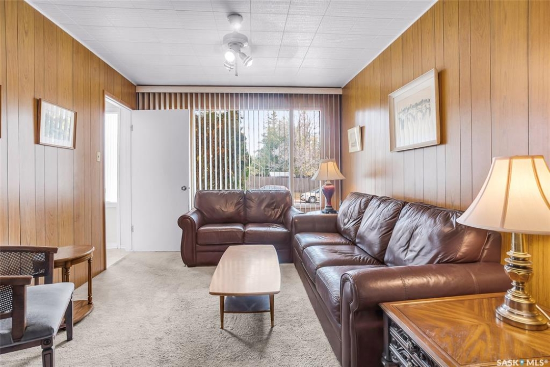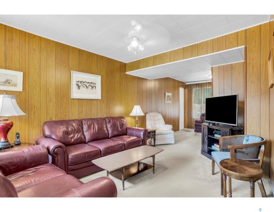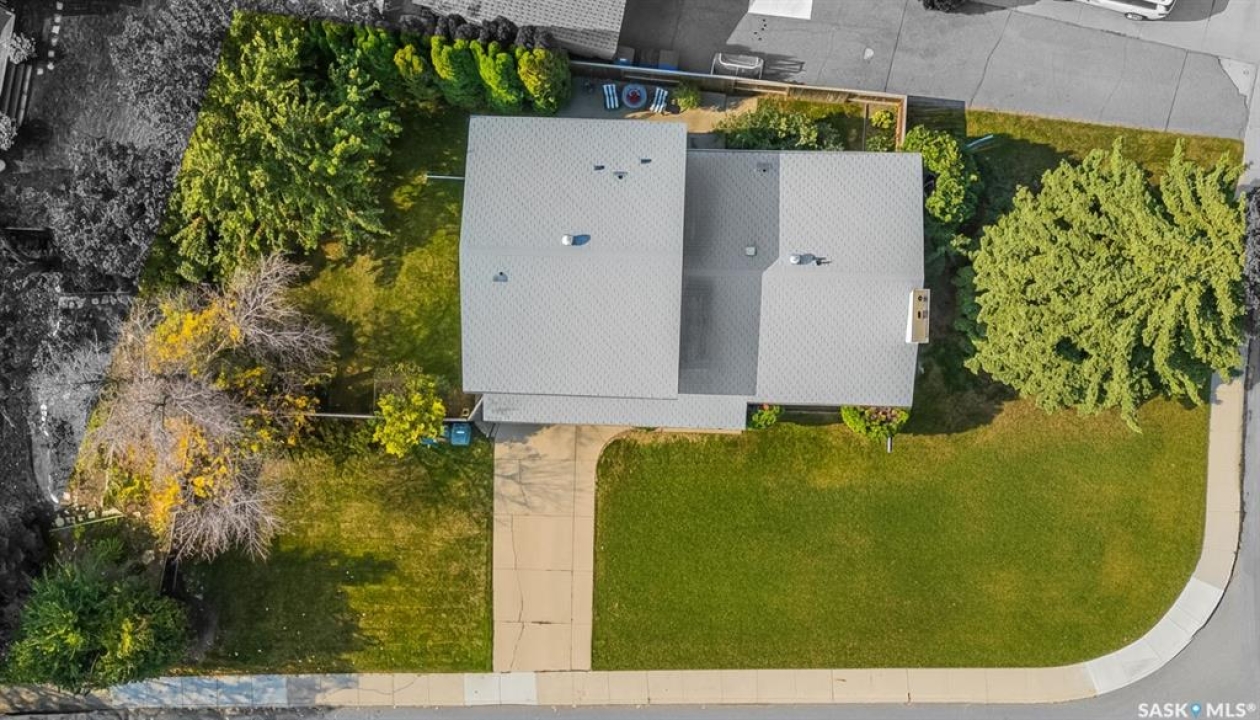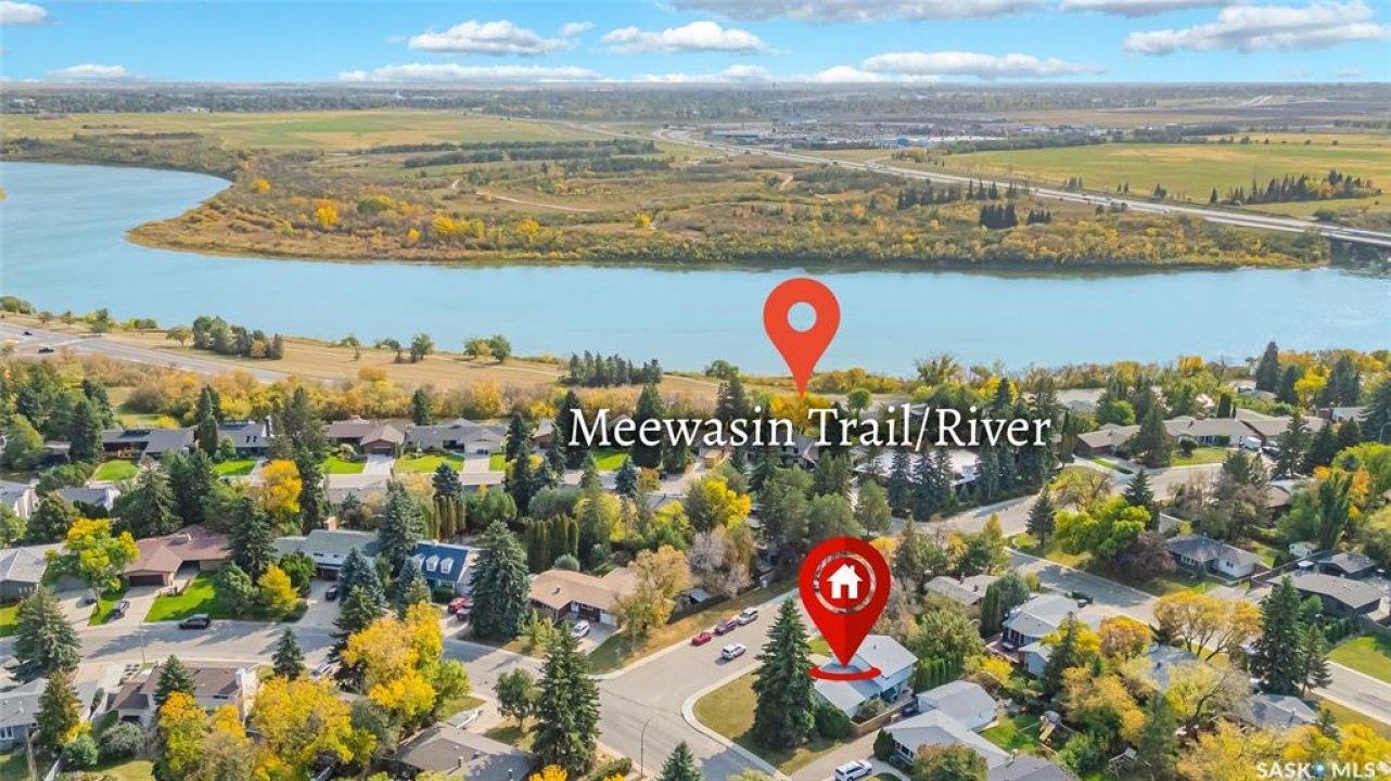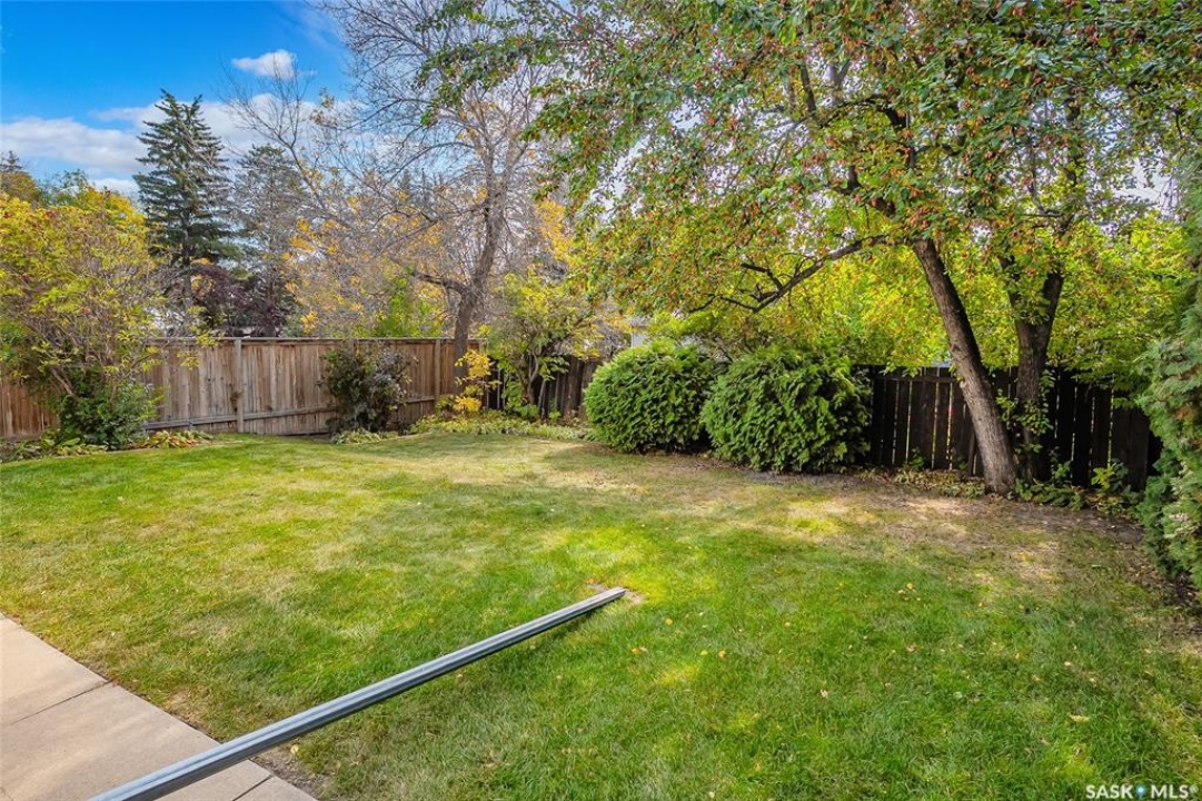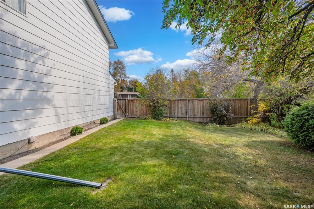 Discover your next home in River Heights, one of Saskatoon's most desirable neighbourhoods. Perfectly set along the Meewasin Valley and South Saskatchewan River. This unique custom-built 4-level split offers over 1,800 sq. ft. of living space with 3 bedrooms and 4 bathrooms. Step into a bright, spacious living room featuring picture windows and a wood-burning, raised-hearth fireplace. Adjacent is the dining room—perfect for large family gatherings—which flows into a kitchen with hardwood floors, eating area, and built-in china cabinet. Just a few steps down, you'll find a cozy den filled with natural light front to back, ideal for reading, watching sports, a home office, or study. This ground level also includes a laundry room with backyard access, 2-pc bathroom, and direct entry to the attached garage. Upstairs, the second level features 3 bright, spacious bedrooms—two with hardwood floors. The primary bedroom includes a convenient 2-pc ensuite. The basement offers another 500 sq. ft. of living space, including a fully finished family room with fresh paint, new carpet, and a feature brick wall with electric fireplace and built-in bookshelves. A wet bar with mini-fridge makes this space perfect for entertaining.Outside, enjoy the newly painted exterior 2025, a private fenced backyard with patio and mature trees on a prime corner lot. The single attached garage provides convenience, with room to add a future double or even triple garage. Front-yard underground sprinklers ensure easy maintenance. Families love River Heights for its scenic river views and easy access to public and Catholic elementary schools, two nearby high schools—plus dog parks, bike paths, and endless walking trails just steps away. Possession: anytime On or after November 19th,2025. Offers presented: Monday, October 6 at 5:00 pm