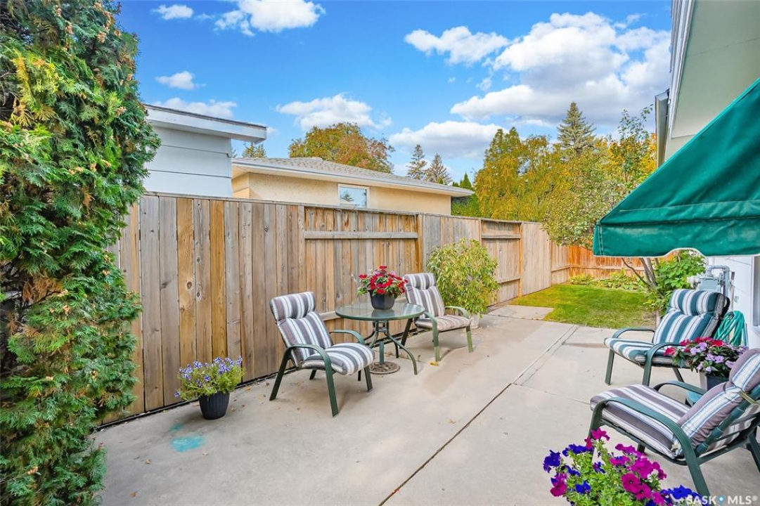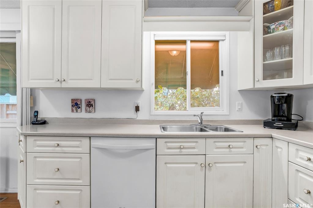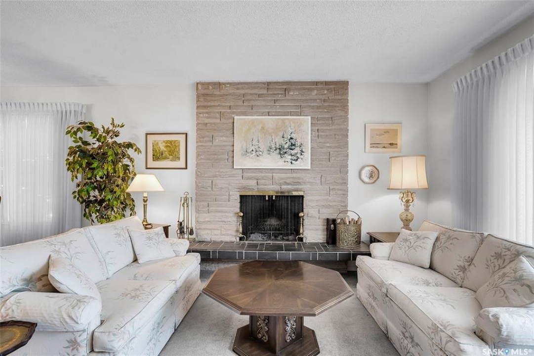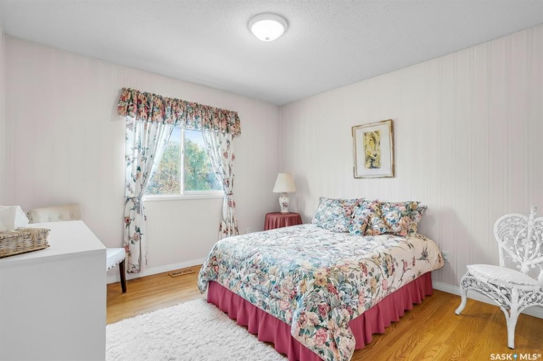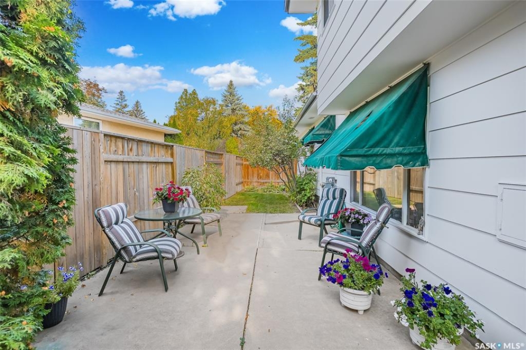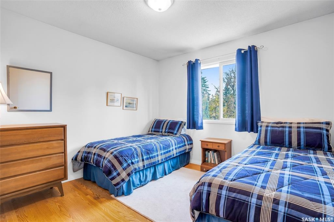 Discover your next home in River Heights, one of Saskatoon's most desirable neighbourhoods. Perfectly set along the Meewasin Valley and South Saskatchewan River. This unique custom-built 4-level split offers over 1,800 sq. ft. of living space with 3 bedrooms and 4 bathrooms. Step into a bright, spacious living room featuring picture windows and a wood-burning, raised-hearth fireplace. Adjacent is the dining room—perfect for large family gatherings—which flows into a kitchen with hardwood floors, eating area, and built-in china cabinet. Just a few steps down, you'll find a cozy den filled with natural light front to back, ideal for reading, watching sports, a home office, or study. This ground level also includes a laundry room with backyard access, 2-pc bathroom, and direct entry to the attached garage. Upstairs, the second level features 3 bright, spacious bedrooms—two with hardwood floors. The primary bedroom includes a convenient 2-pc ensuite. The basement offers another 500 sq. ft. of living space, including a fully finished family room with fresh paint, new carpet, and a feature brick wall with electric fireplace and built-in bookshelves. A wet bar with mini-fridge makes this space perfect for entertaining.Outside, enjoy the newly painted exterior 2025, a private fenced backyard with patio and mature trees on a prime corner lot. The single attached garage provides convenience, with room to add a future double or even triple garage. Front-yard underground sprinklers ensure easy maintenance. Families love River Heights for its scenic river views and easy access to public and Catholic elementary schools, two nearby high schools—plus dog parks, bike paths, and endless walking trails just steps away. Possession: anytime On or after November 19th,2025. Offers presented: Monday, October 6 at 5:00 pm