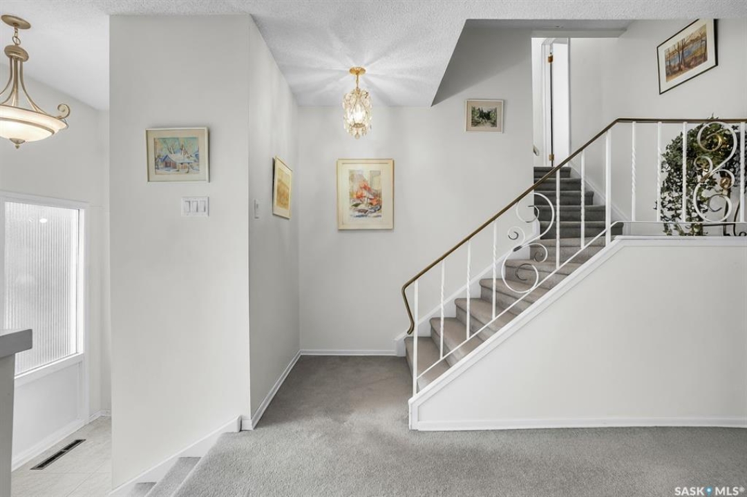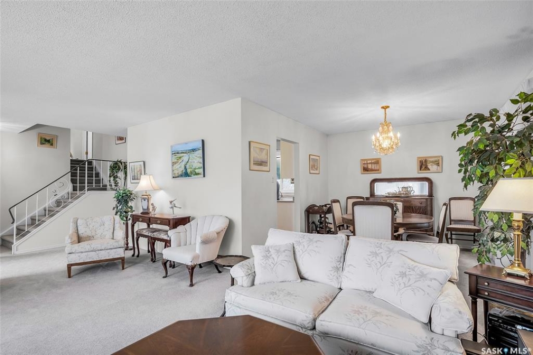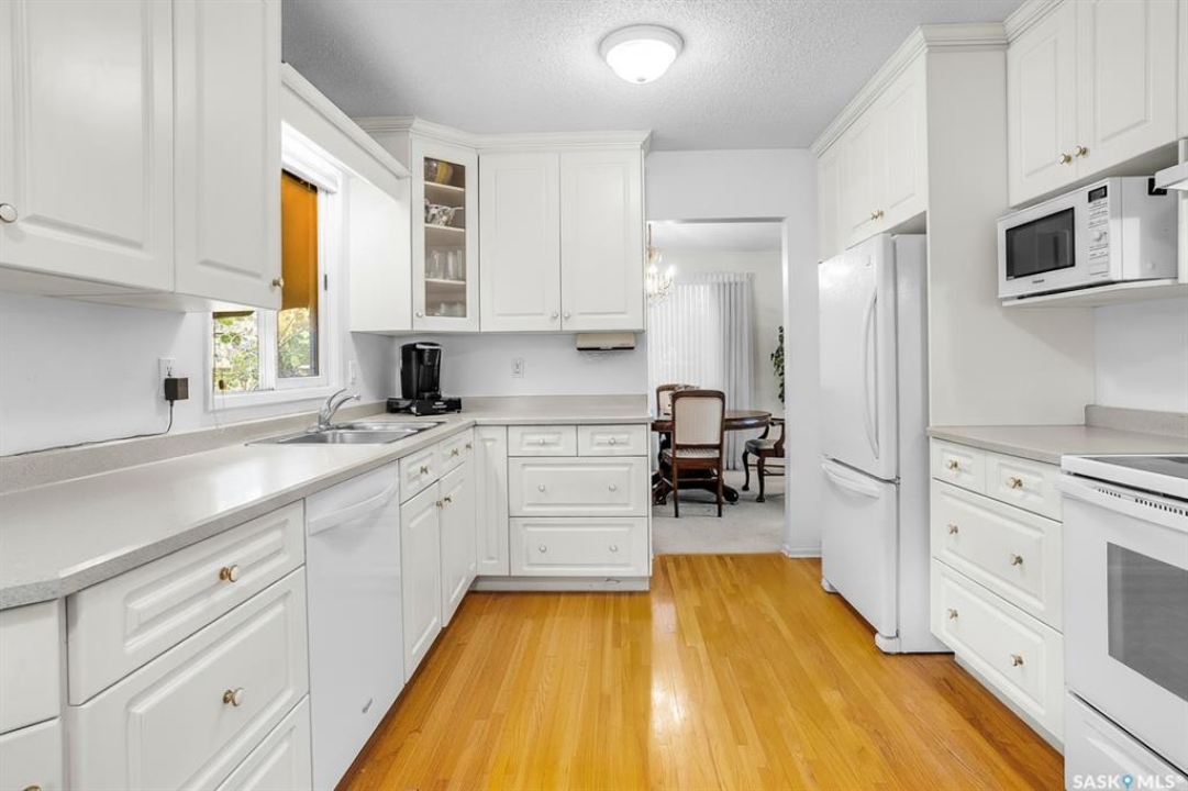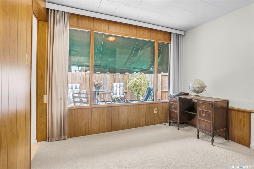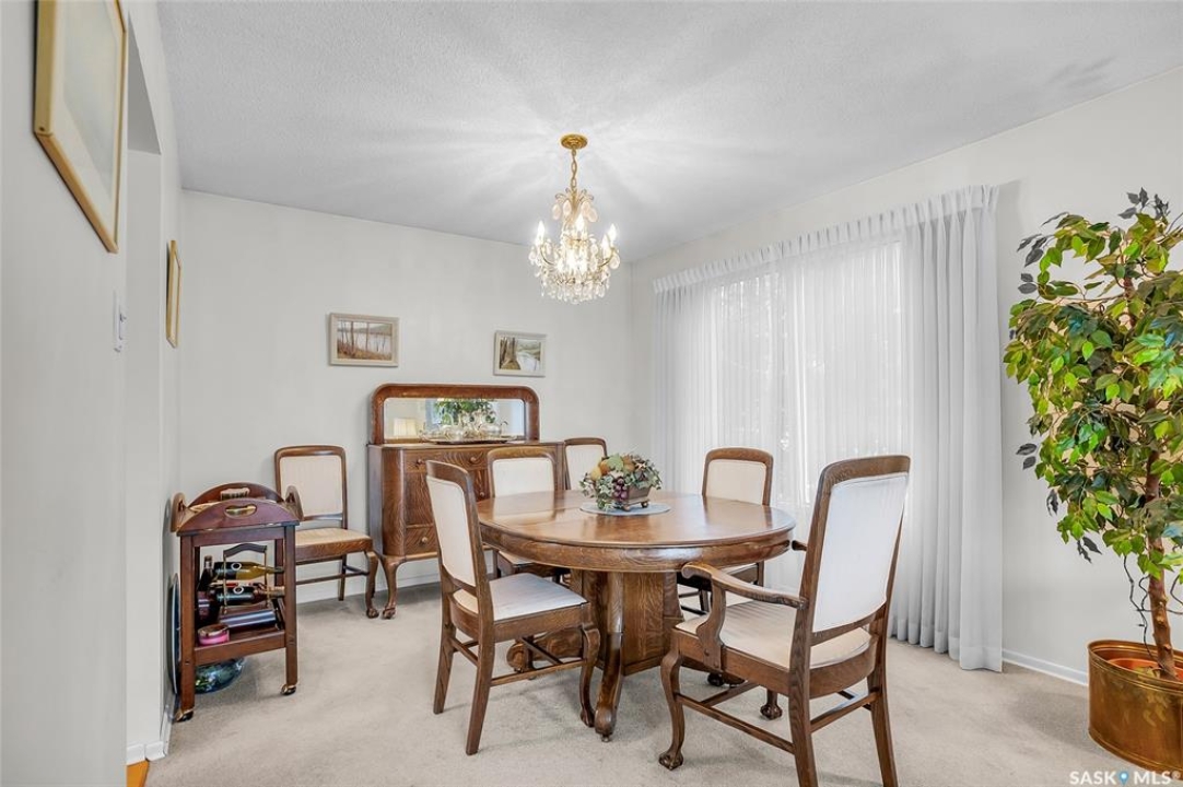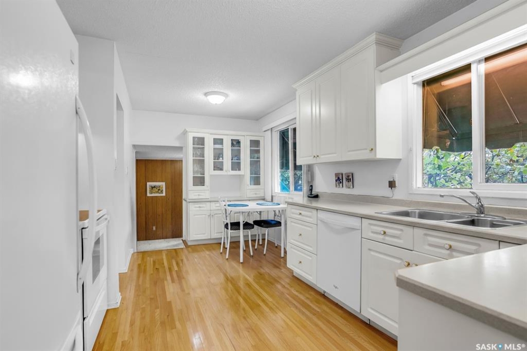 Discover your next home in River Heights, one of Saskatoon's most desirable neighbourhoods. Perfectly set along the Meewasin Valley and South Saskatchewan River. This unique custom-built 4-level split offers over 1,800 sq. ft. of living space with 3 bedrooms and 4 bathrooms. Step into a bright, spacious living room featuring picture windows and a wood-burning, raised-hearth fireplace. Adjacent is the dining room—perfect for large family gatherings—which flows into a kitchen with hardwood floors, eating area, and built-in china cabinet. Just a few steps down, you'll find a cozy den filled with natural light front to back, ideal for reading, watching sports, a home office, or study. This ground level also includes a laundry room with backyard access, 2-pc bathroom, and direct entry to the attached garage. Upstairs, the second level features 3 bright, spacious bedrooms—two with hardwood floors. The primary bedroom includes a convenient 2-pc ensuite. The basement offers another 500 sq. ft. of living space, including a fully finished family room with fresh paint, new carpet, and a feature brick wall with electric fireplace and built-in bookshelves. A wet bar with mini-fridge makes this space perfect for entertaining.Outside, enjoy the newly painted exterior 2025, a private fenced backyard with patio and mature trees on a prime corner lot. The single attached garage provides convenience, with room to add a future double or even triple garage. Front-yard underground sprinklers ensure easy maintenance. Families love River Heights for its scenic river views and easy access to public and Catholic elementary schools, two nearby high schools—plus dog parks, bike paths, and endless walking trails just steps away. Possession: anytime On or after November 19th,2025. Offers presented: Monday, October 6 at 5:00 pm
